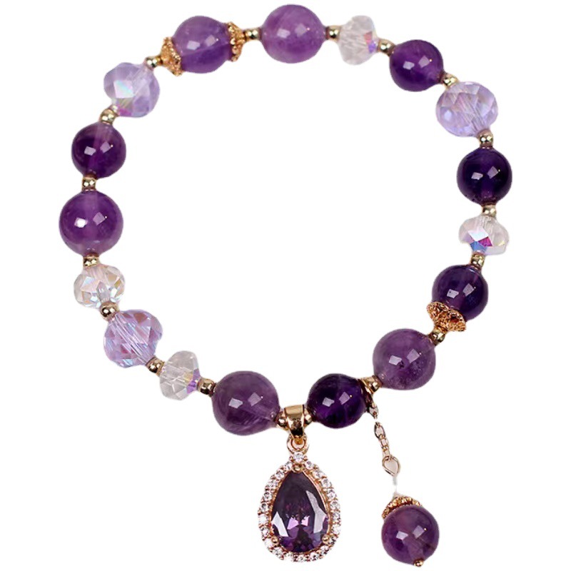 天然高贵紫水晶手链女士精致锆石爱心吊坠珠手串礼物手环手饰