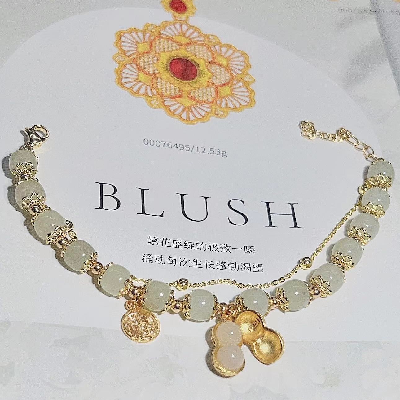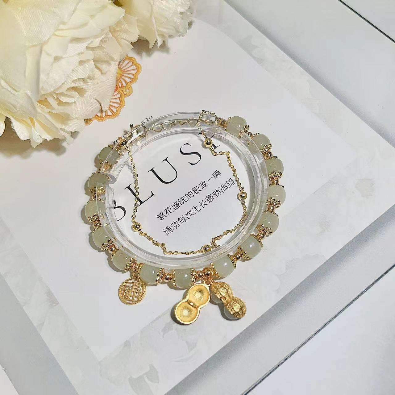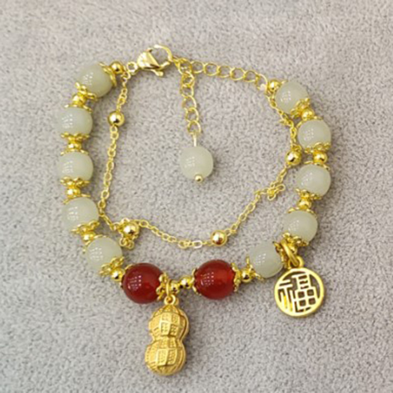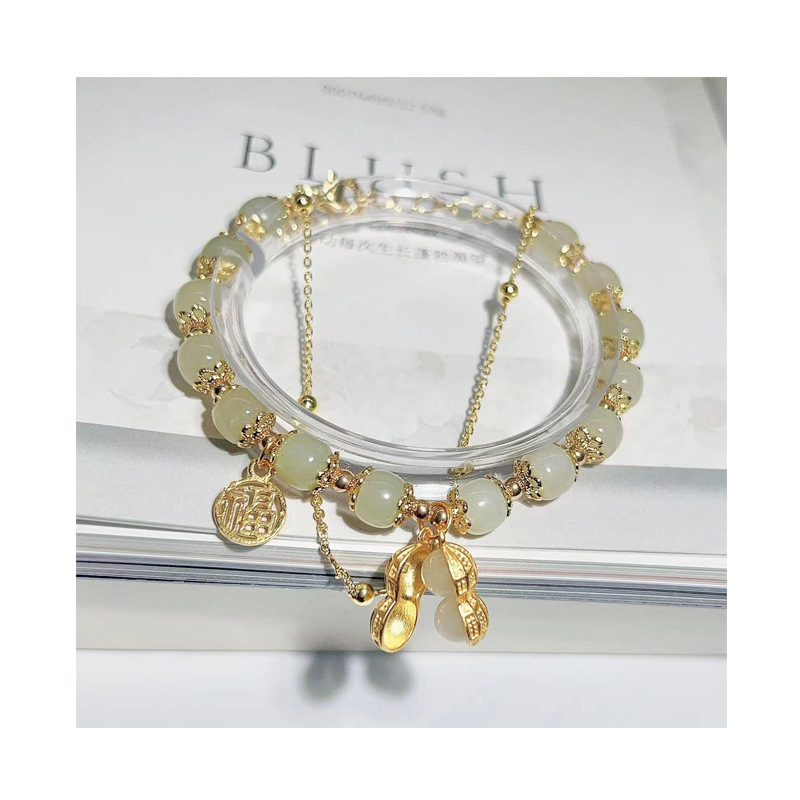 天然和田玉花生手链 好事花生福牌宫廷风手串小众设计送女生礼物
