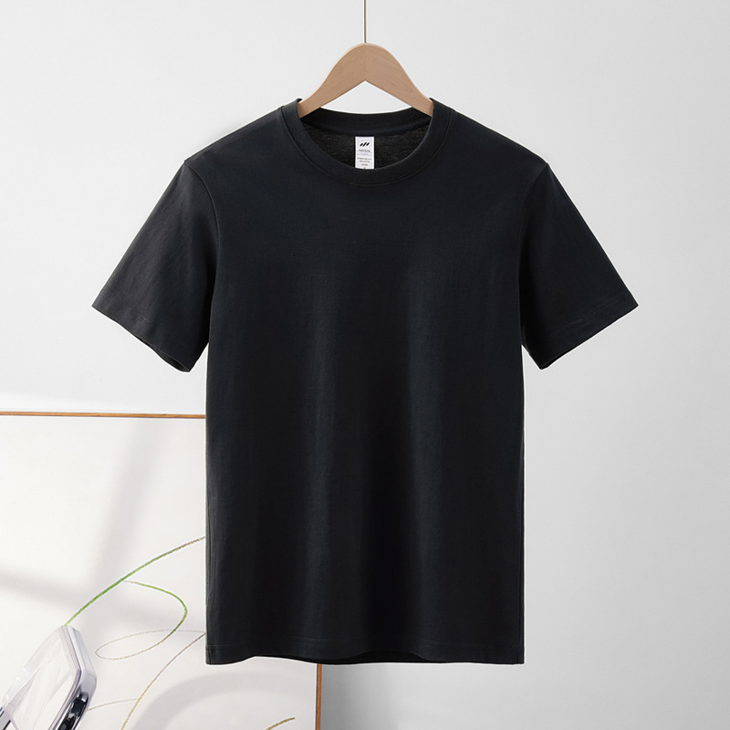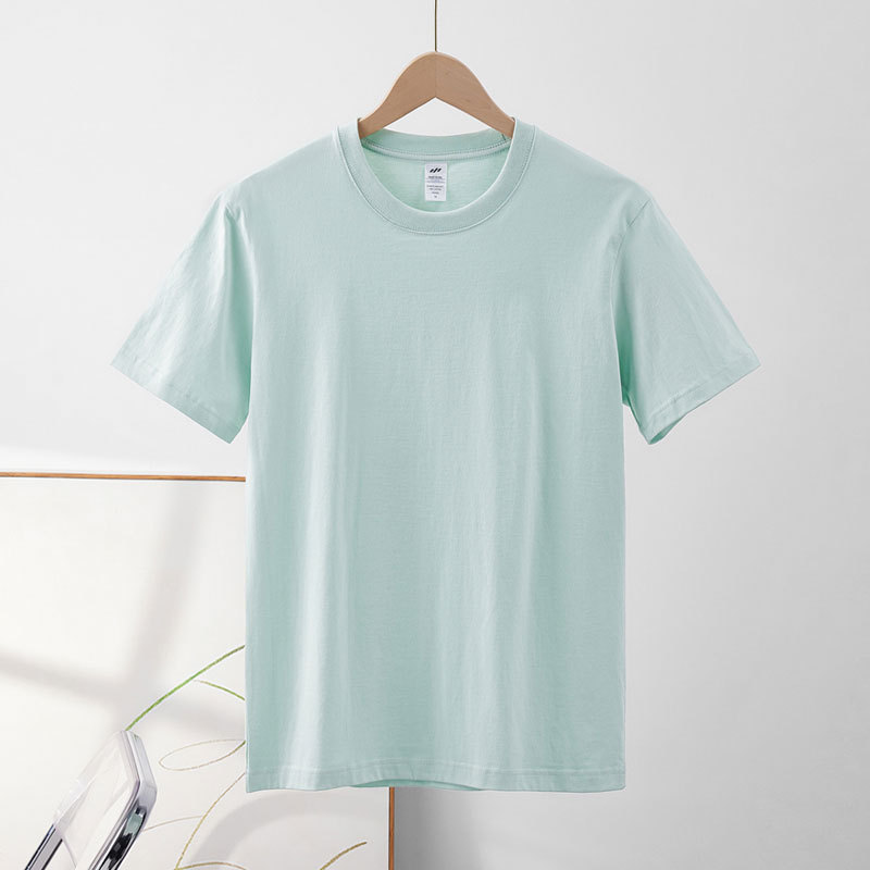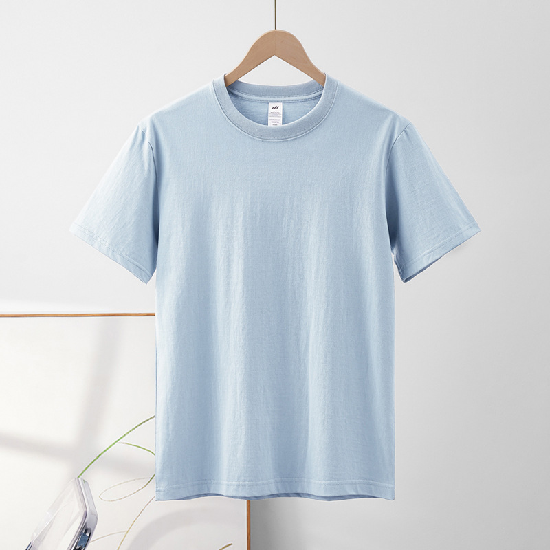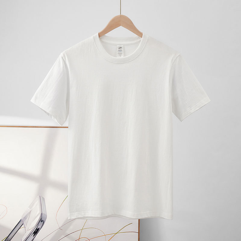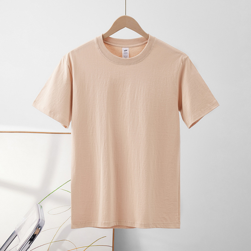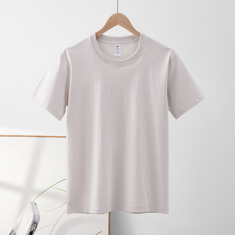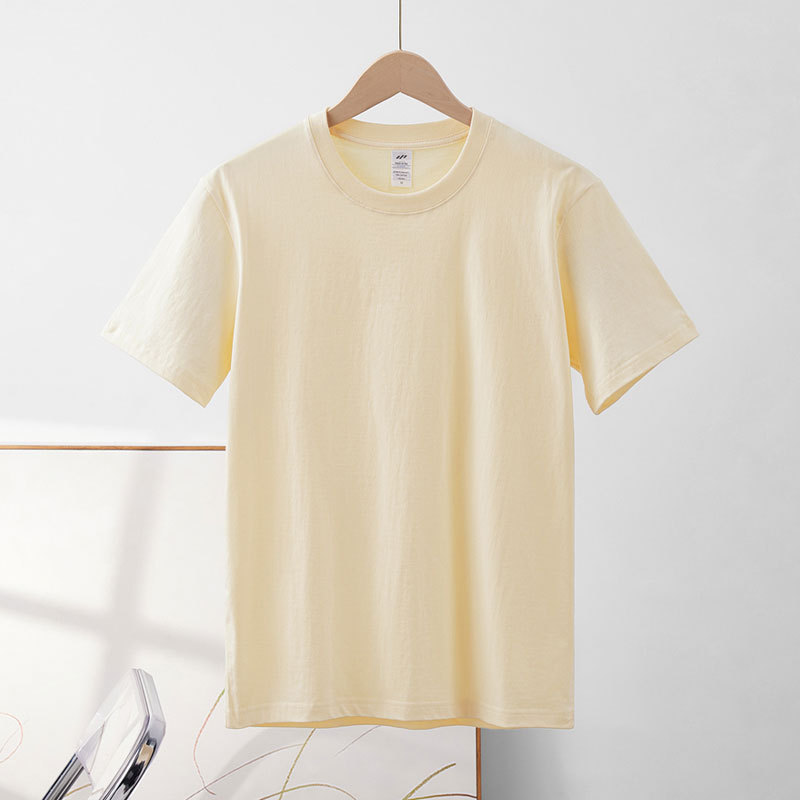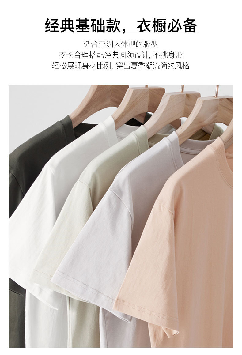 日系简约230g纯棉短袖T恤女正肩圆领纯色宽松上衣内搭打底衣服男