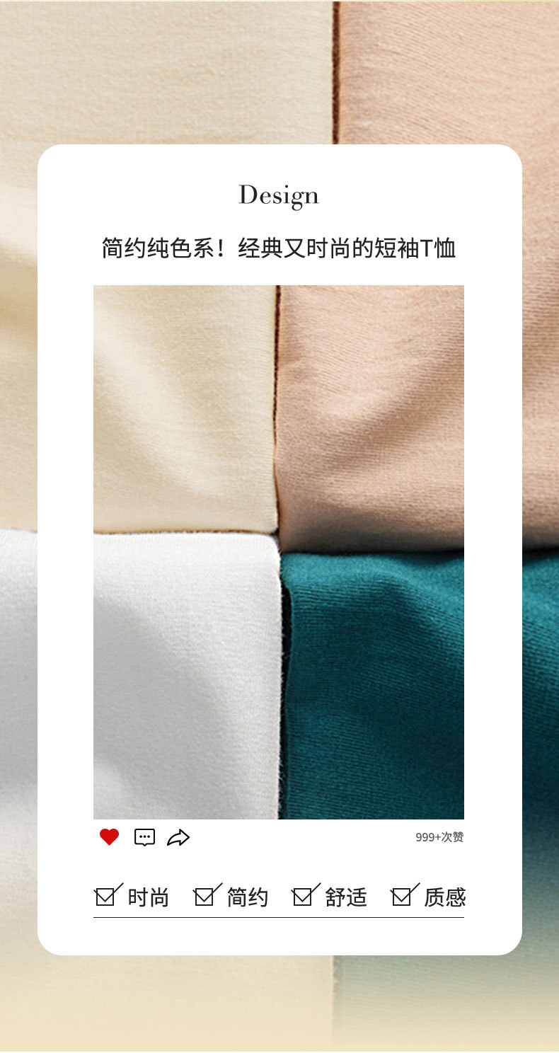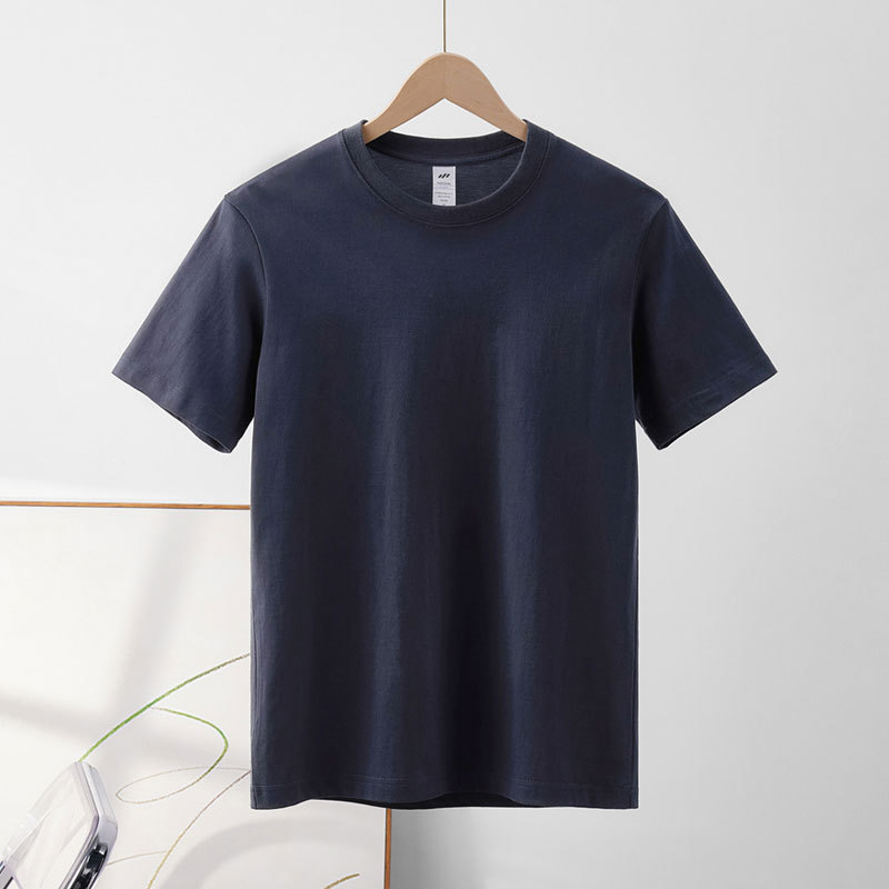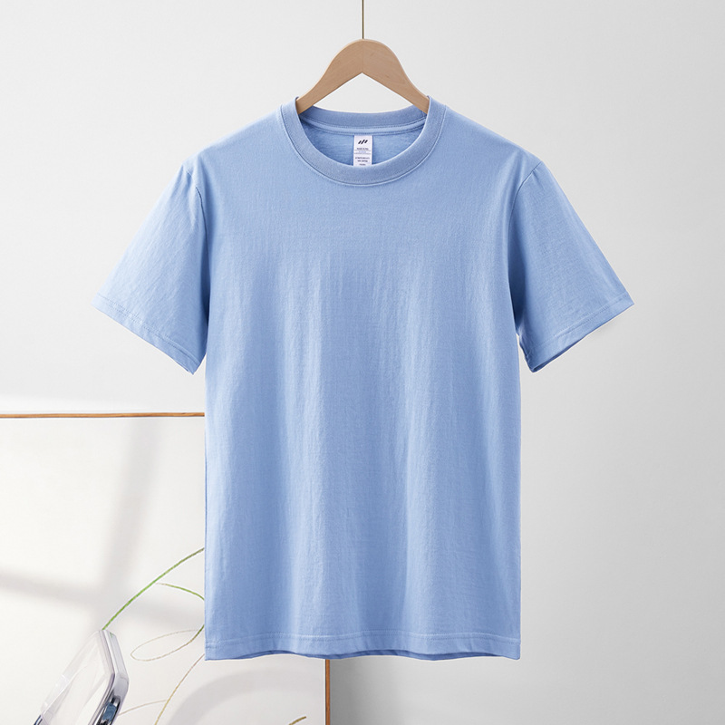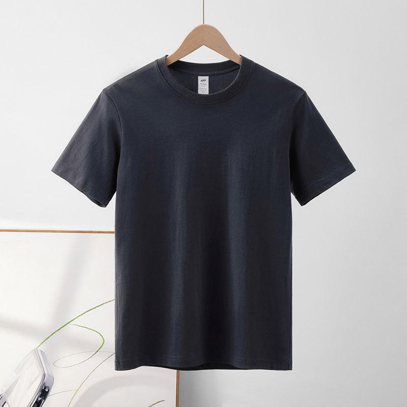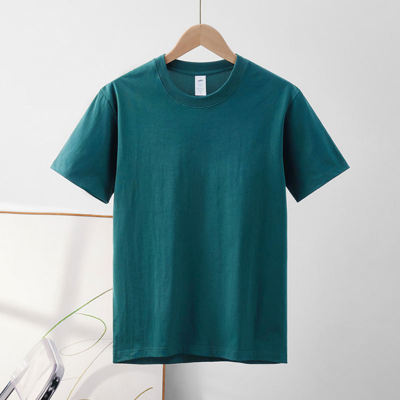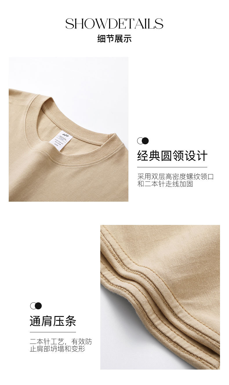 日系简约230g纯棉短袖T恤女正肩圆领纯色宽松上衣内搭打底衣服男