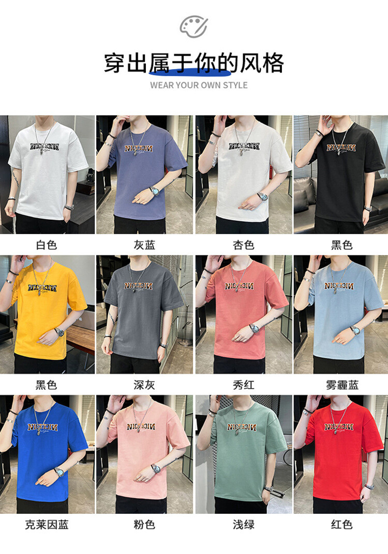 2023新款男士短袖t恤男潮牌半袖学生夏季男装潮流ins上衣服体恤
