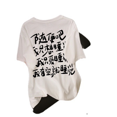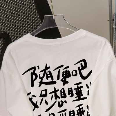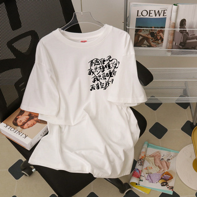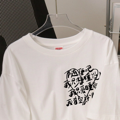 2023新款潮牌白色圆领学生短袖t恤女宽松百搭设计感休闲上衣ins潮