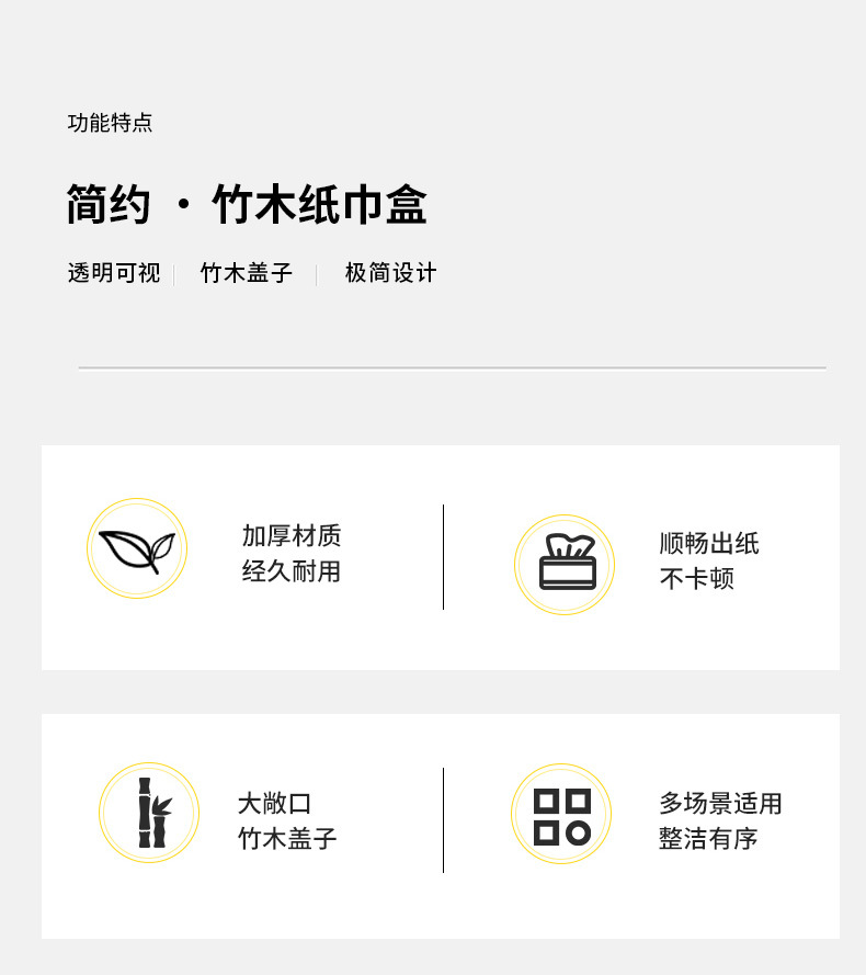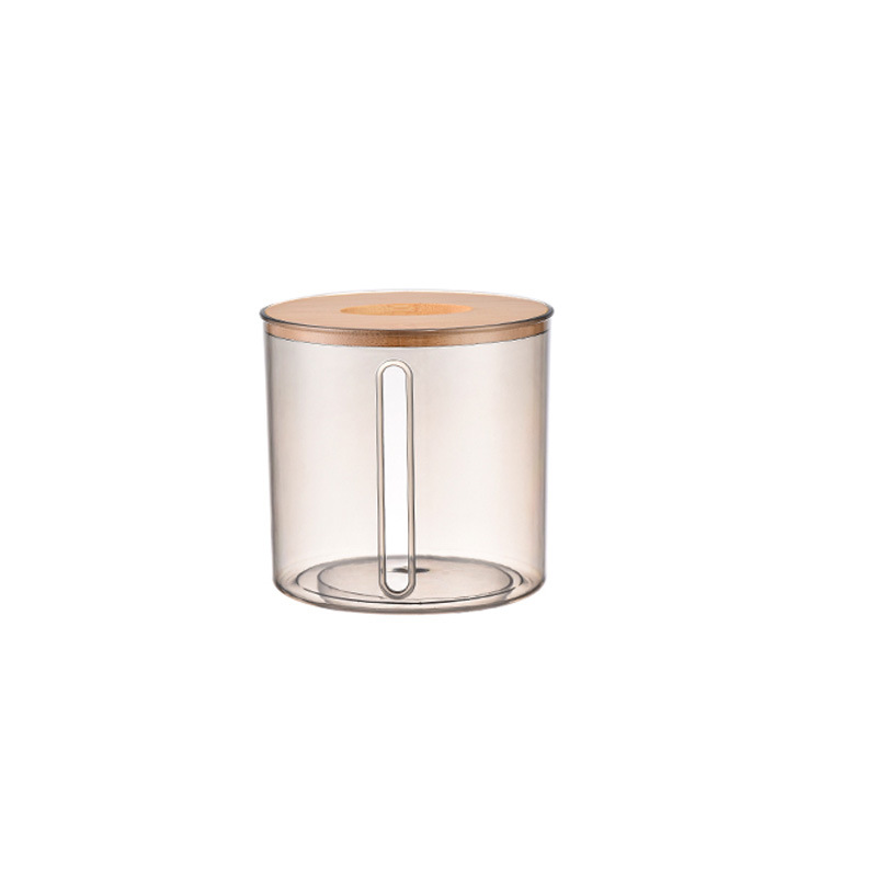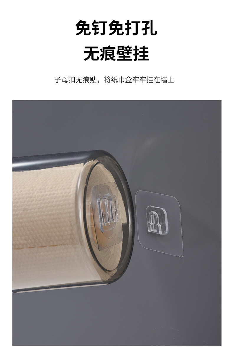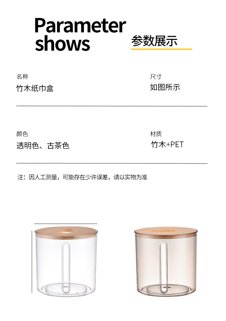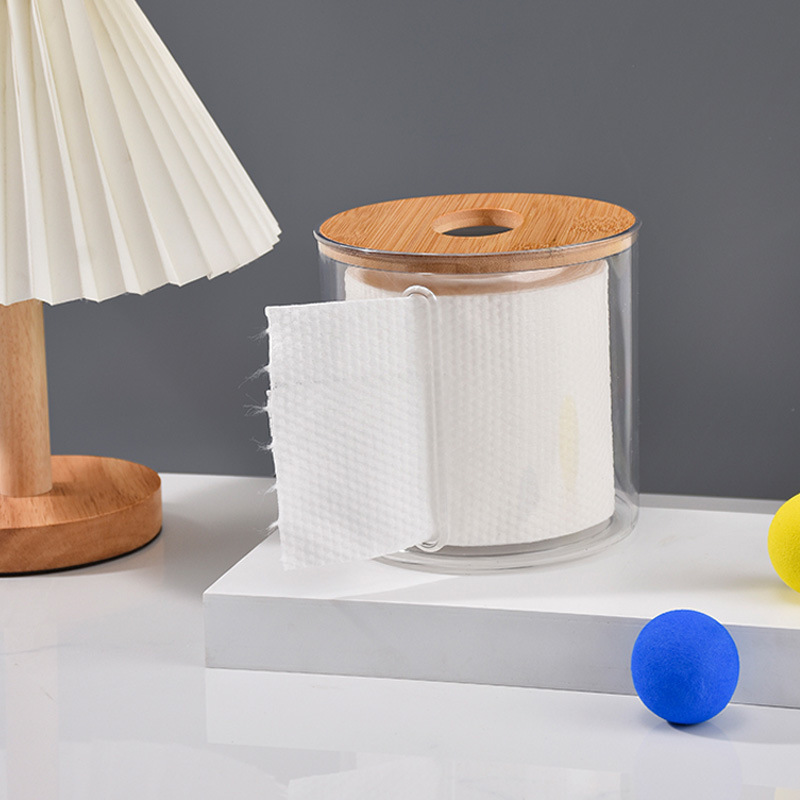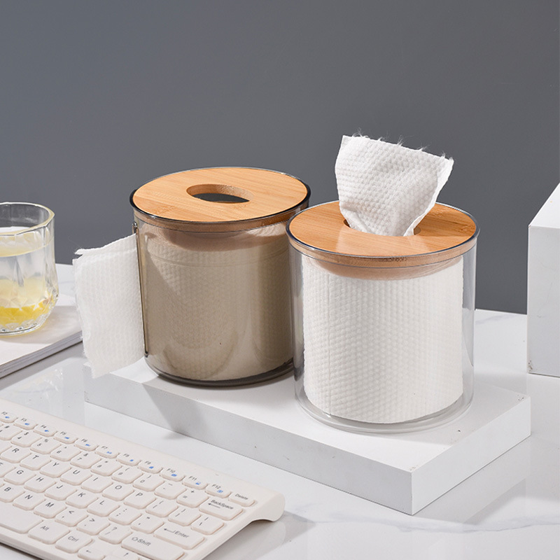 创意圆形塑料收纳纸巾盒家用抽纸盒竹木盖酒店壁挂式卫生间纸巾架