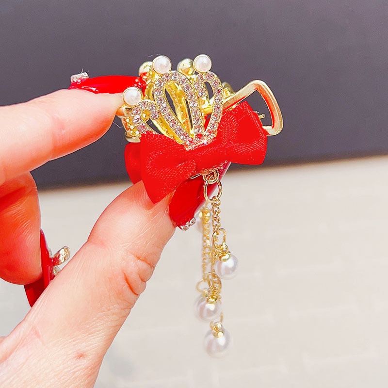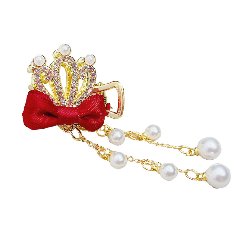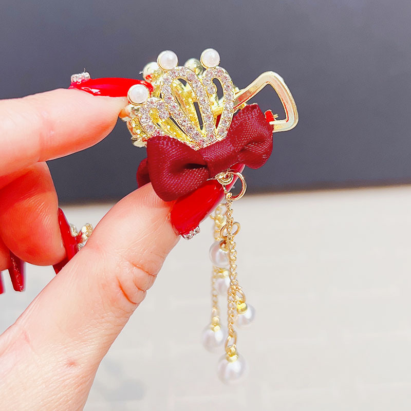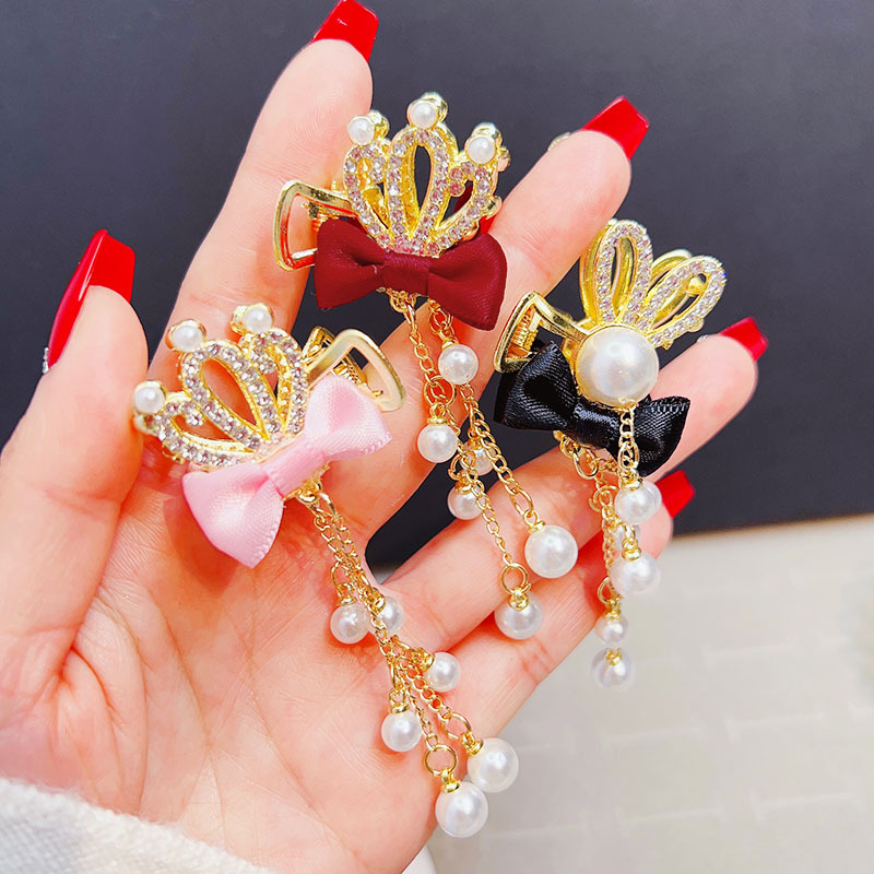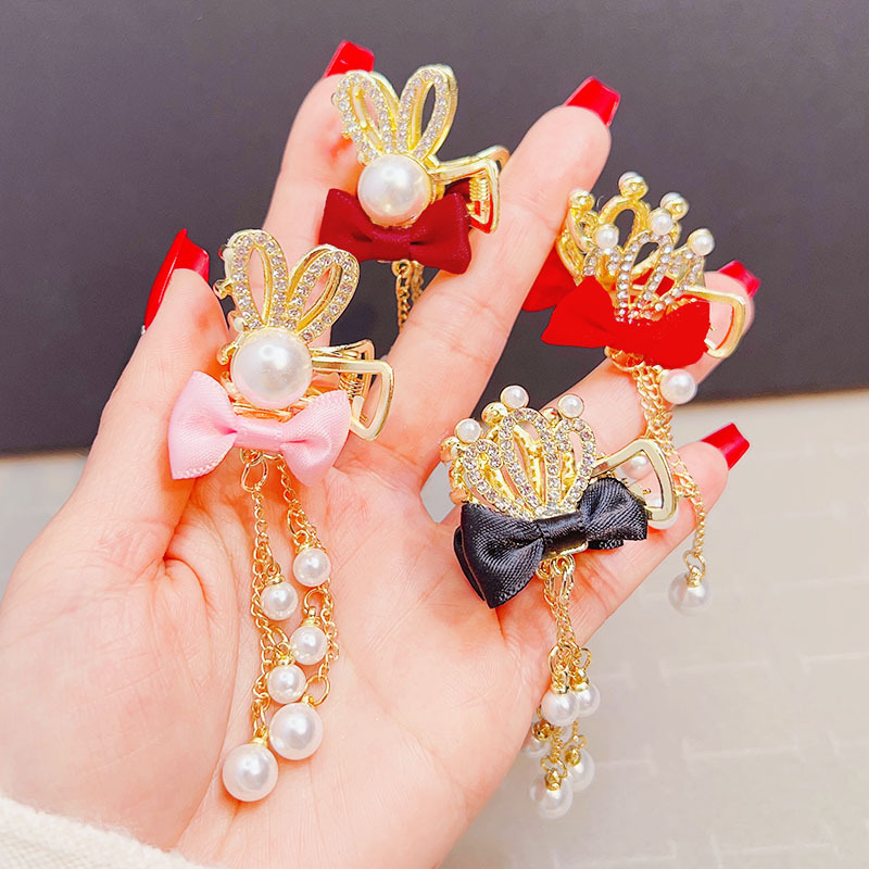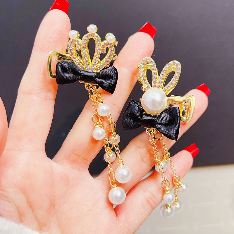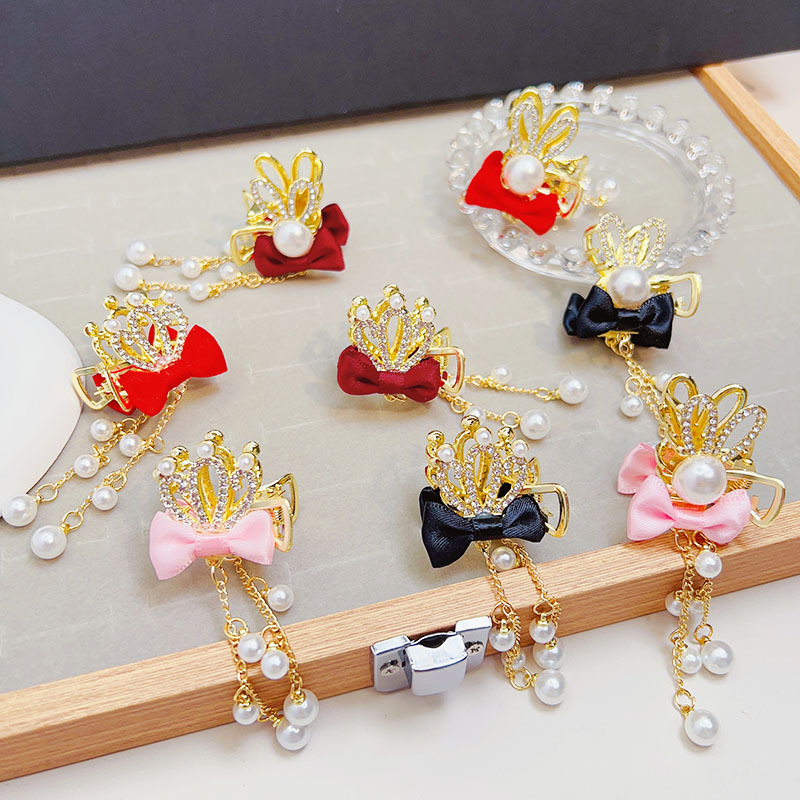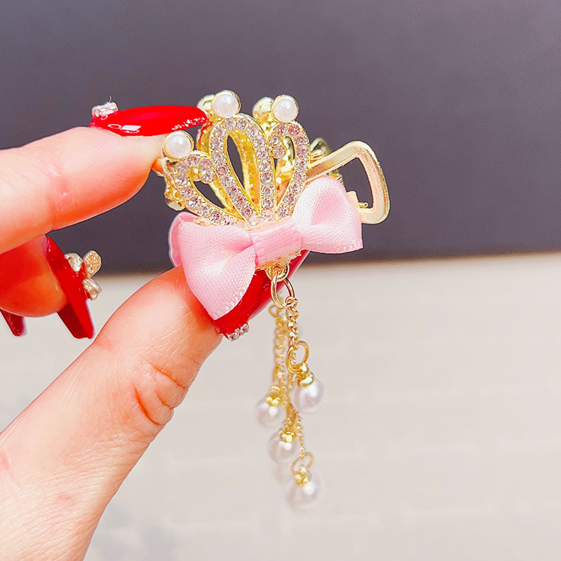 新款蝴蝶结发夹珍珠流苏小抓夹小女孩公主头饰女童发卡子