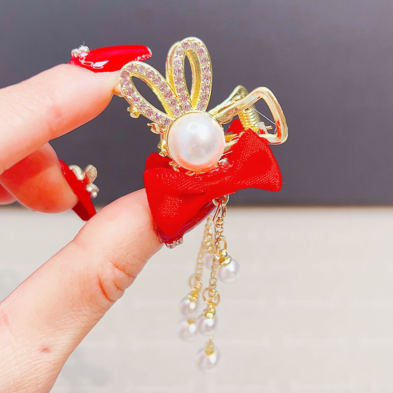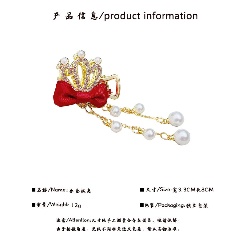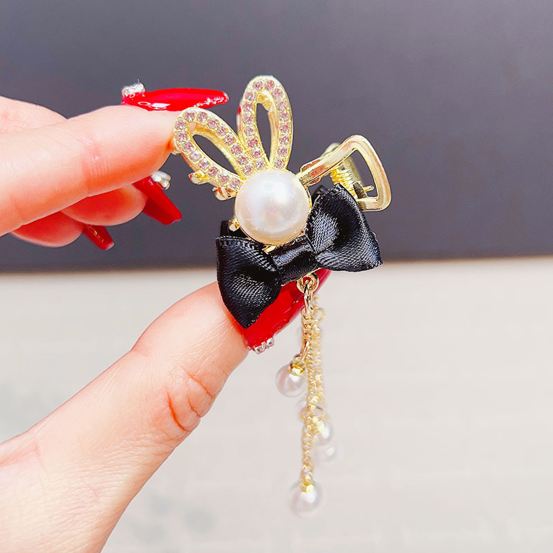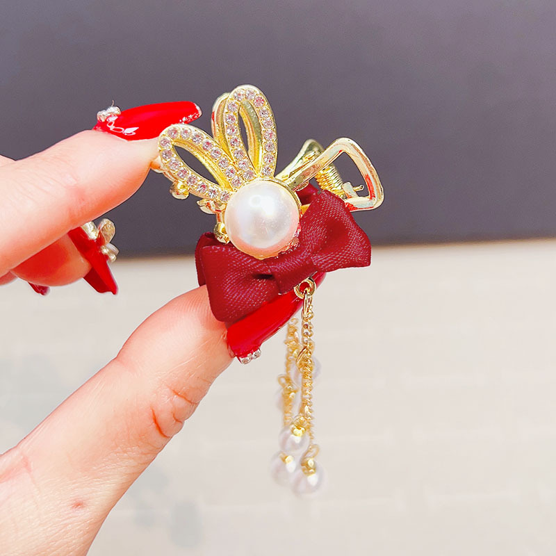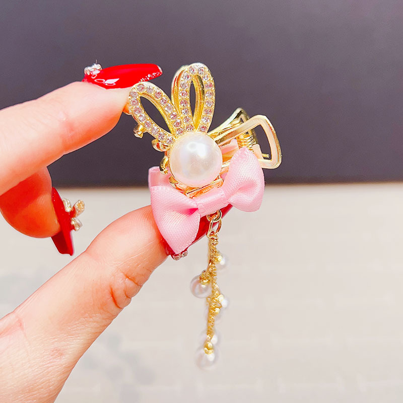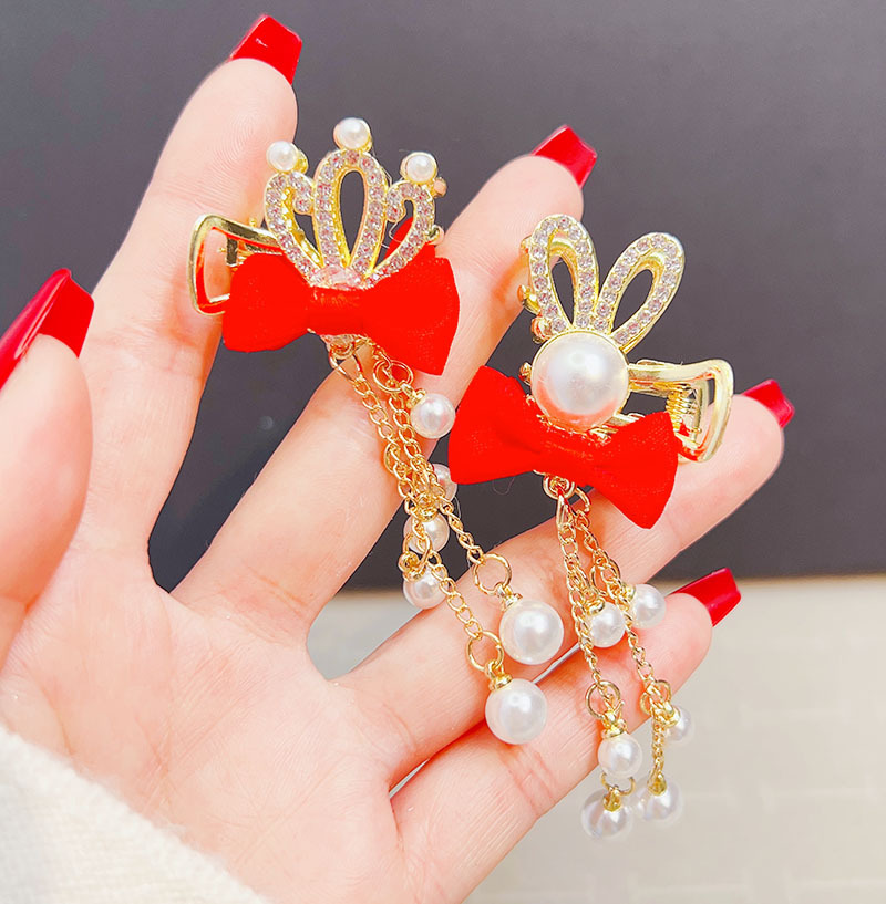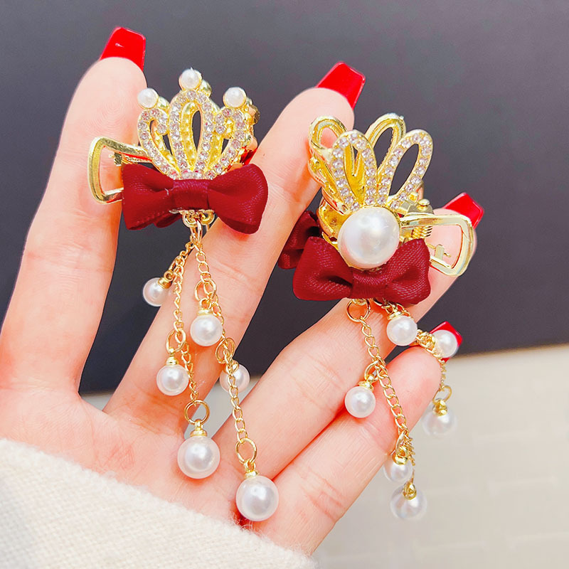 新款蝴蝶结发夹珍珠流苏小抓夹小女孩公主头饰女童发卡子
