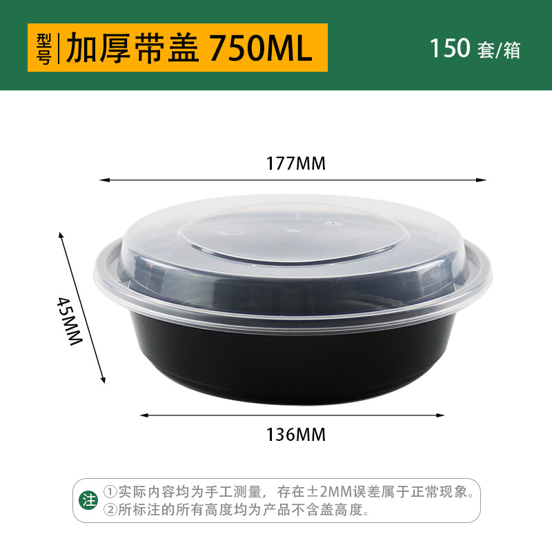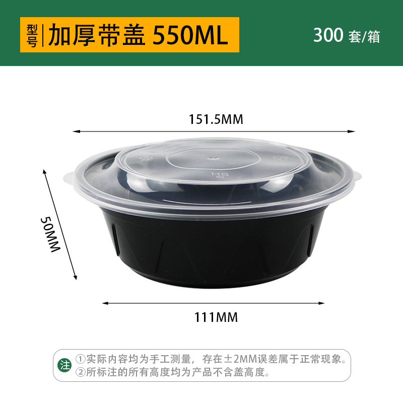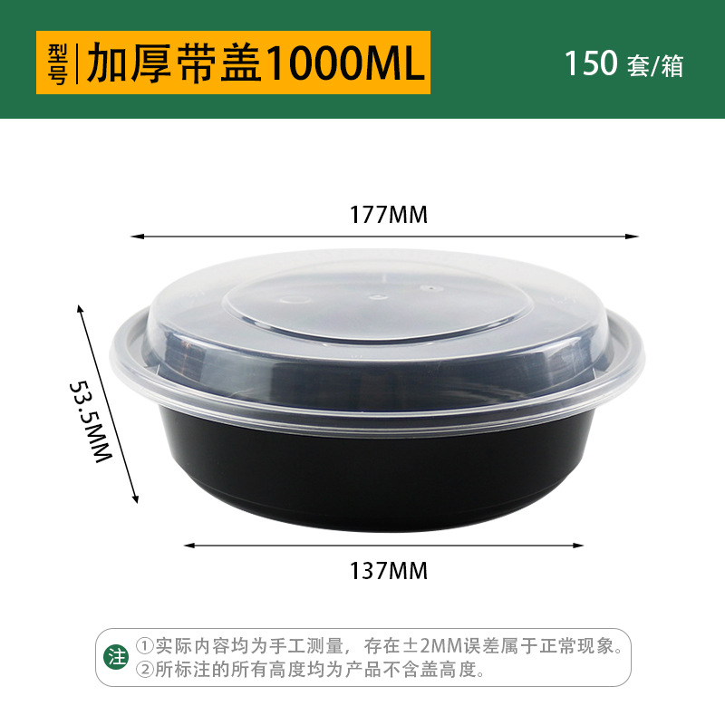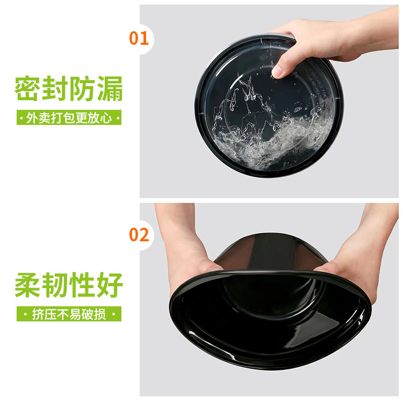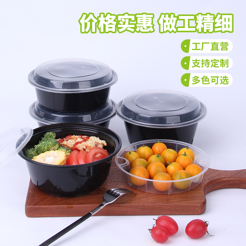 韩盛黑色圆形美式波浪纹一次性快餐盒外卖快餐饭盒圆碗圆盒打包盒