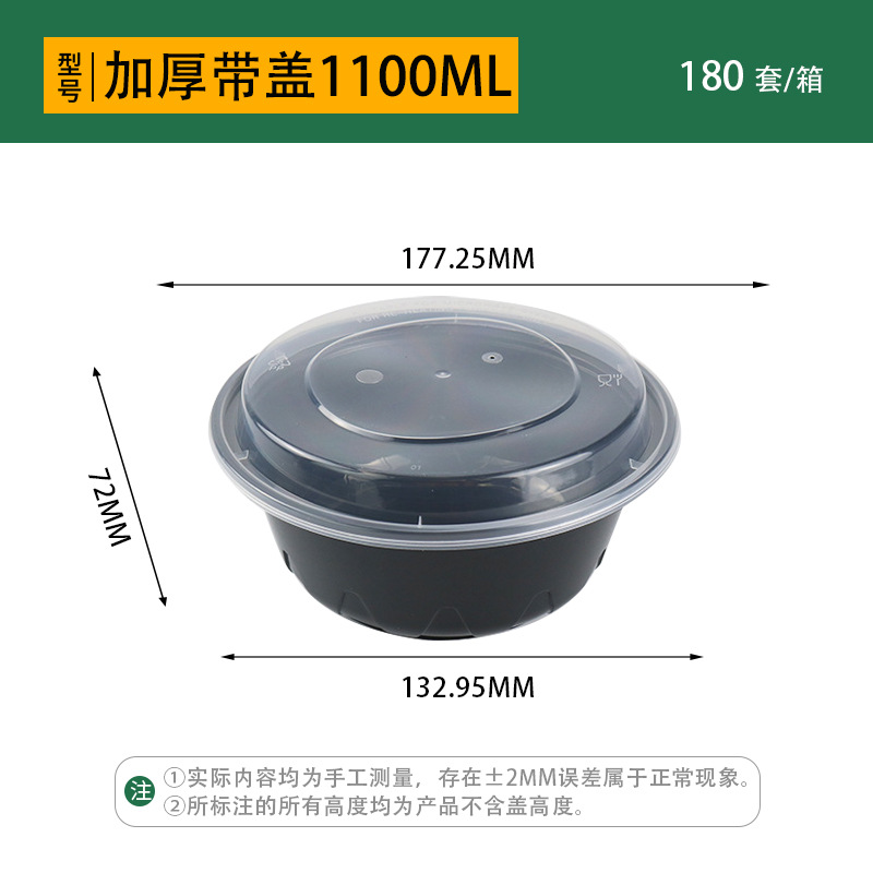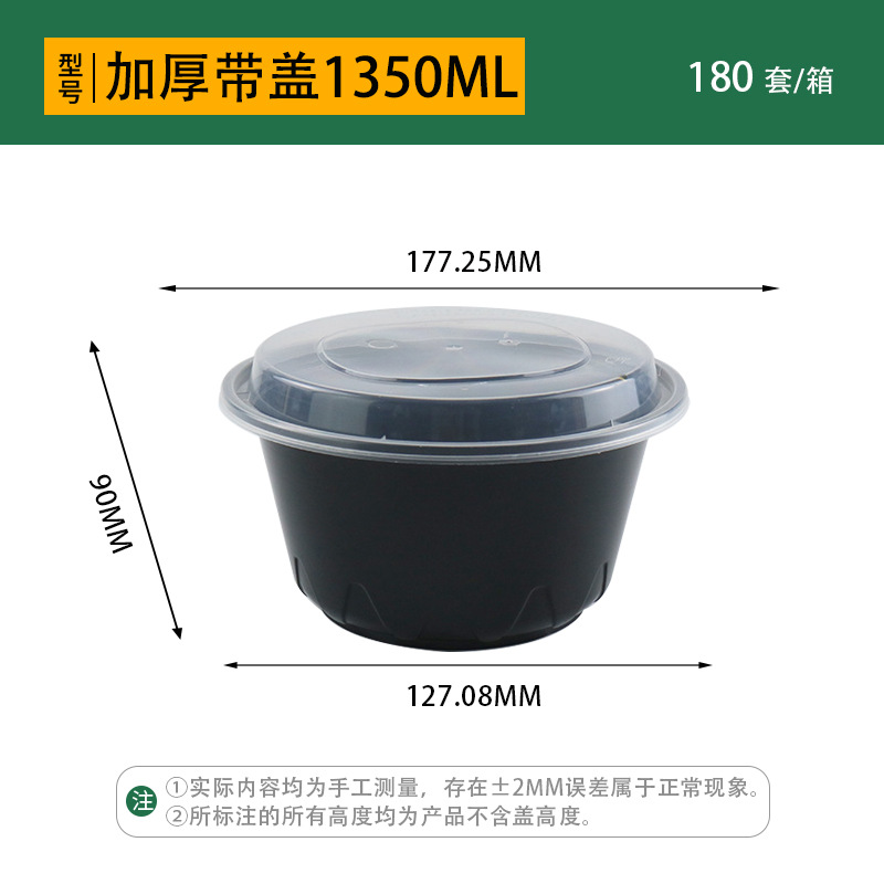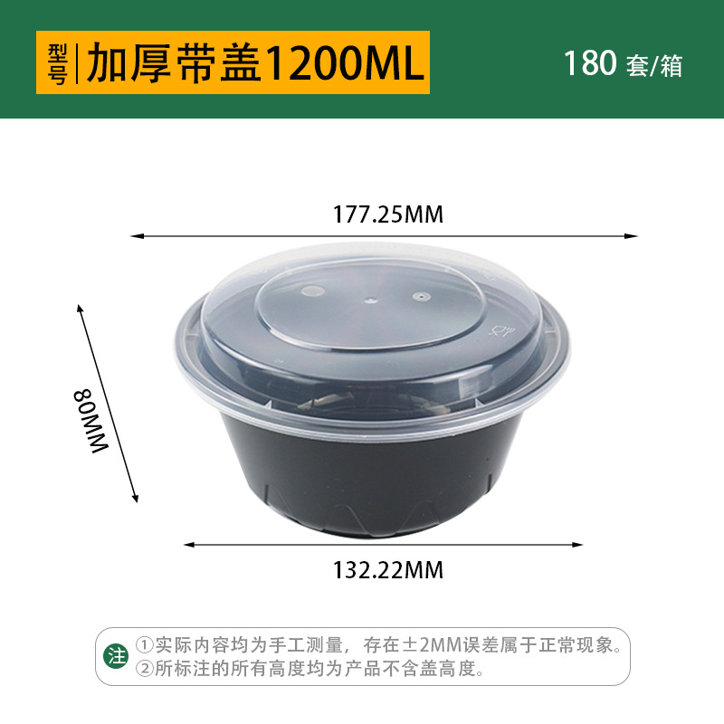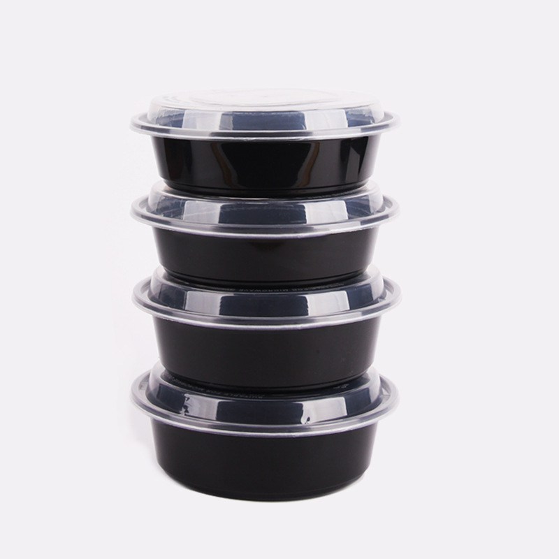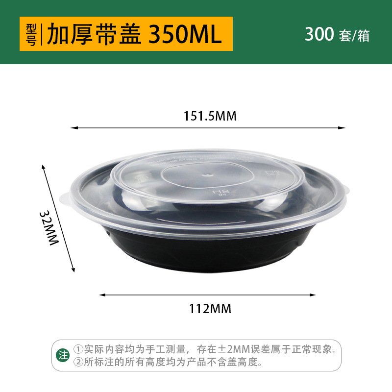 韩盛黑色圆形美式波浪纹一次性快餐盒外卖快餐饭盒圆碗圆盒打包盒