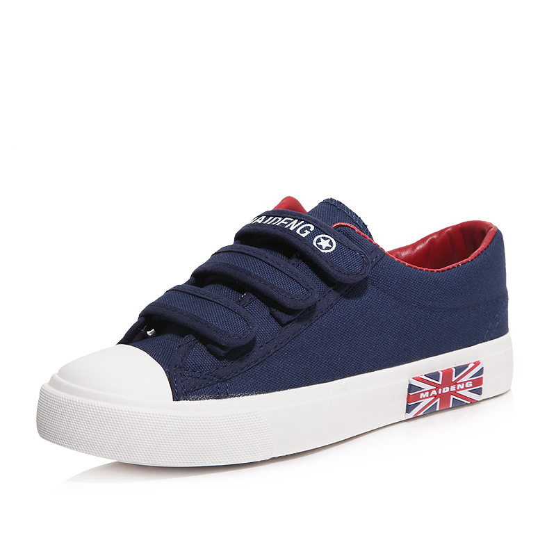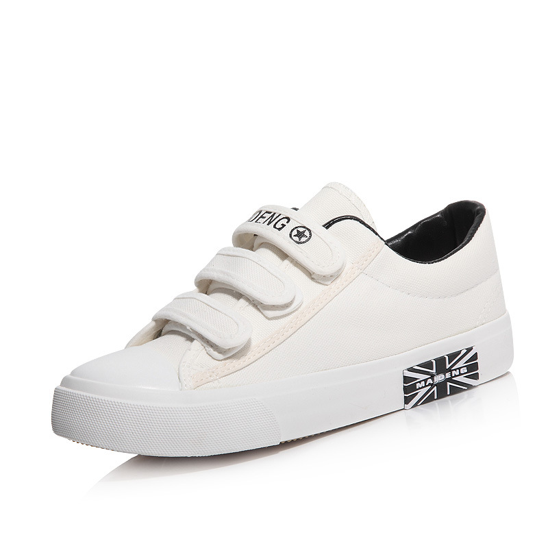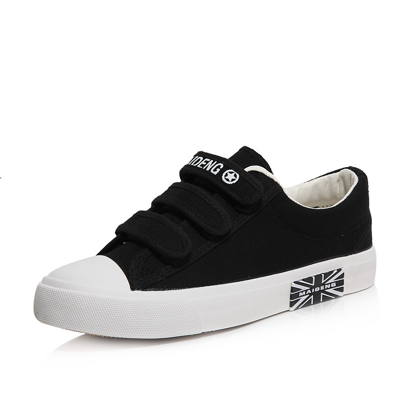 低帮魔术贴女帆布鞋平底纯色学生鞋情侣米字旗潮女鞋