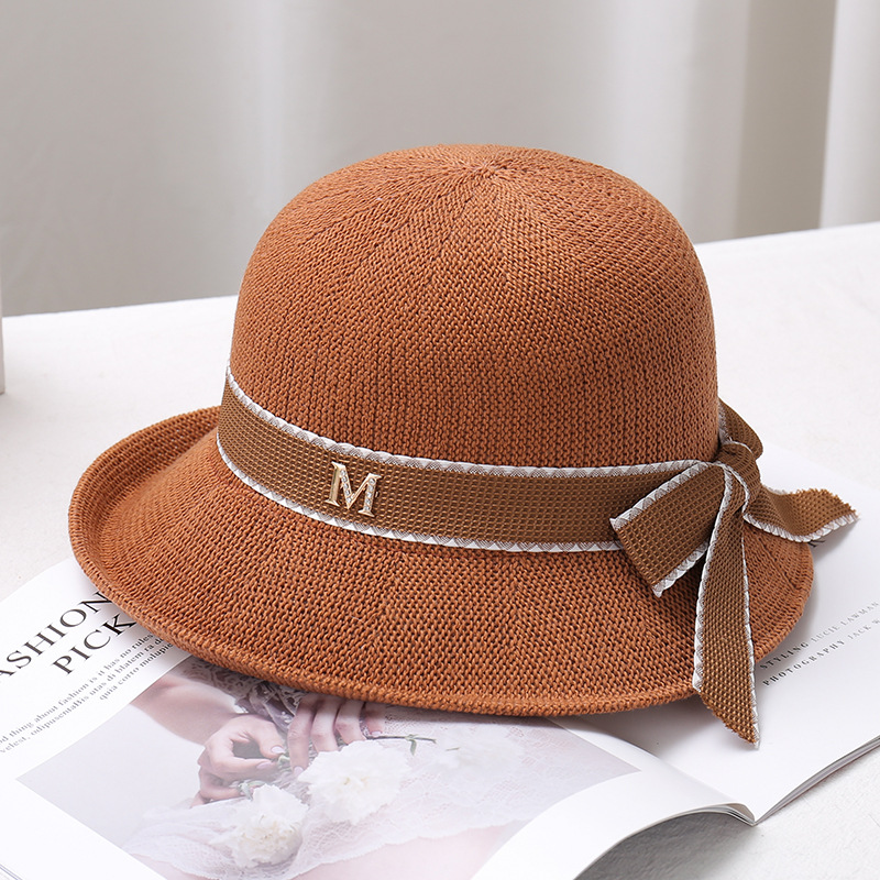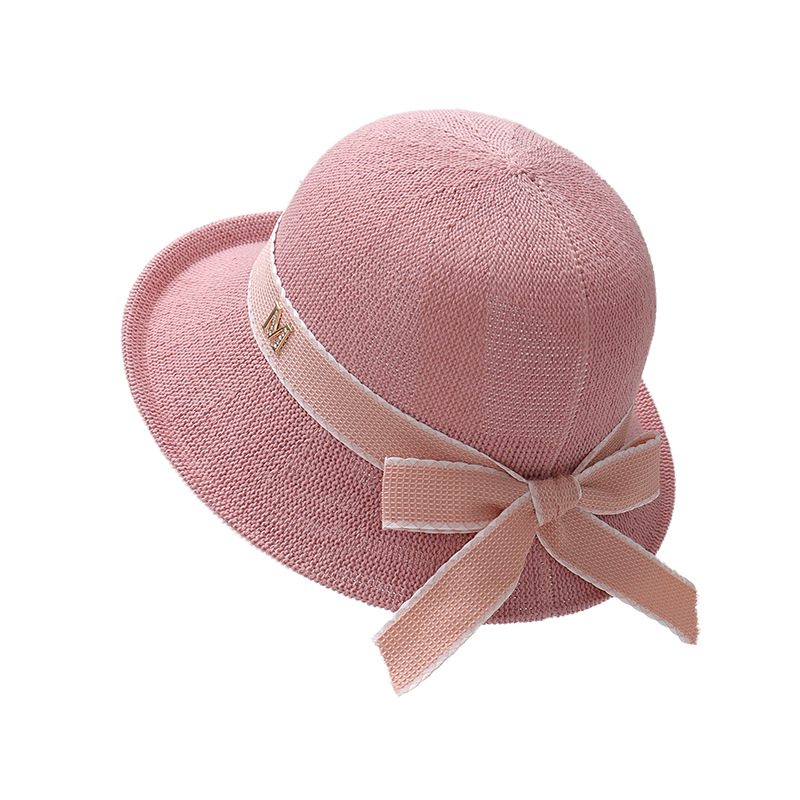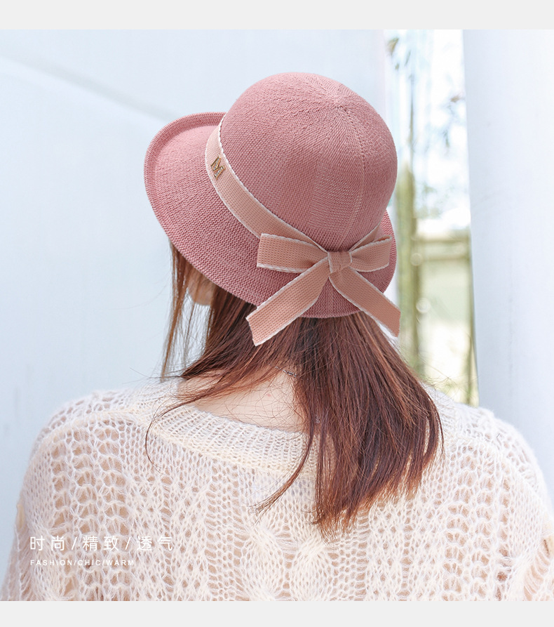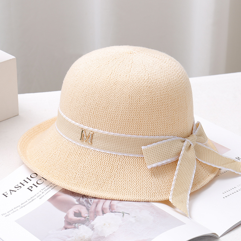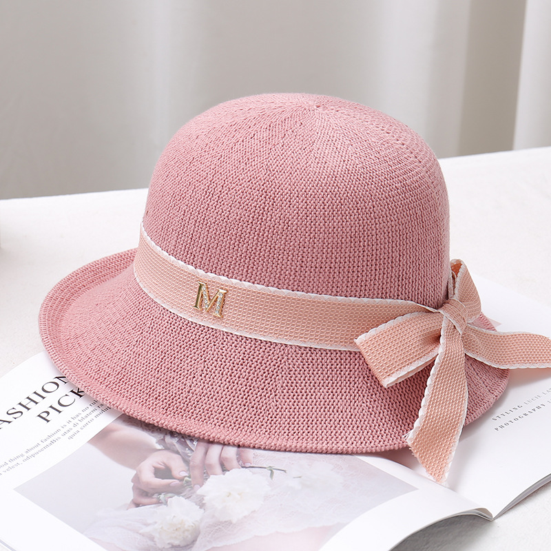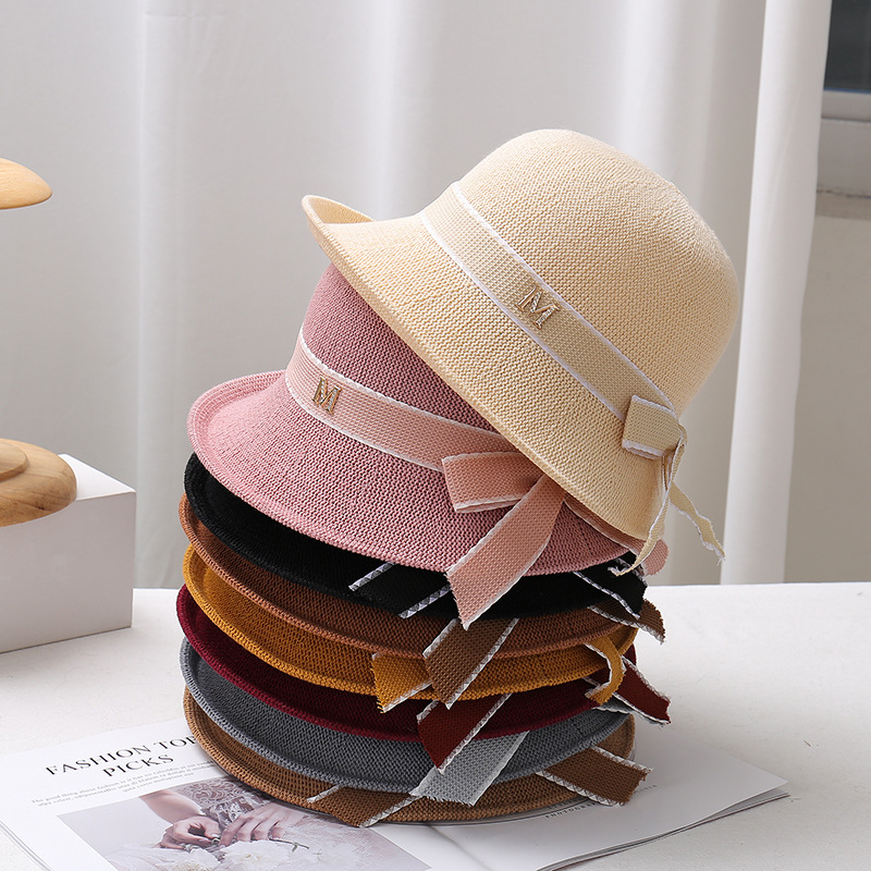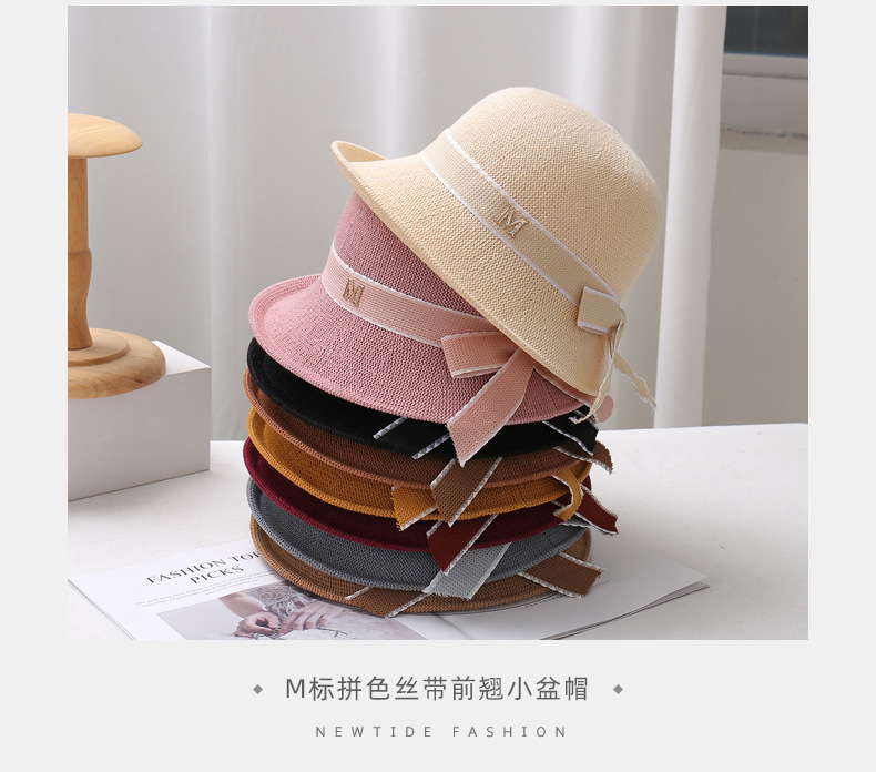 2023春夏新款翻檐小盆帽韩版M标甜美风丝带蝴蝶结帽子女柔软透气