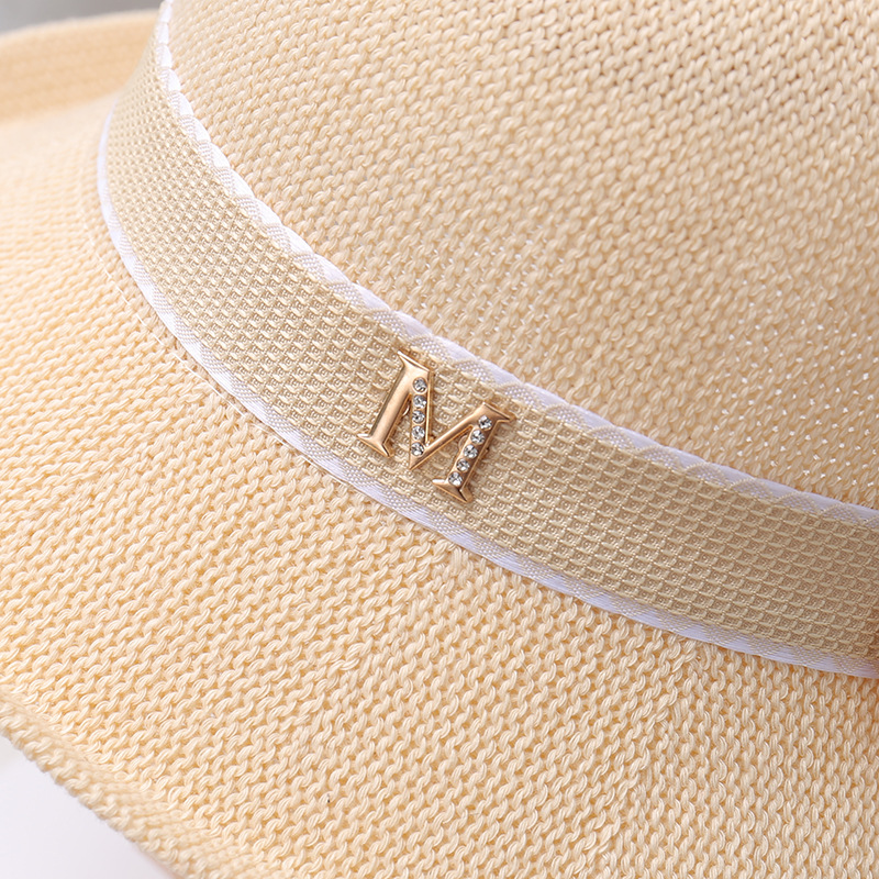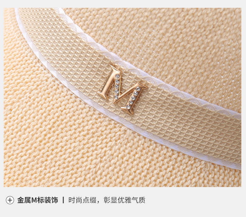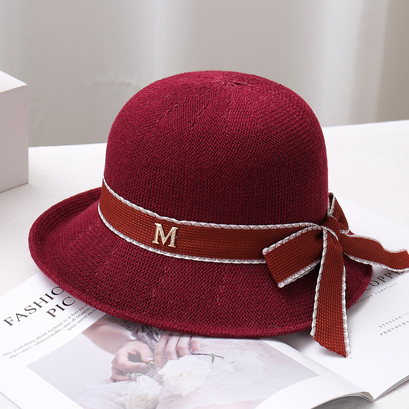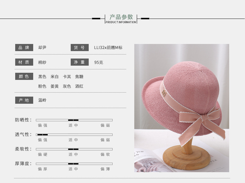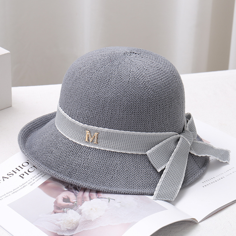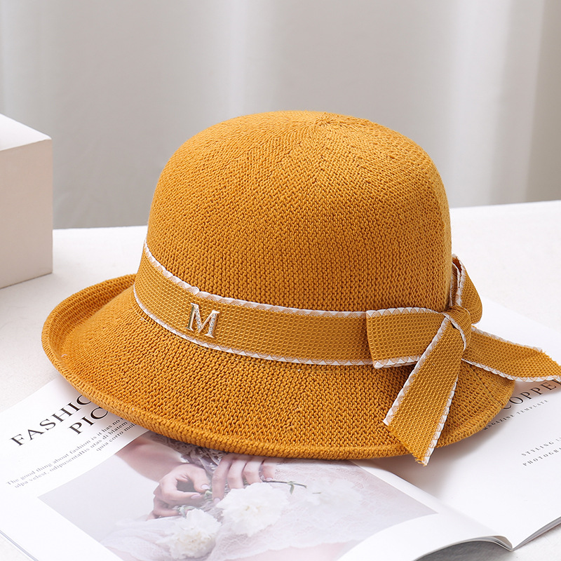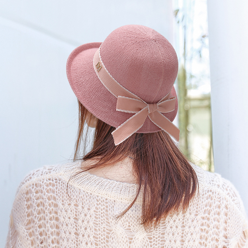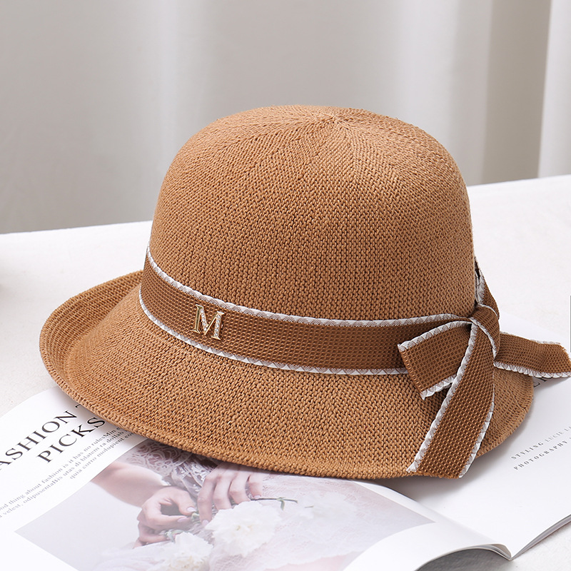 2023春夏新款翻檐小盆帽韩版M标甜美风丝带蝴蝶结帽子女柔软透气