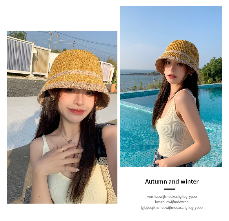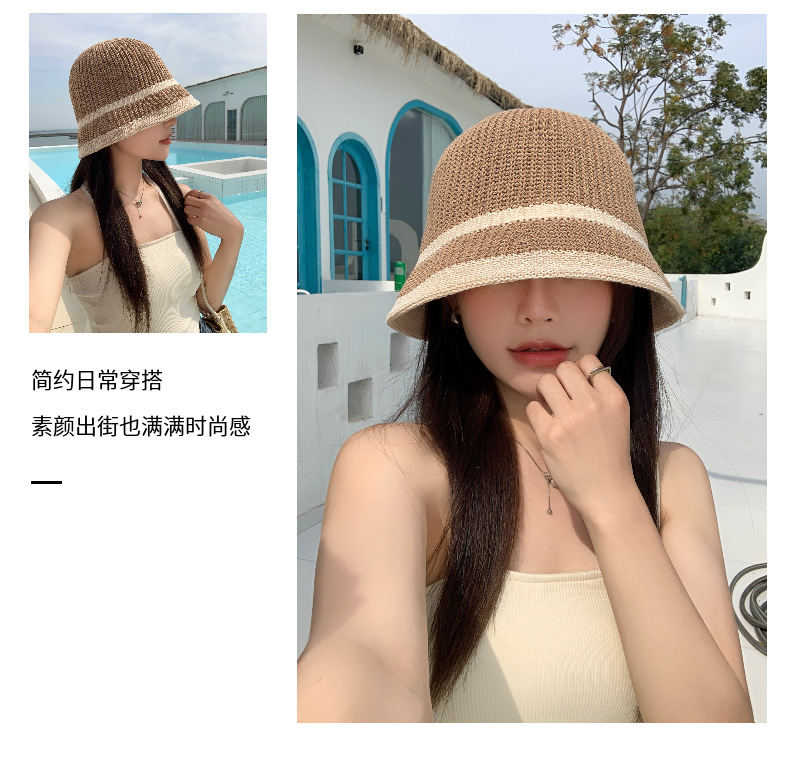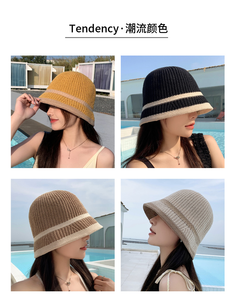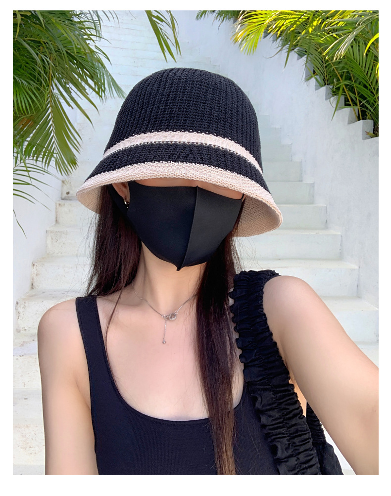 韩国帽子夏针织薄款渔夫帽防晒女士水桶帽可折叠旅游遮阳帽学院风