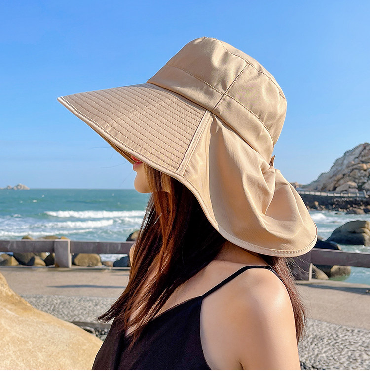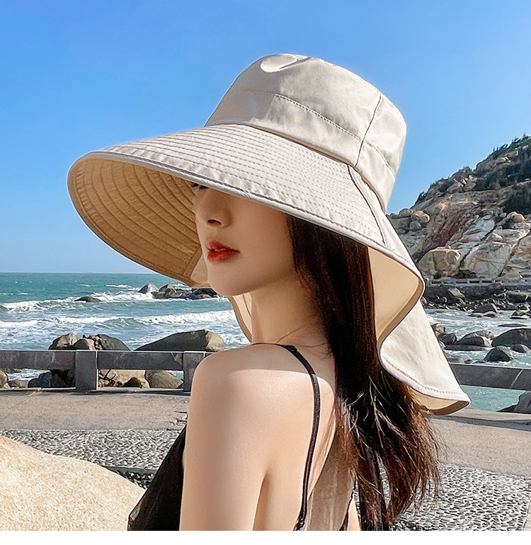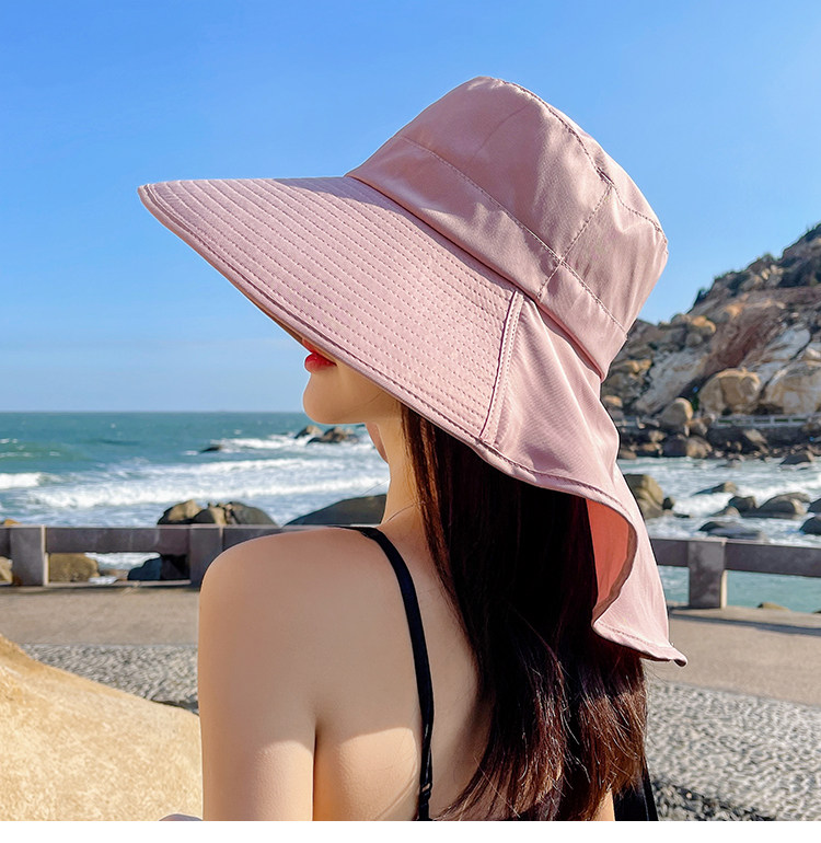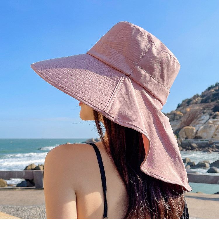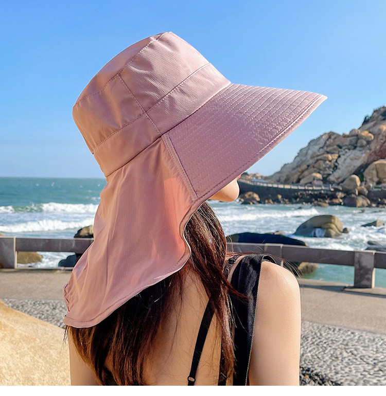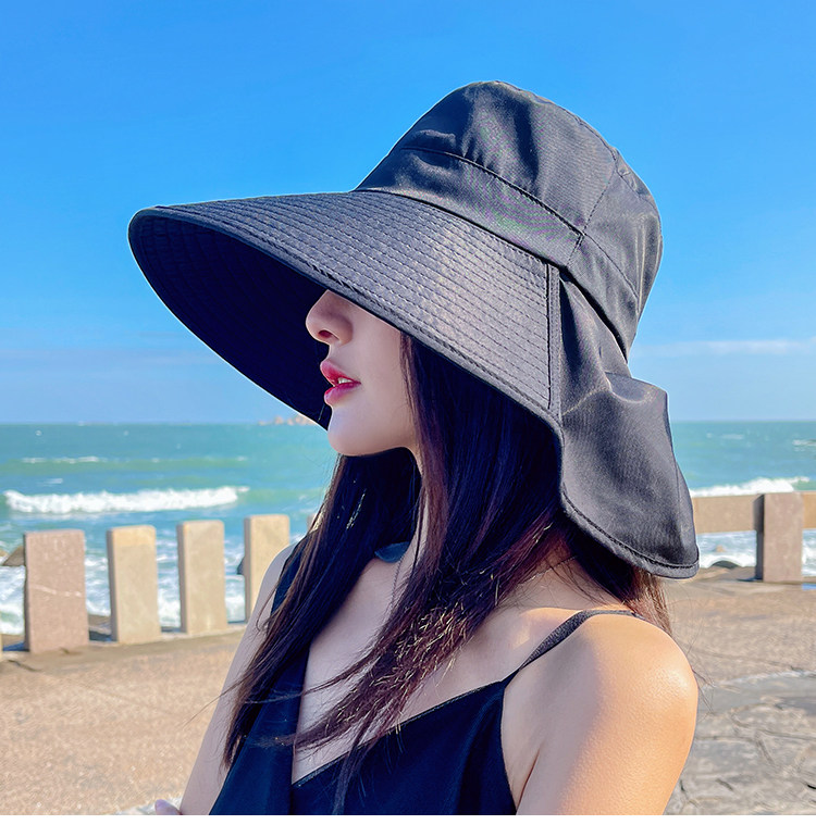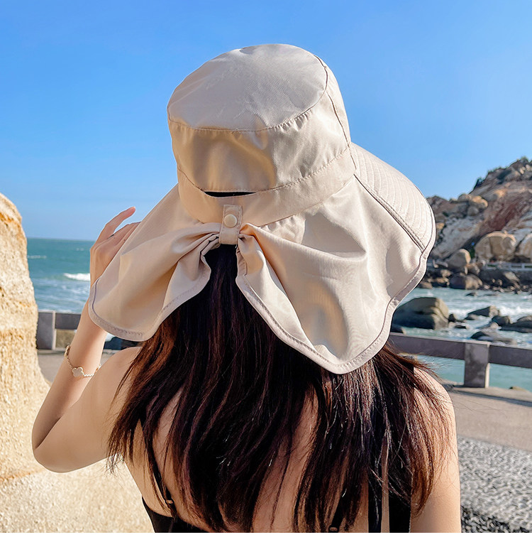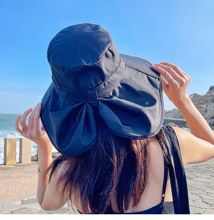 渔夫帽日系女夏休闲遮脸遮阳防晒帽防紫外线太阳帽护脖漏马尾帽子