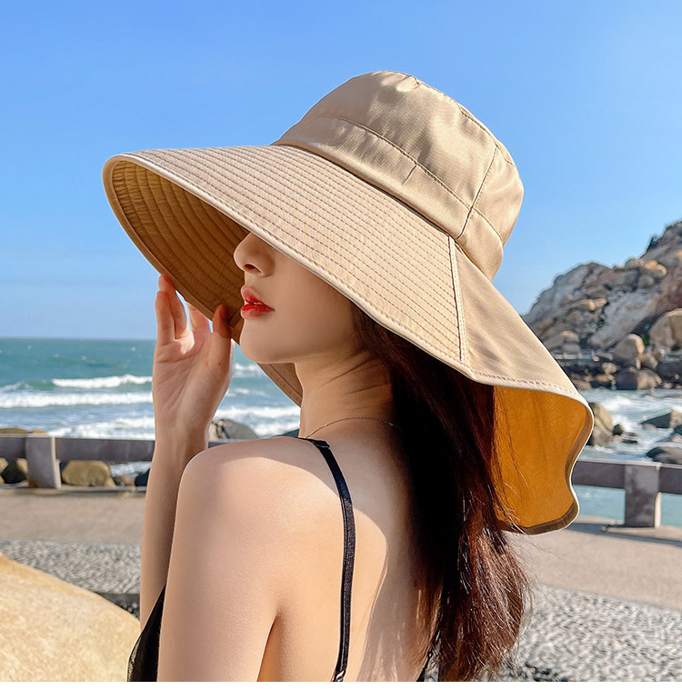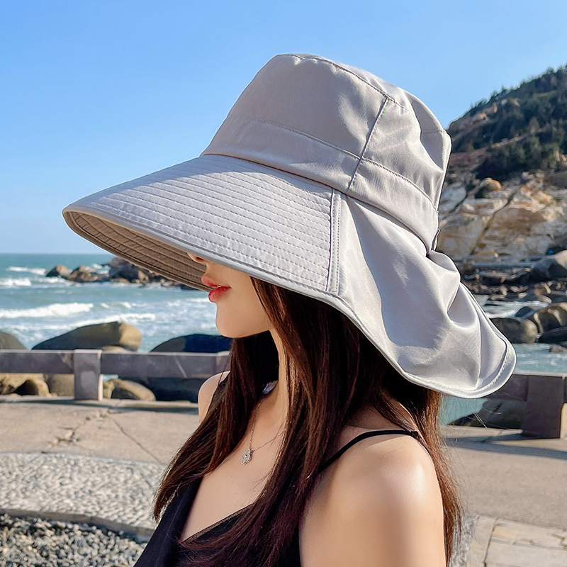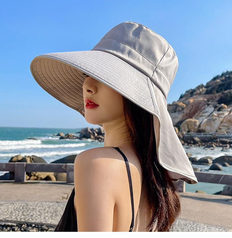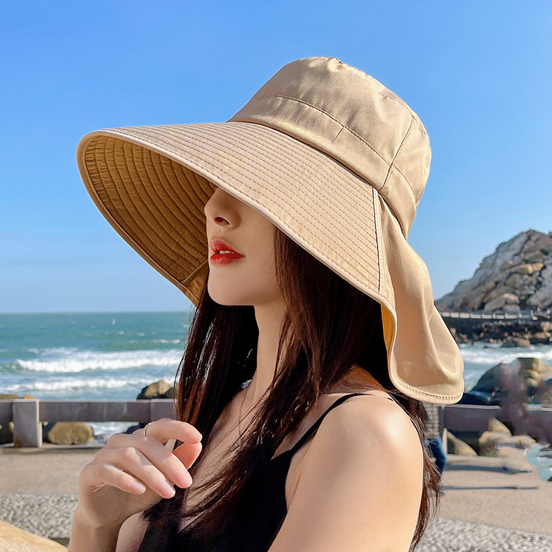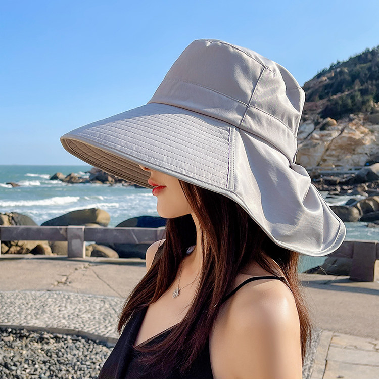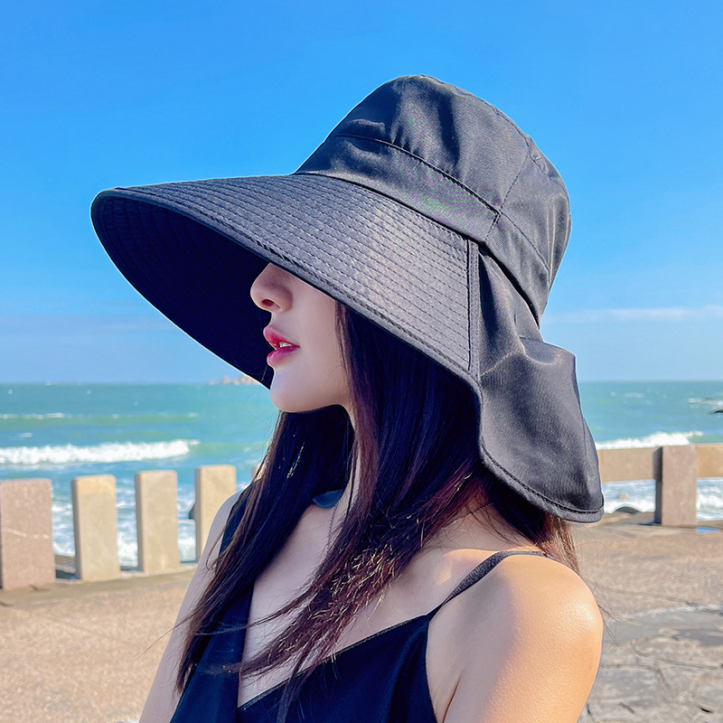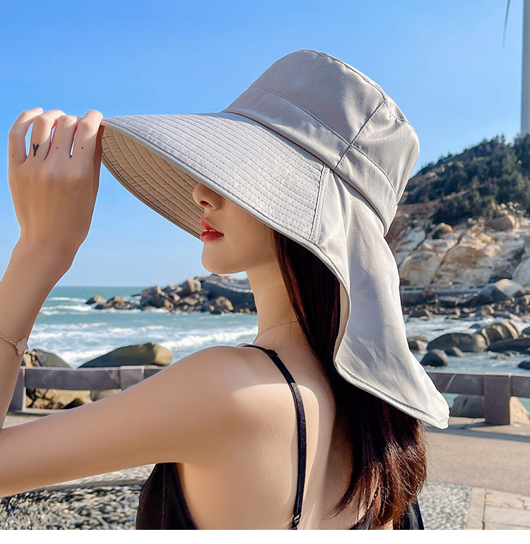 渔夫帽日系女夏休闲遮脸遮阳防晒帽防紫外线太阳帽护脖漏马尾帽子