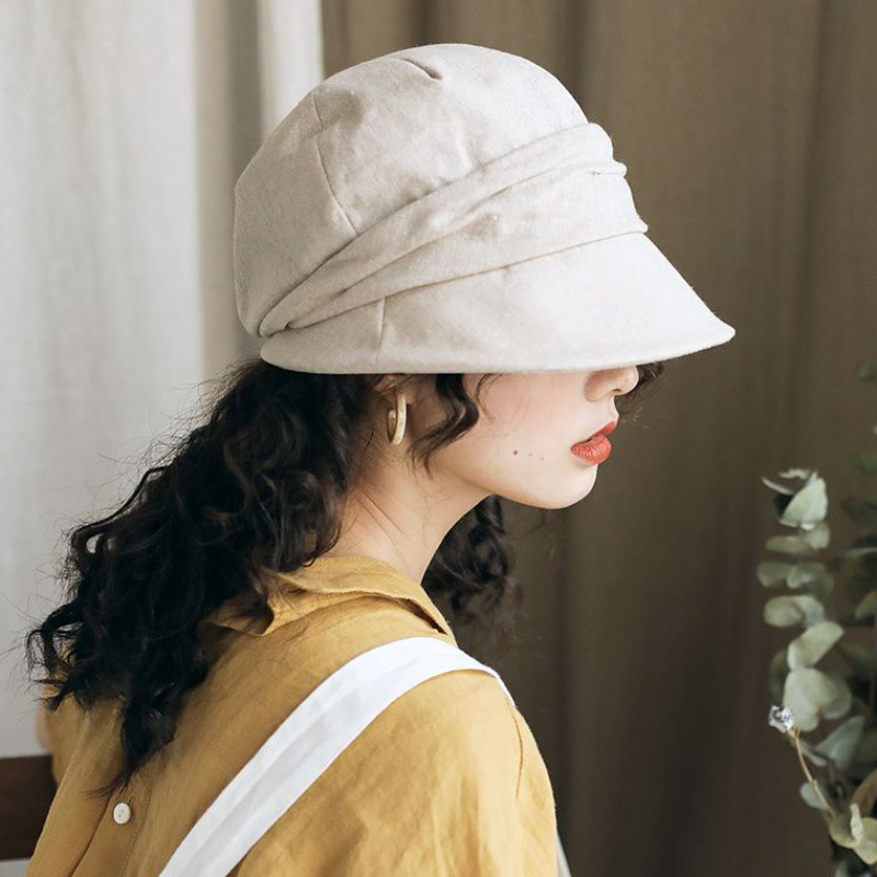 帽子女春夏季韩版文艺休闲鸭舌贝雷帽复古褶皱盆帽度假小沿凉帽潮