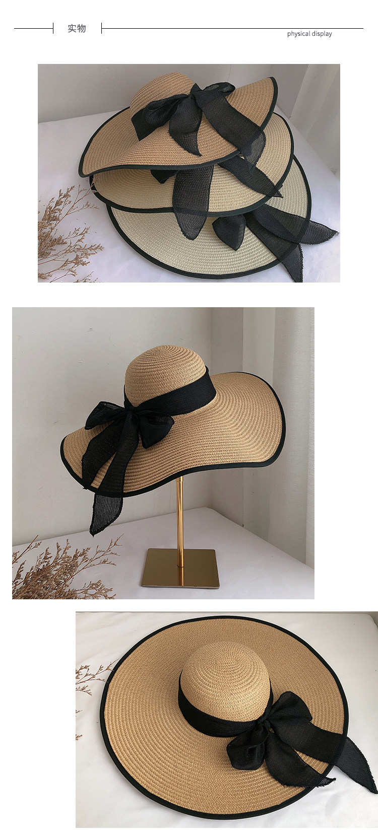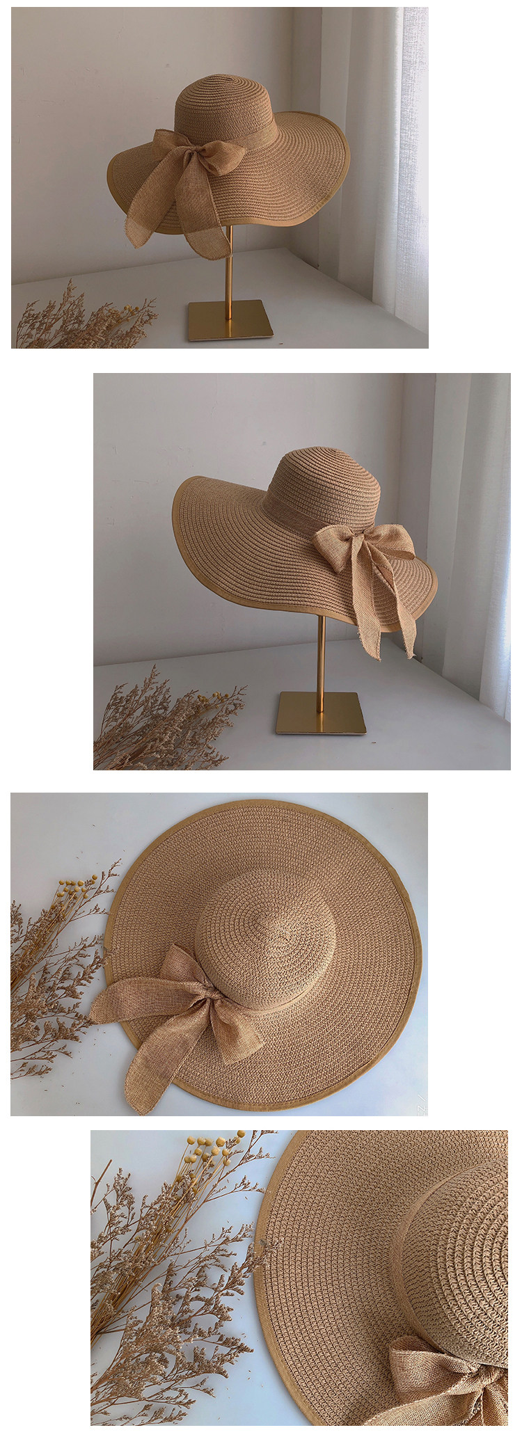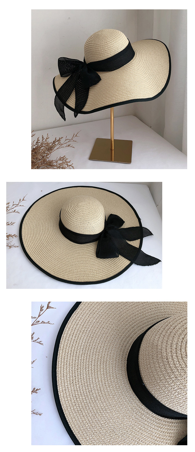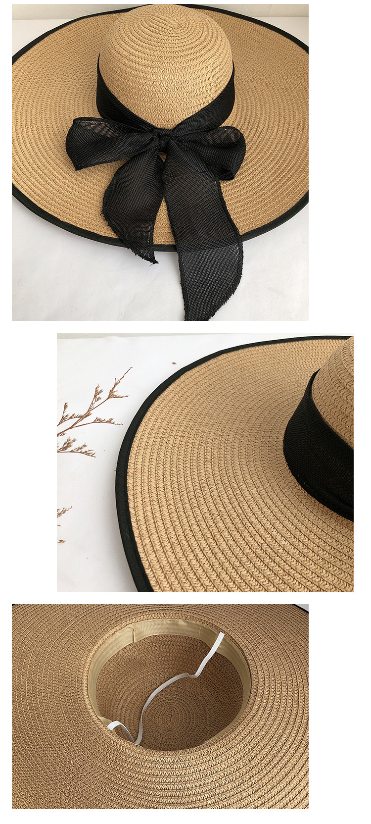 超大帽檐草帽女士夏季防晒大沿帽海边蝴蝶结沙滩帽遮阳帽子太阳帽