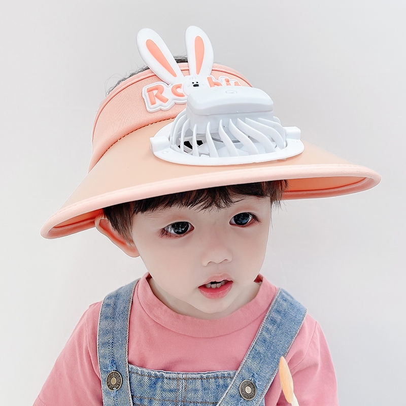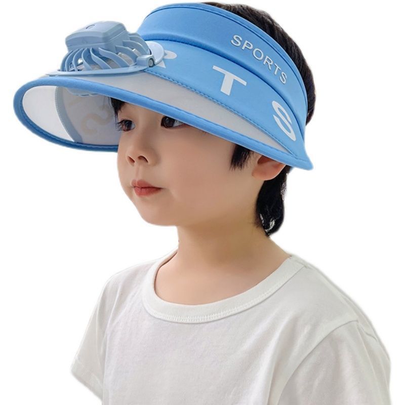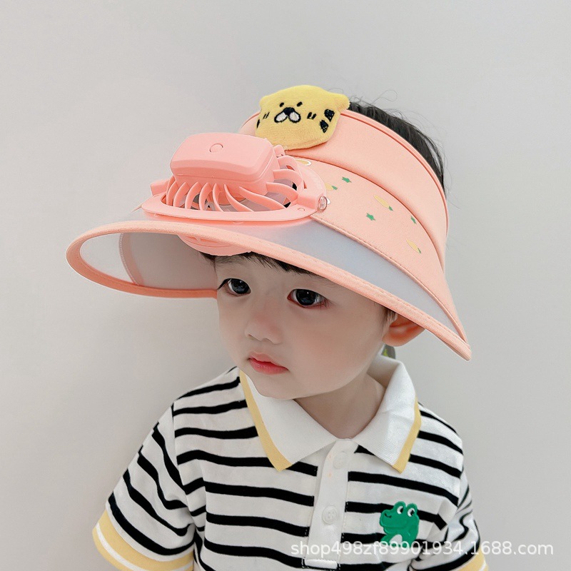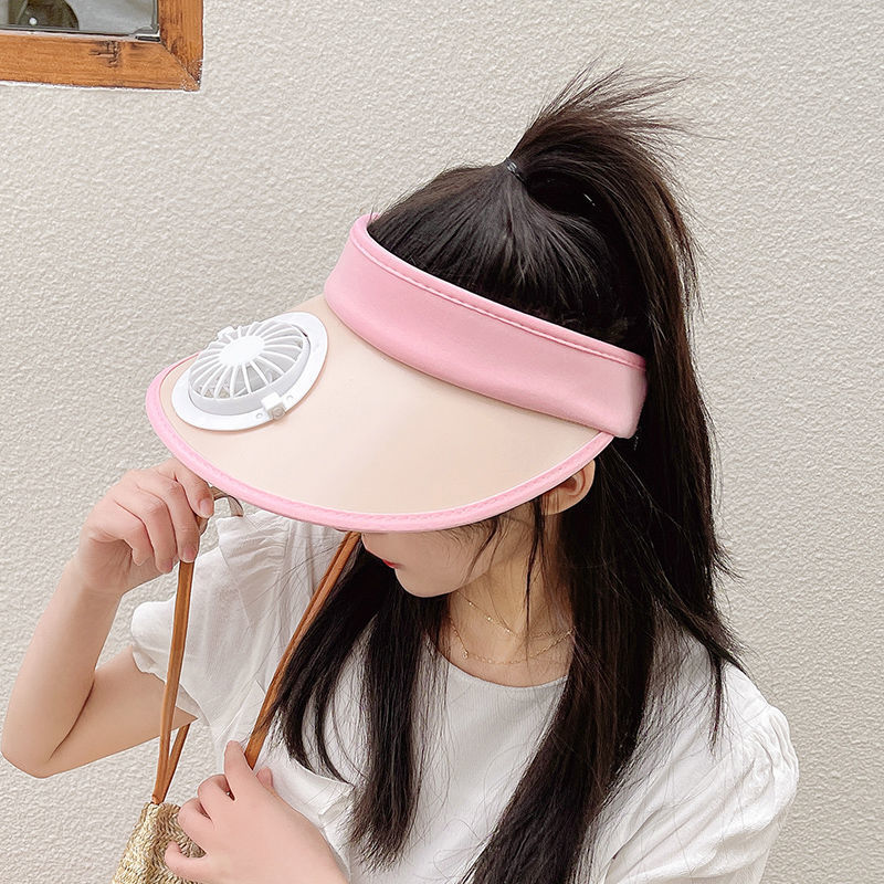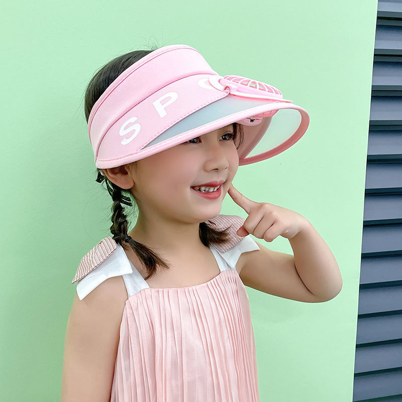 儿童帽子空顶凉帽夏季遮阳帽防晒帽带风扇帽男童女宝宝薄款太阳帽