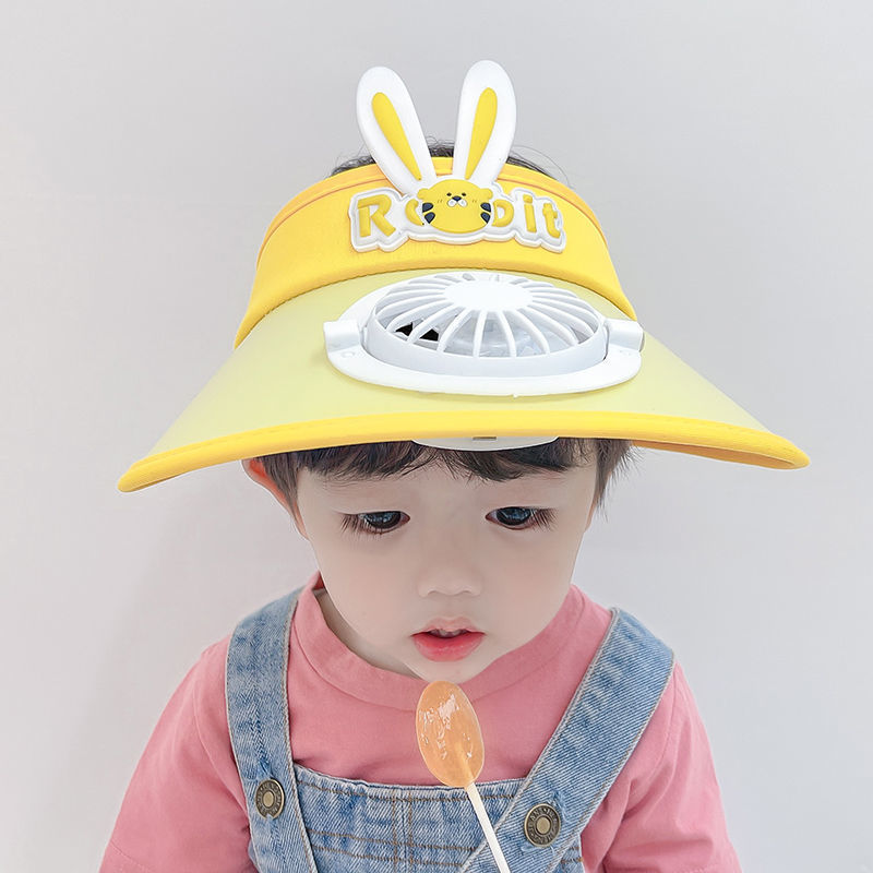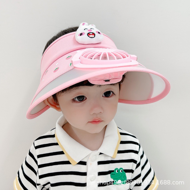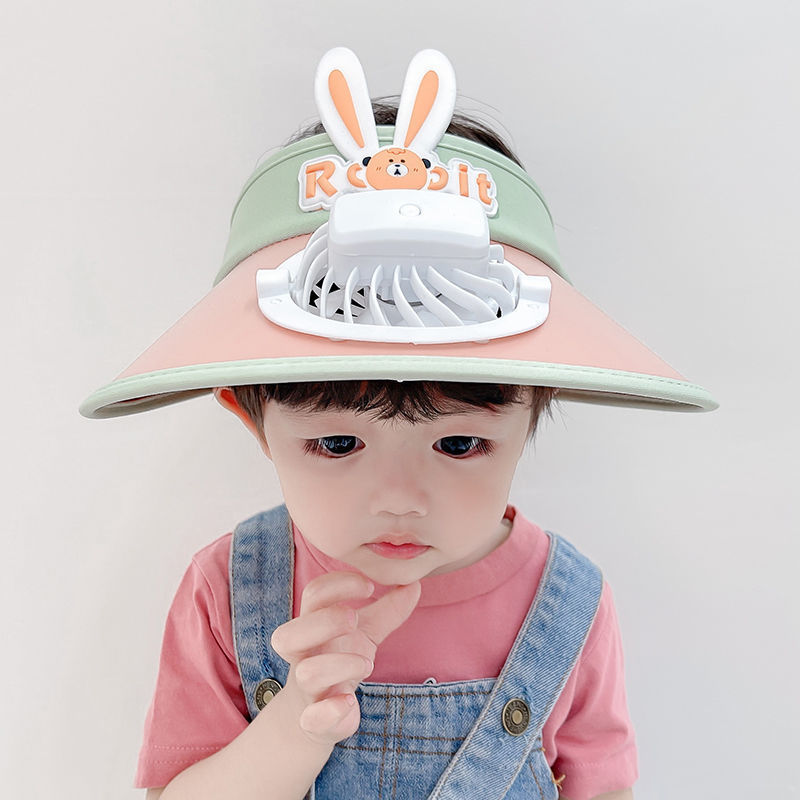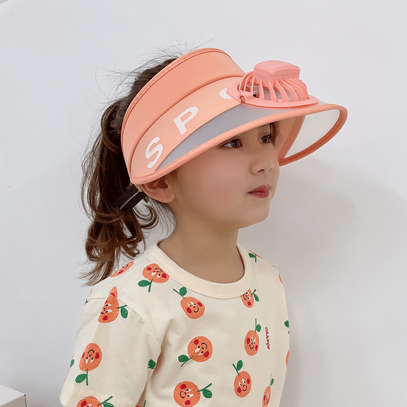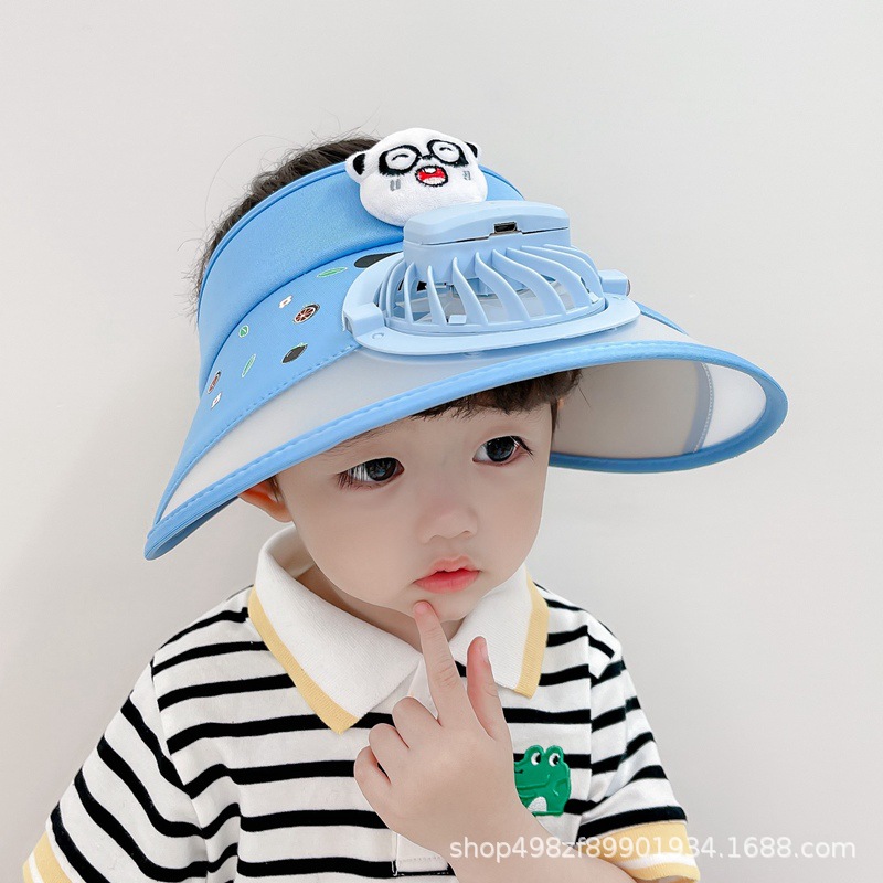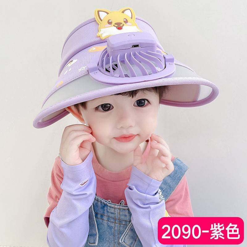 儿童帽子空顶凉帽夏季遮阳帽防晒帽带风扇帽男童女宝宝薄款太阳帽