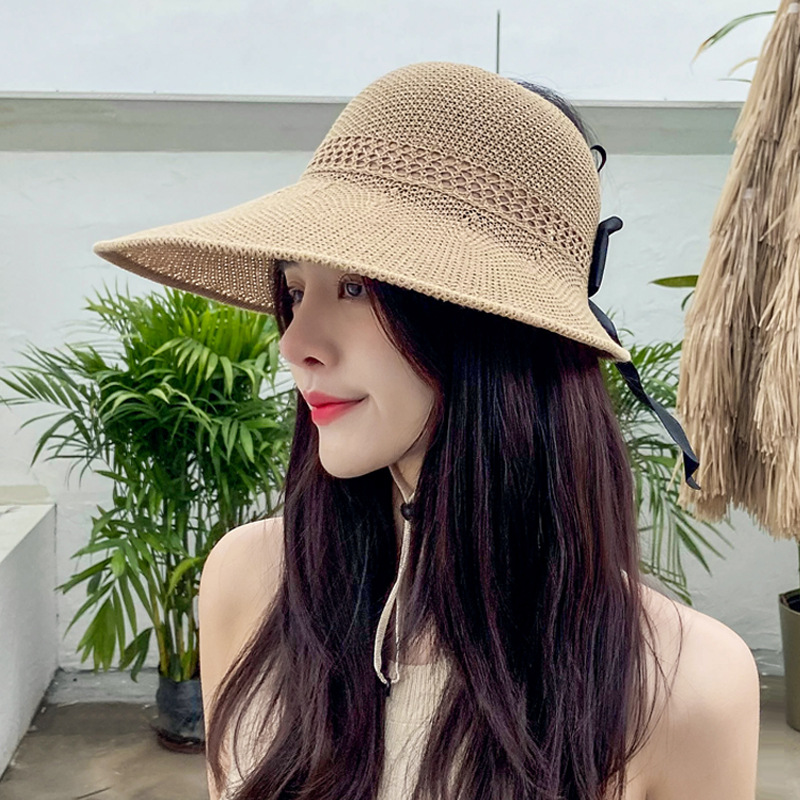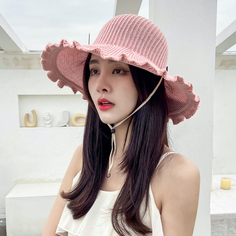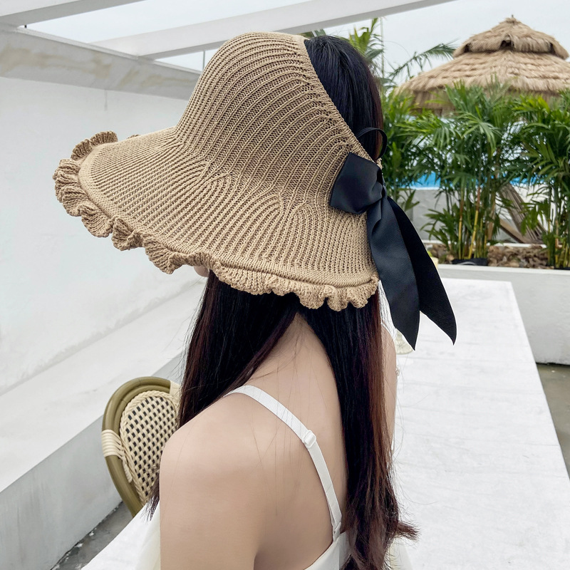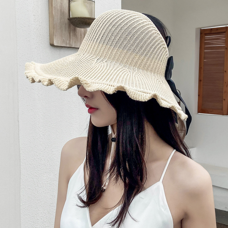 波浪边空顶帽女夏季户外防晒遮阳帽出游沙滩太阳帽卷卷大沿草帽子