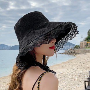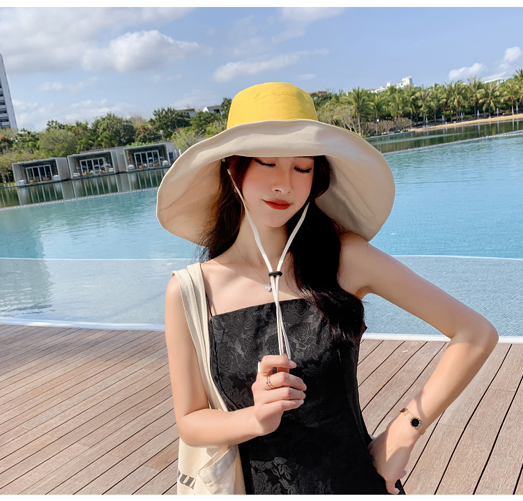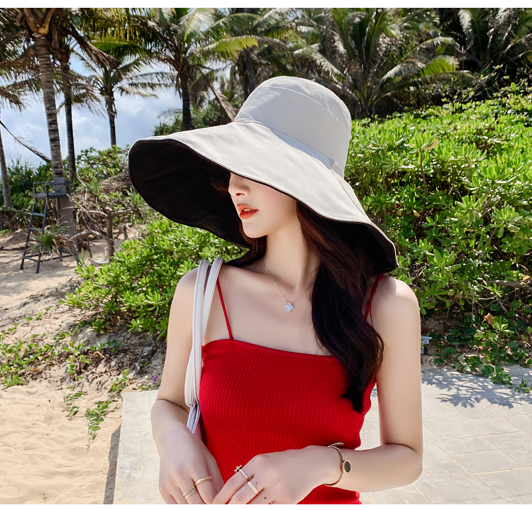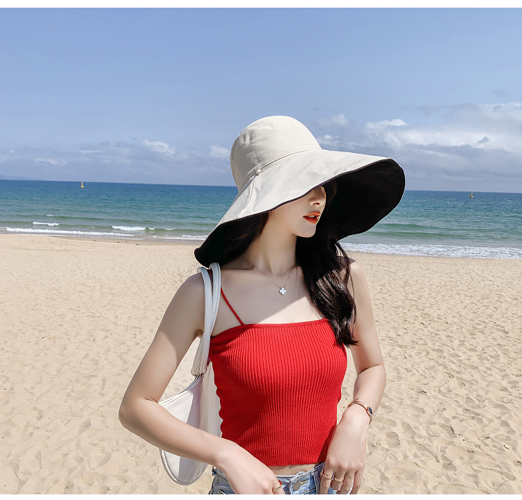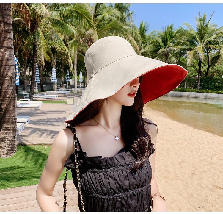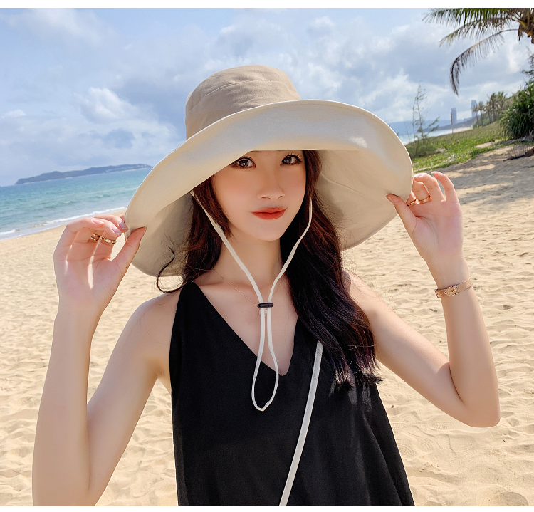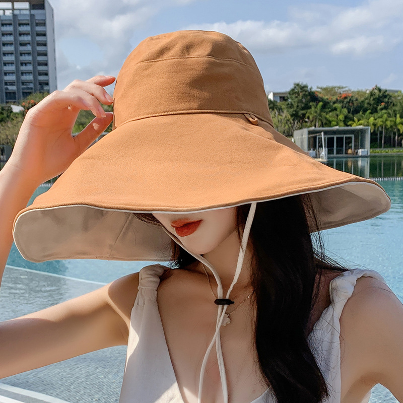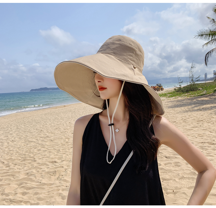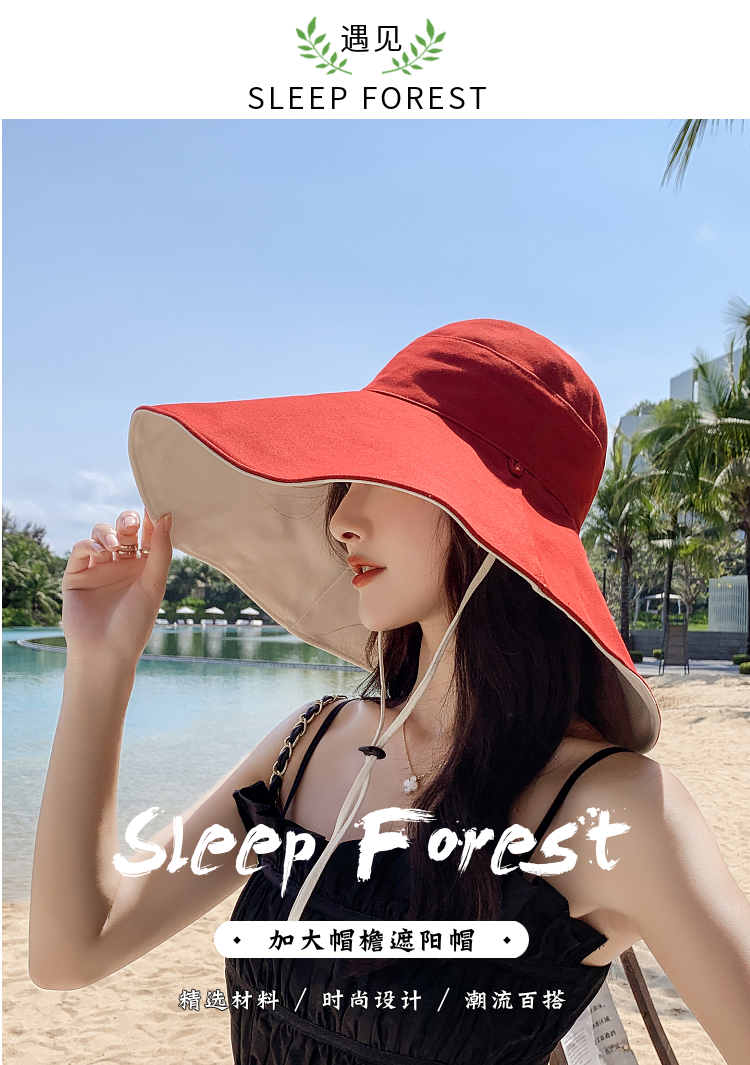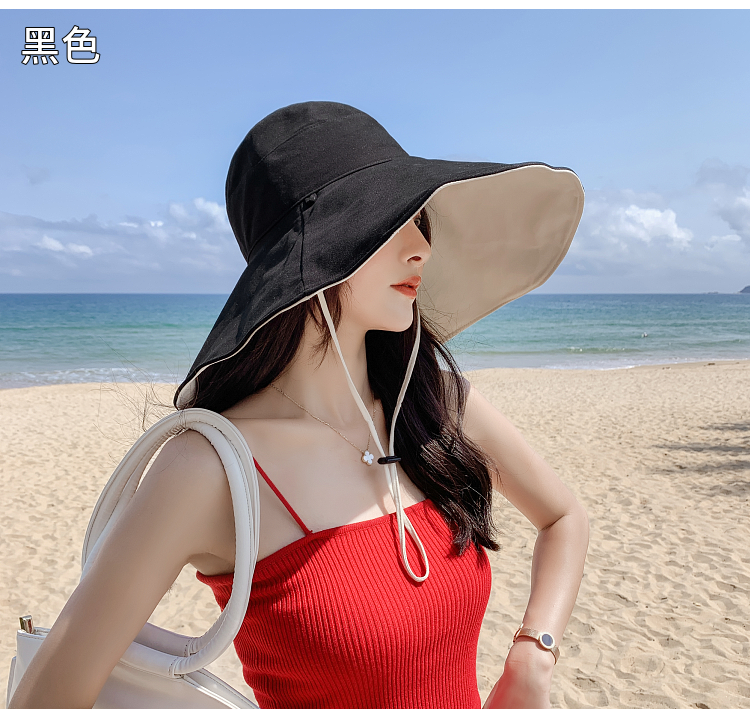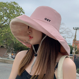 网红款渔夫帽女棉遮脸韩版防晒紫外线遮阳帽子大沿百搭大帽檐夏季