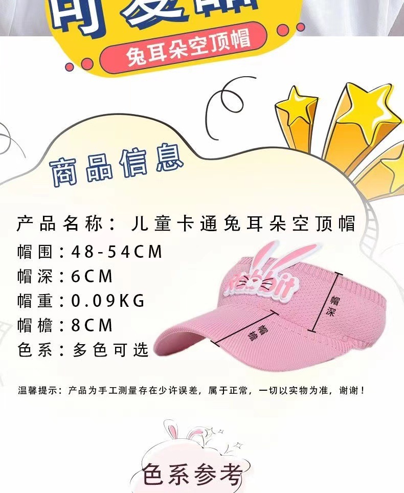 儿童男女童夏季透气户外运动防晒鸭舌帽可爱卡通兔子空顶遮阳帽子