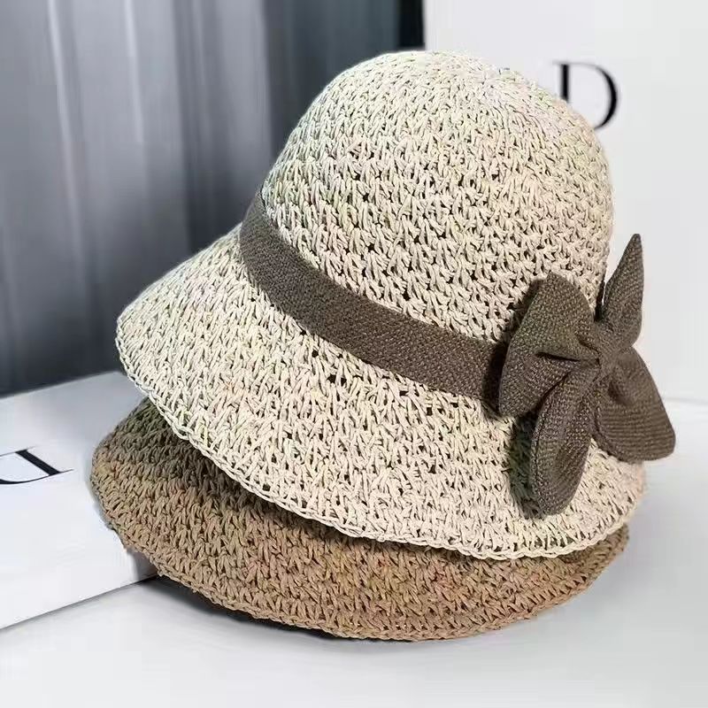 帽子女夏季草帽遮阳帽渔夫帽防晒帽蝴蝶结韩版太阳帽休闲沙