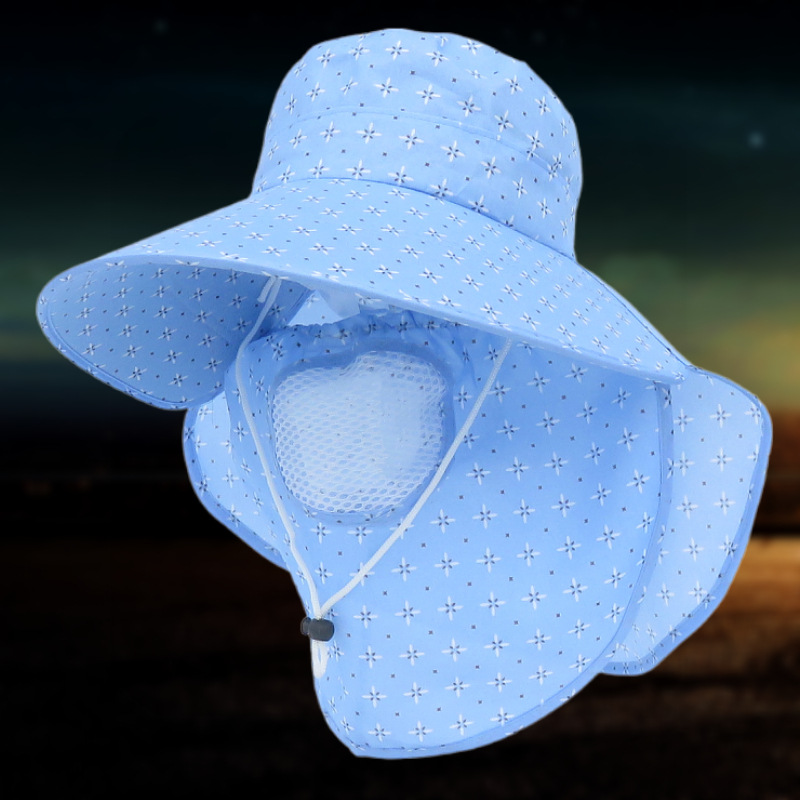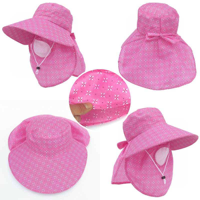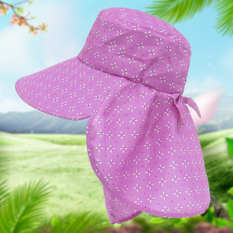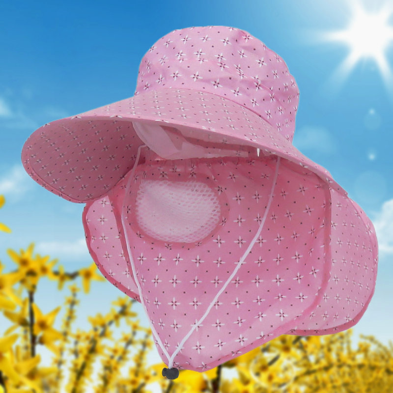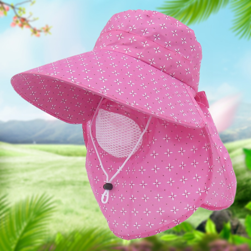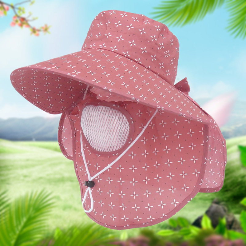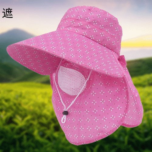 网红款采茶帽女春夏季户外遮脸遮脖帽劳动百搭遮阳帽太阳防晒帽子