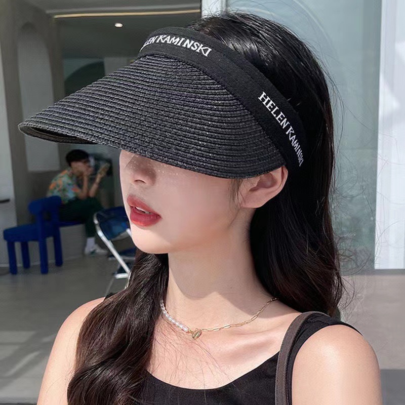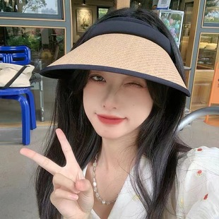 夏季新款韩版ins潮流草编空顶帽子女网红防晒遮阳帽发箍鸭舌帽