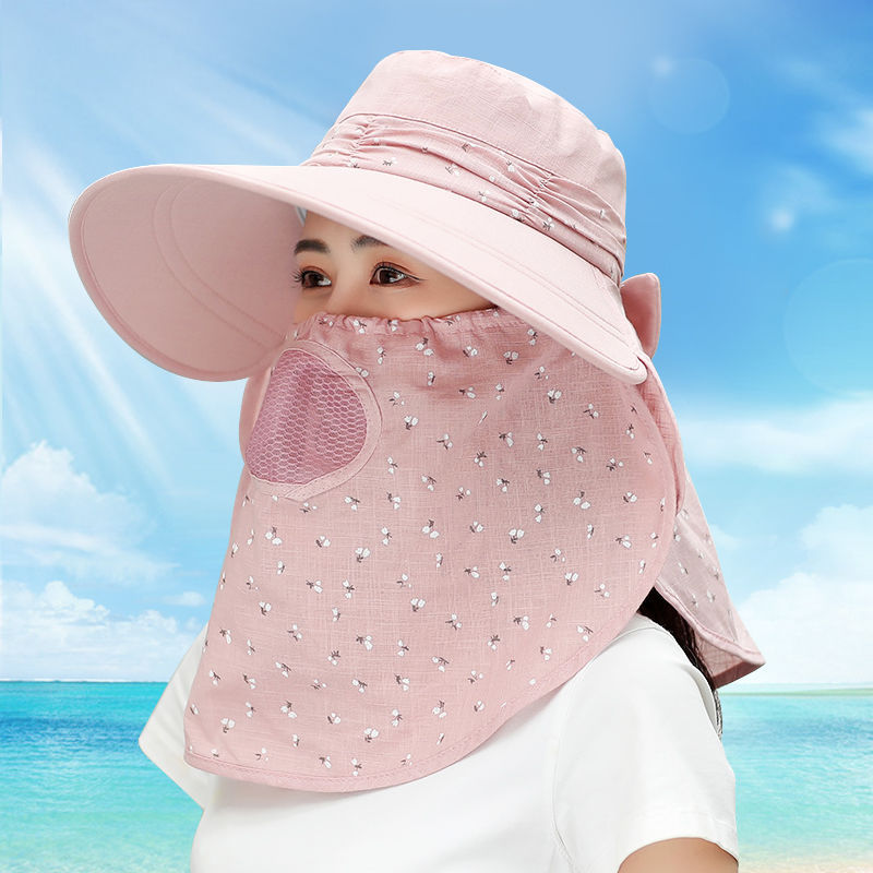 帽子女夏季防晒帽遮脸太阳帽大沿户外凉帽防紫外线采茶骑车遮阳帽