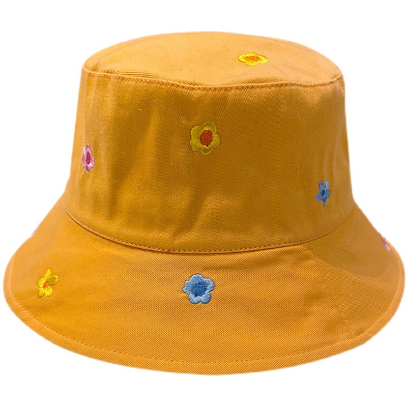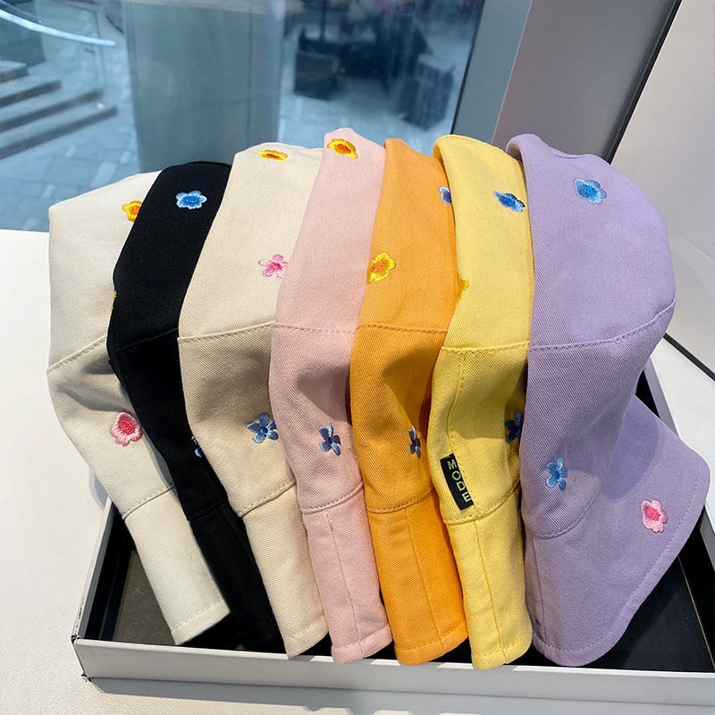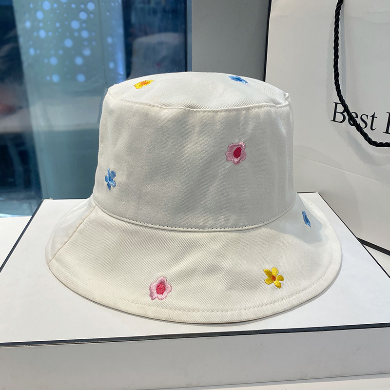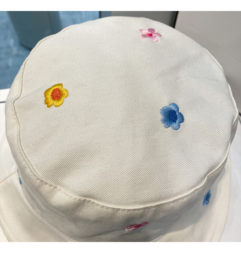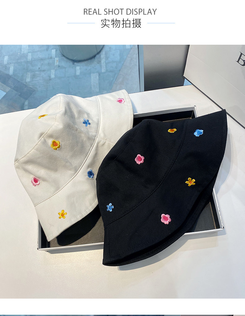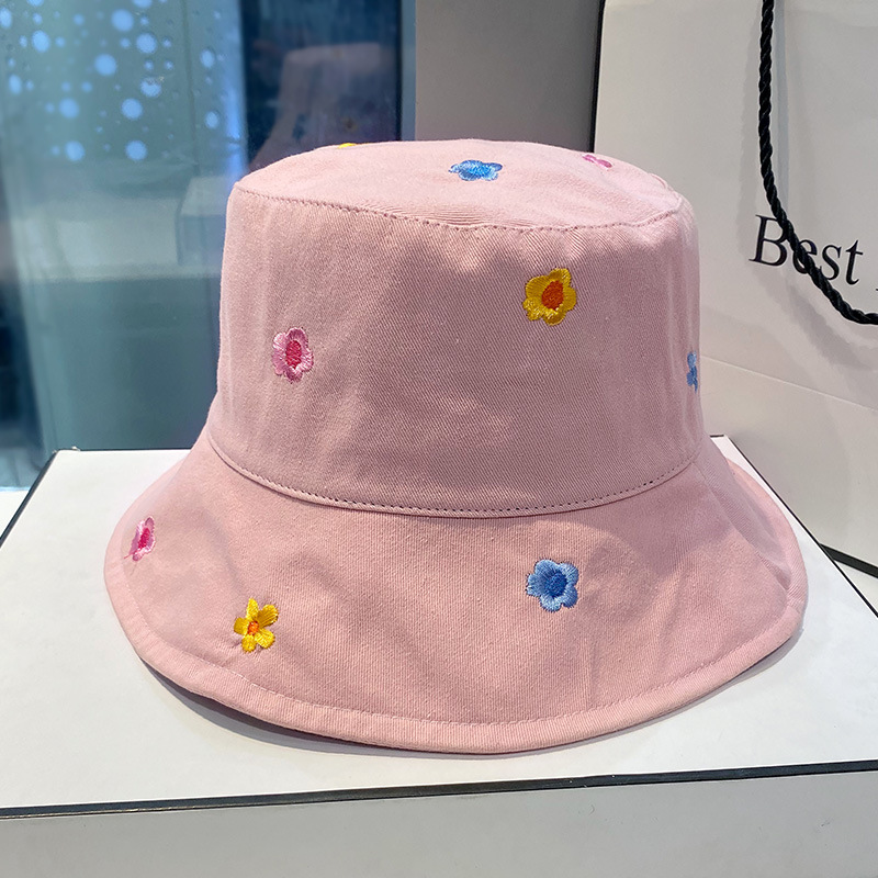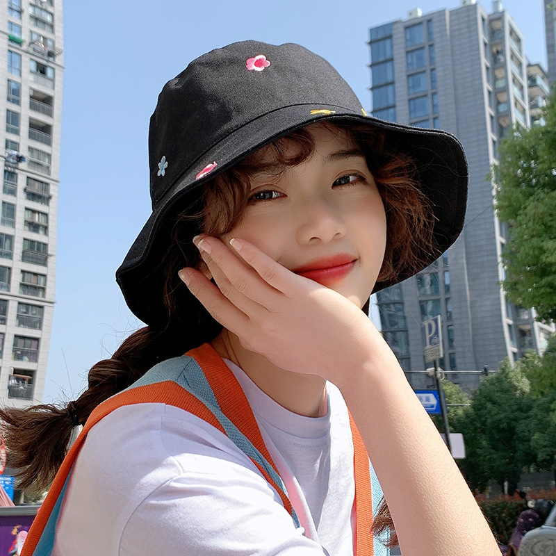 日系甜美可爱花朵刺绣渔夫帽子女夏天时尚休闲盆帽出游防晒遮阳帽