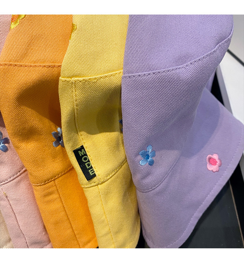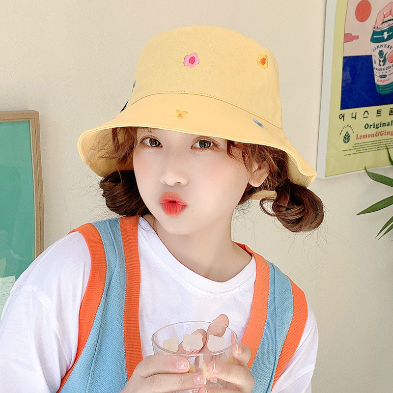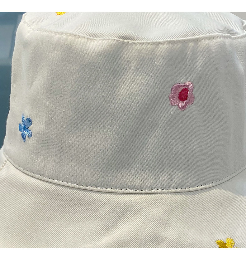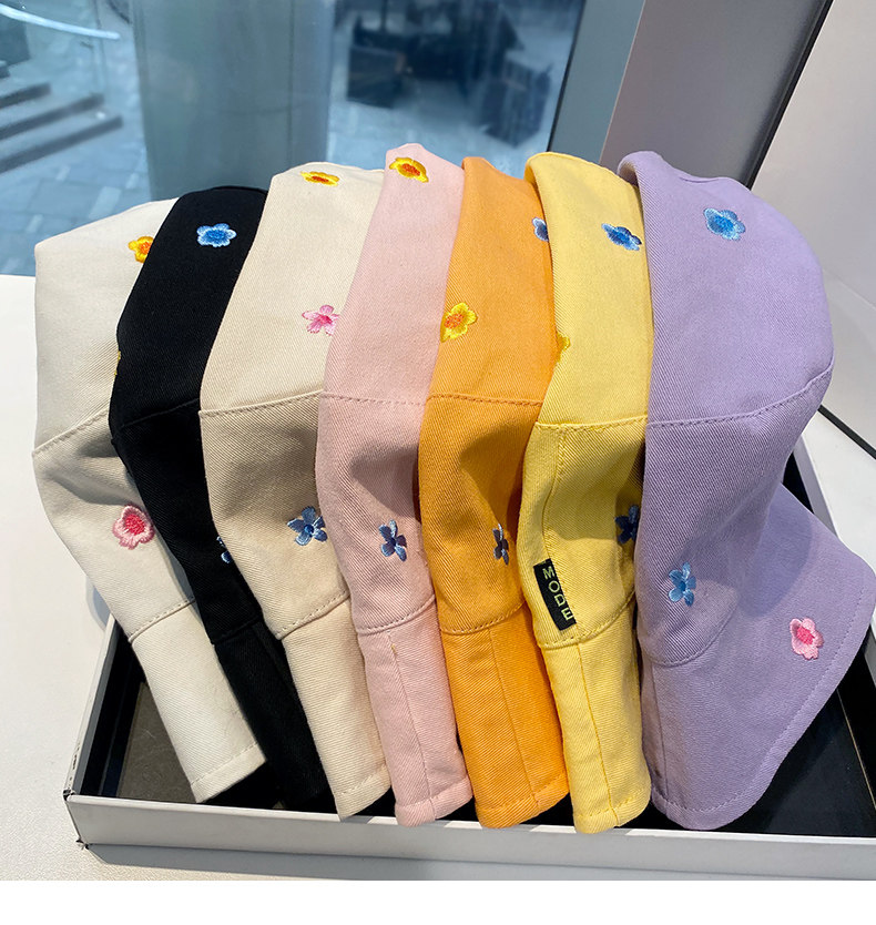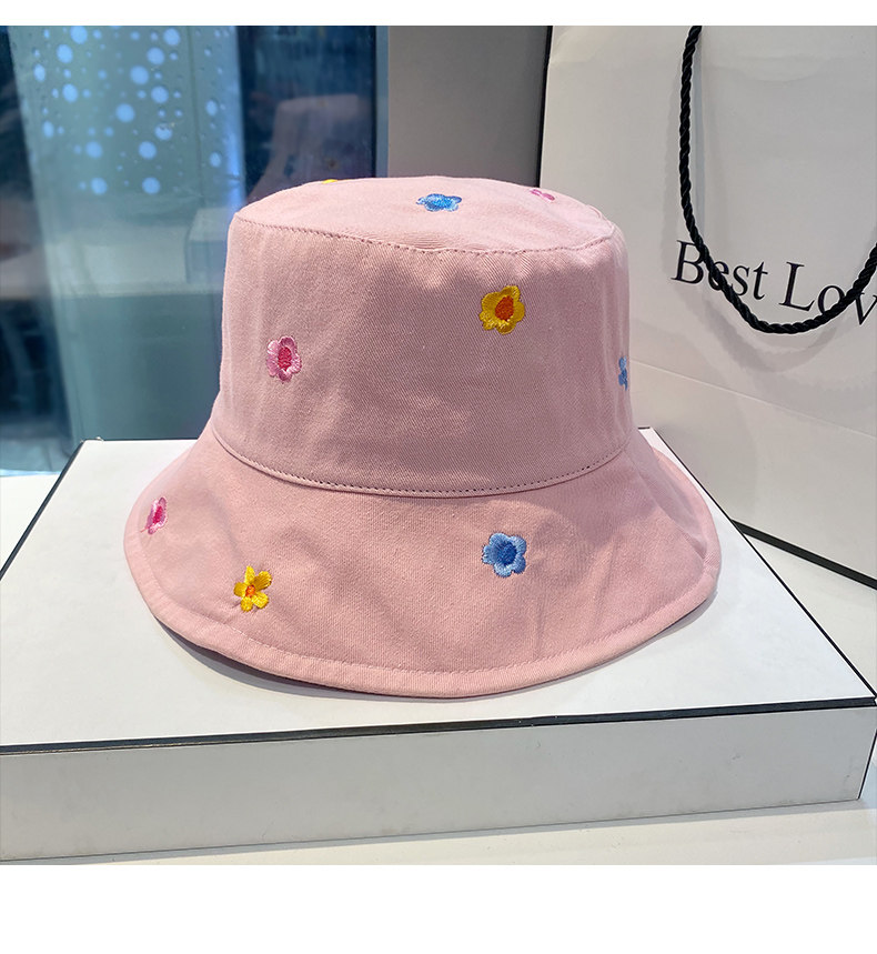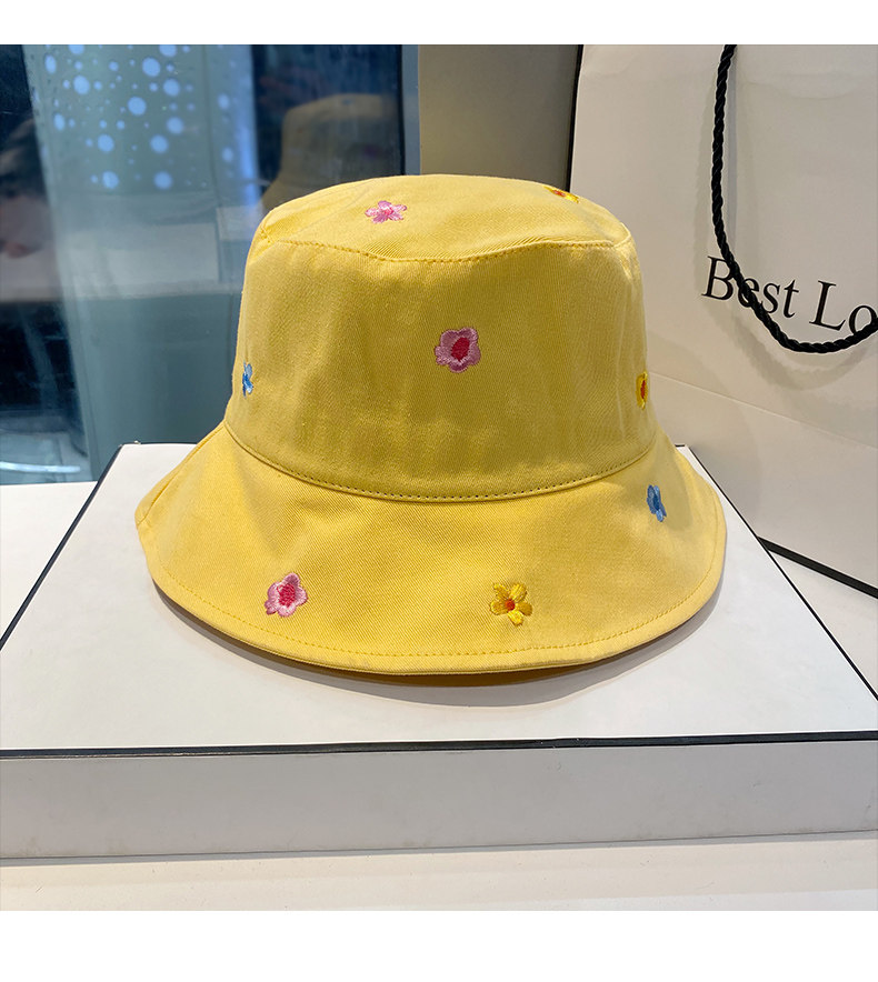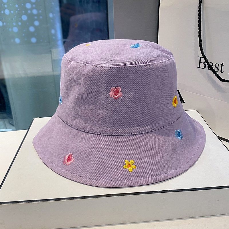 日系甜美可爱花朵刺绣渔夫帽子女夏天时尚休闲盆帽出游防晒遮阳帽