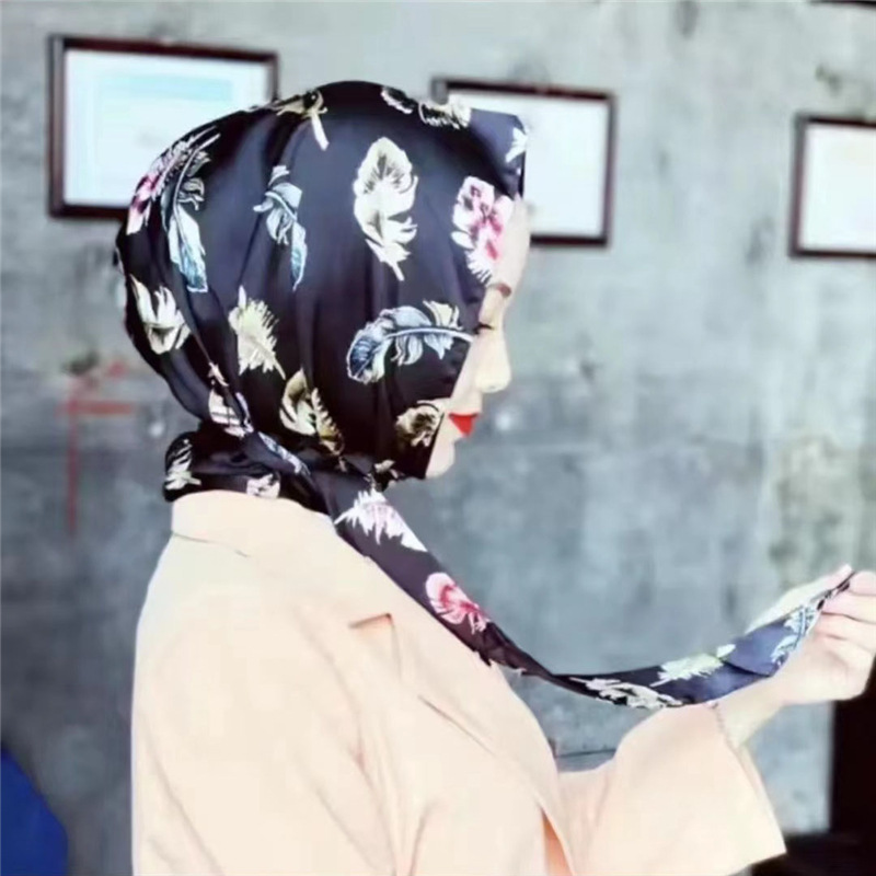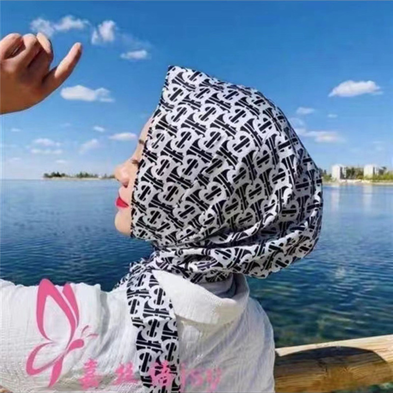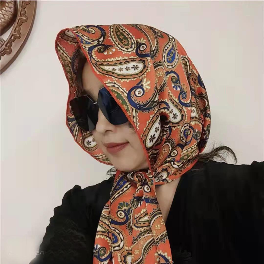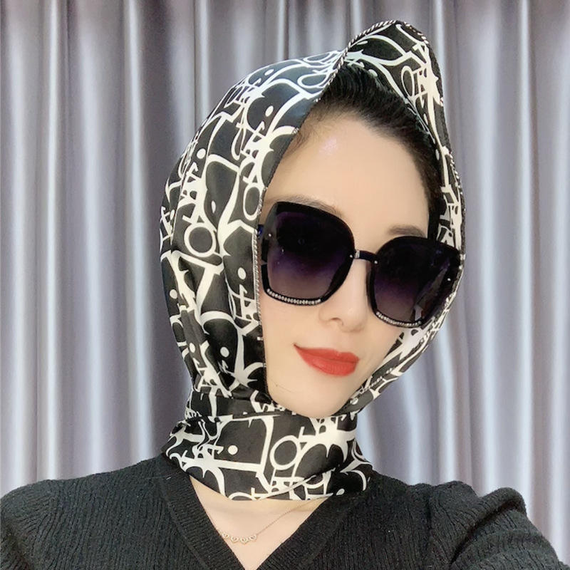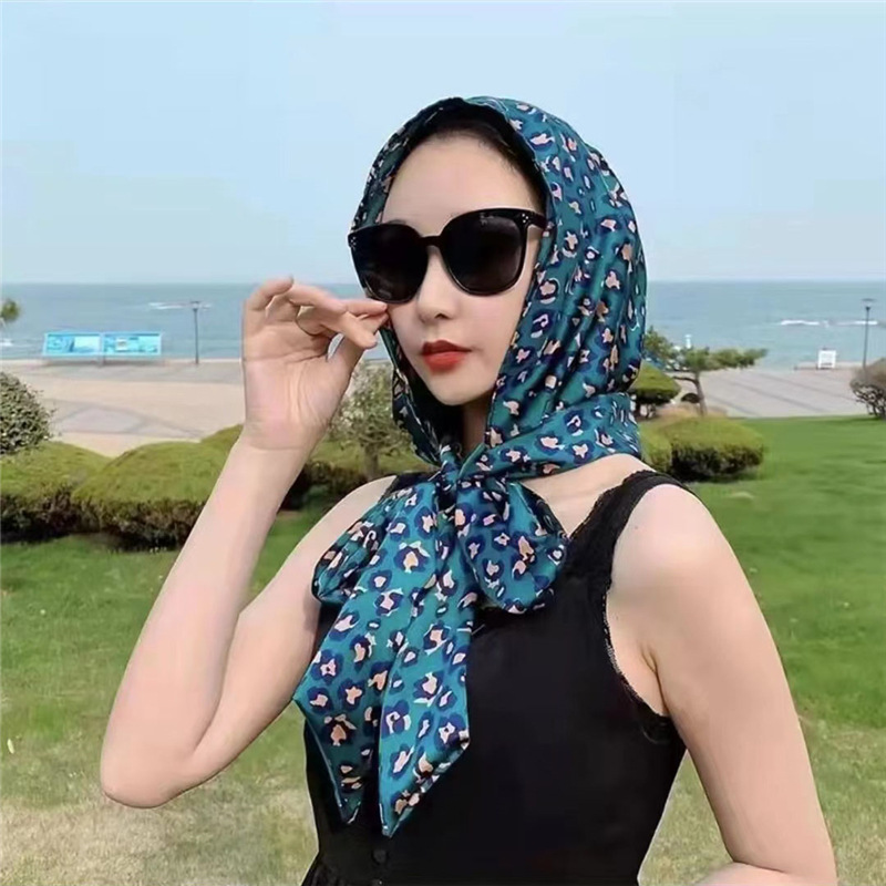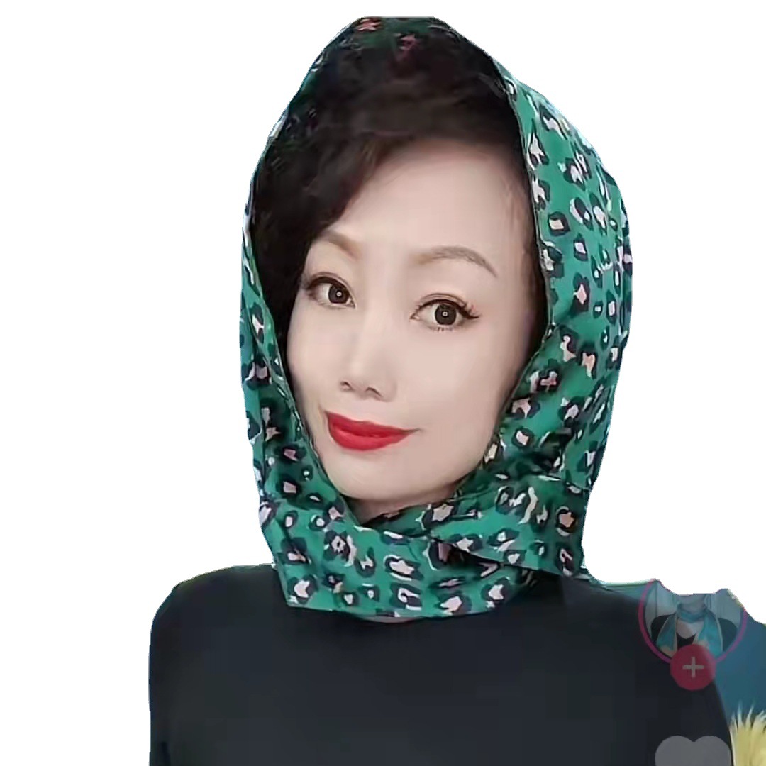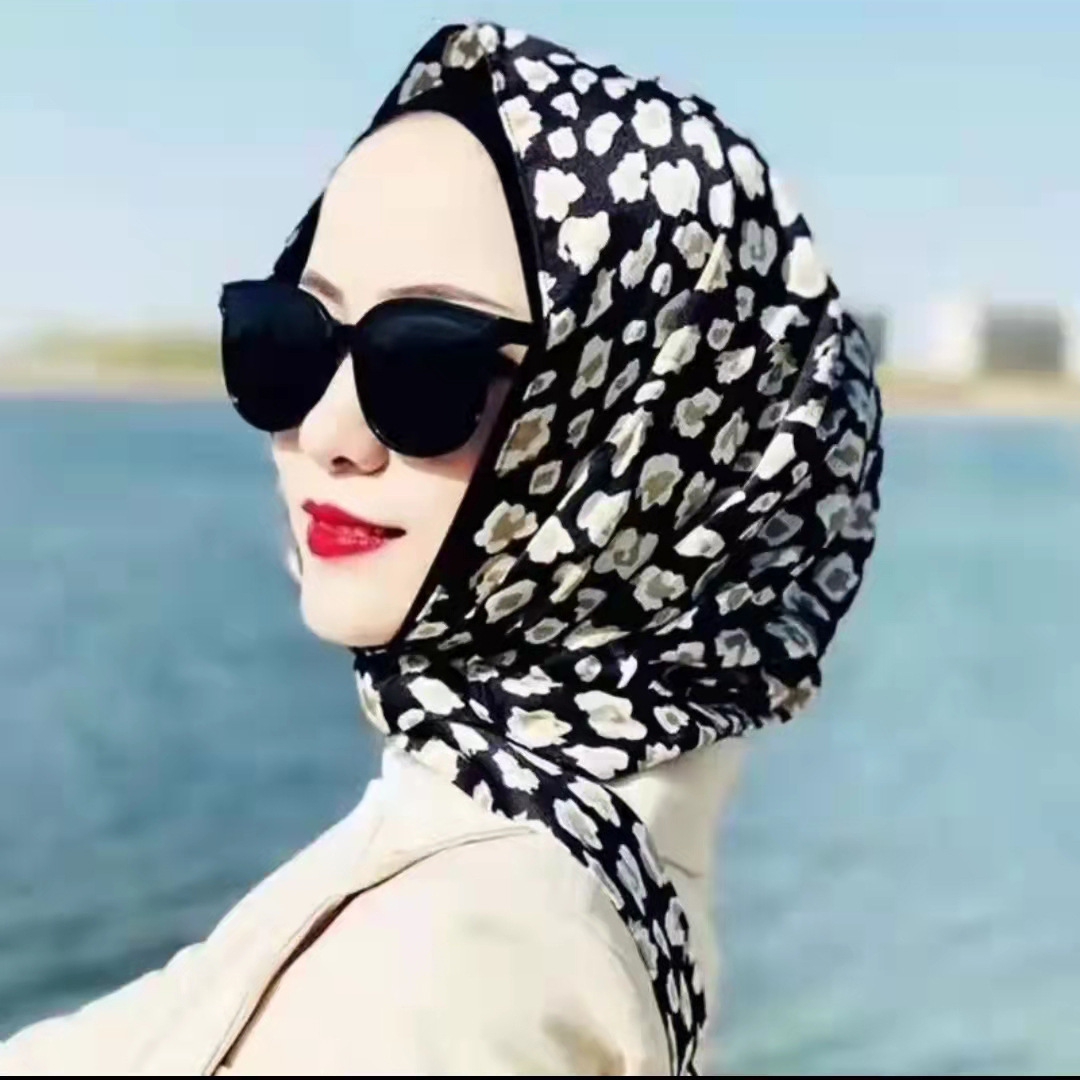 防晒丝巾帽女春夏新款多用包头巾防晒连帽时尚印花百搭飘带帽子