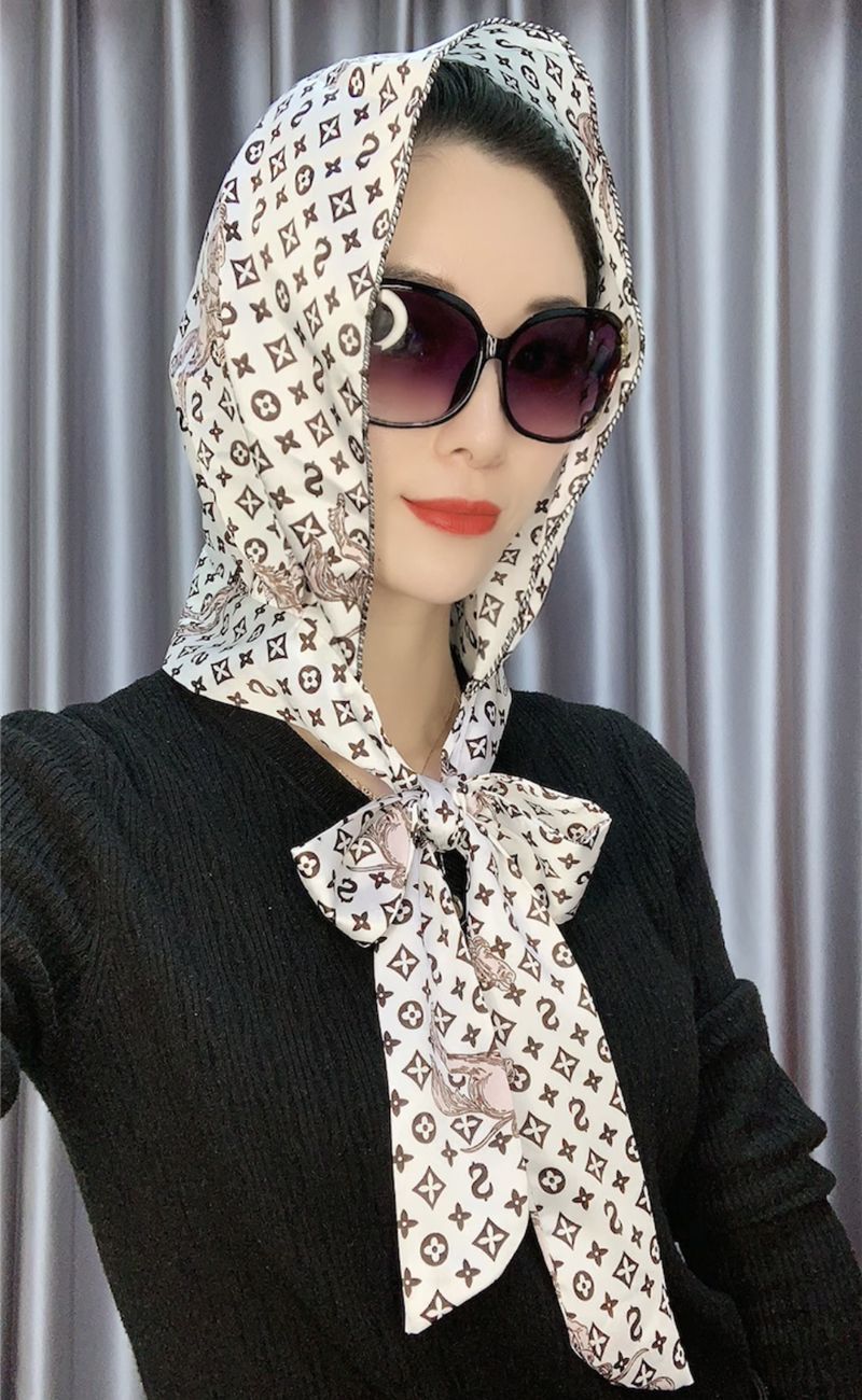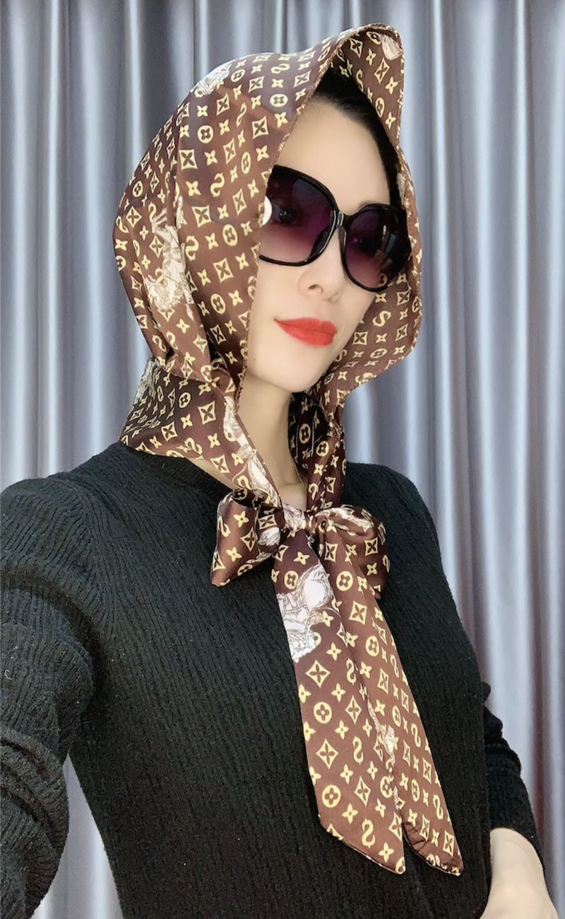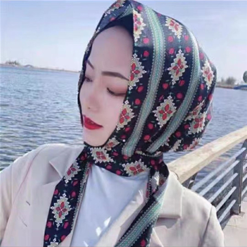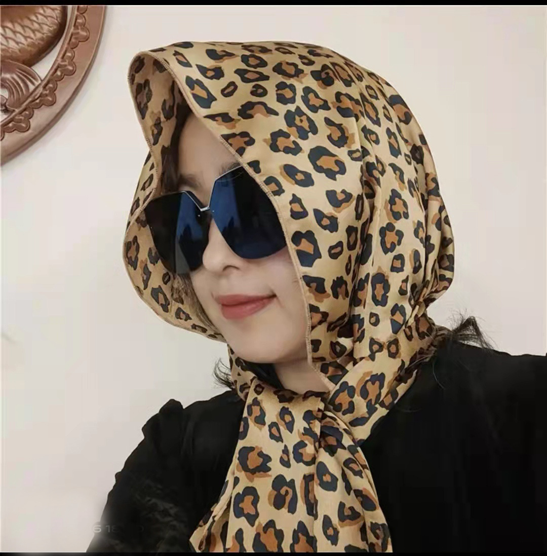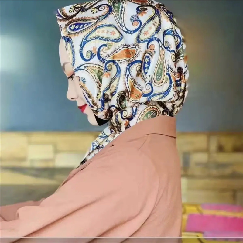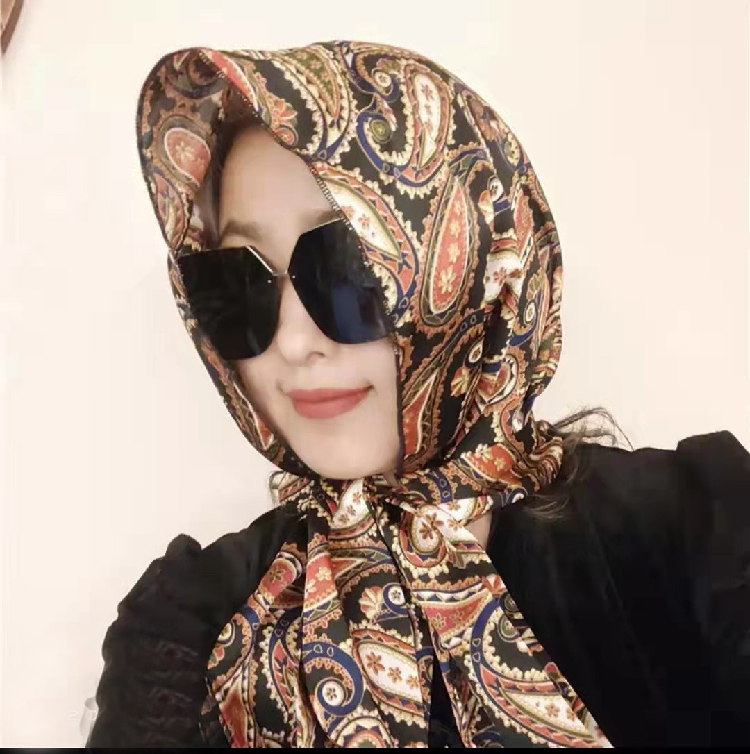防晒丝巾帽女春夏新款多用包头巾防晒连帽时尚印花百搭飘带帽子