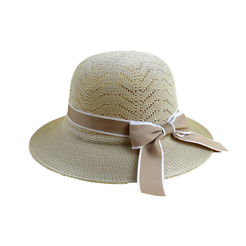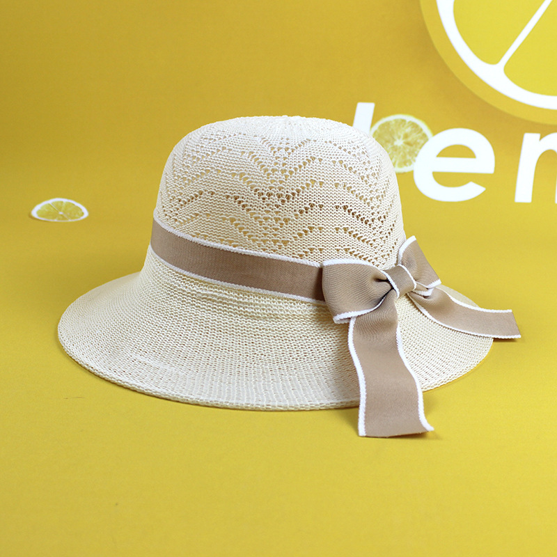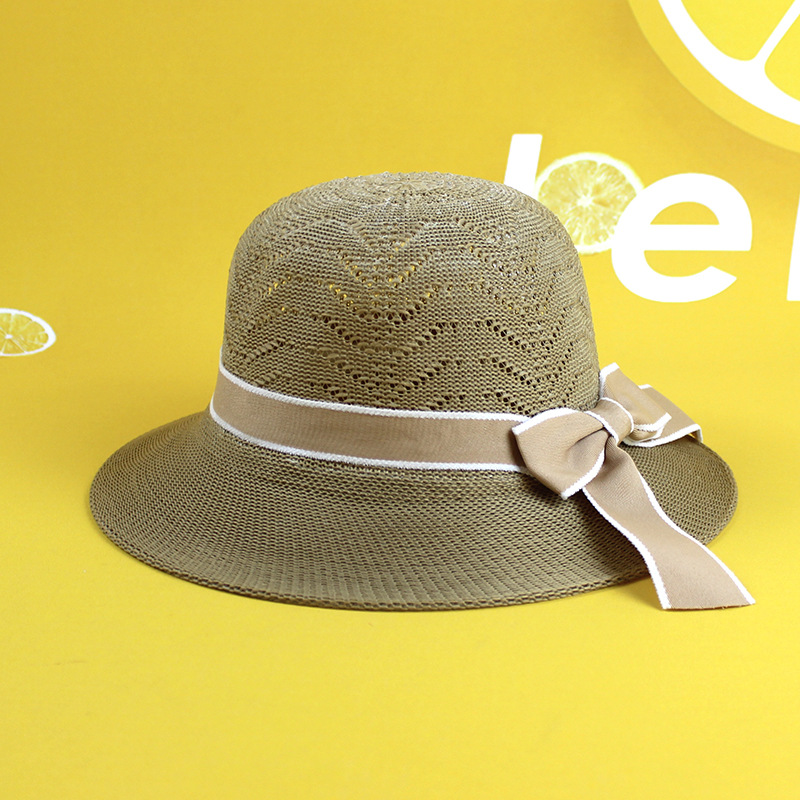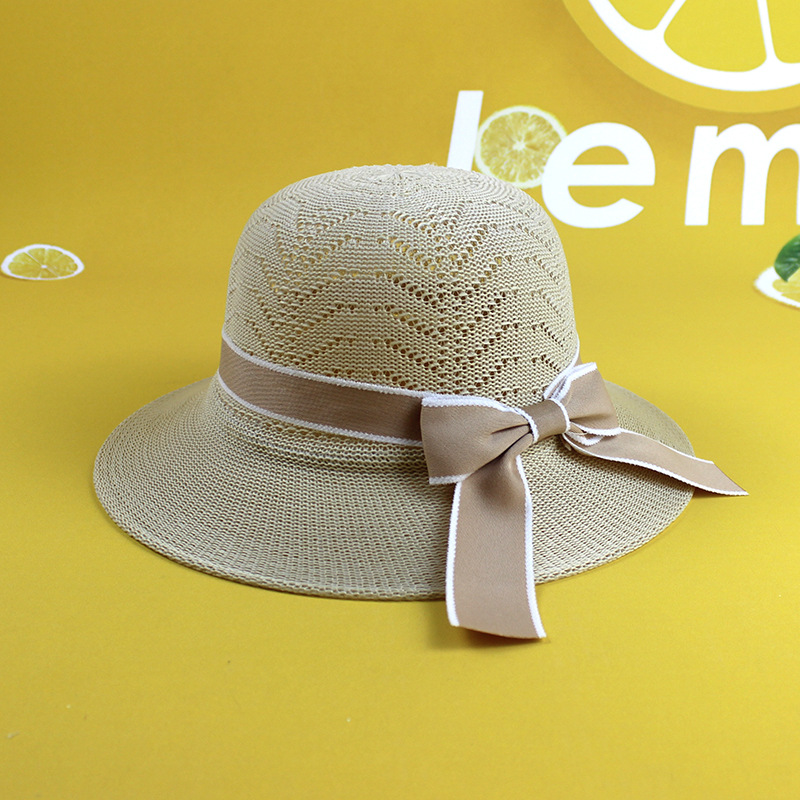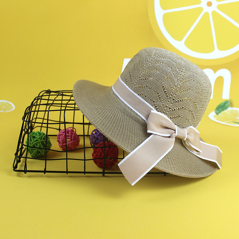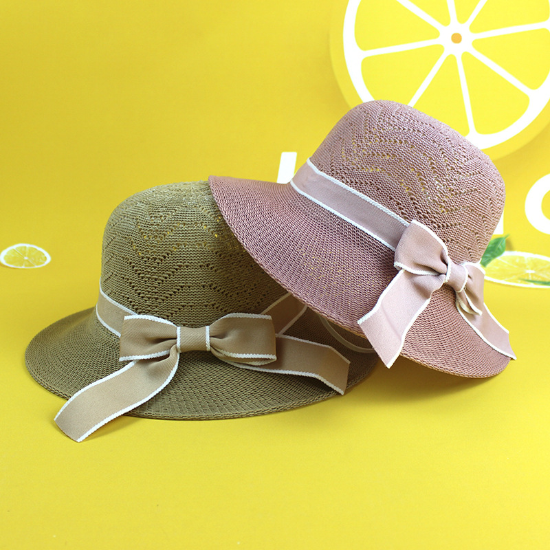 夏季女帽韩版时尚透气遮阳帽 防晒太阳帽沙滩蝴蝶结帽子妈妈凉帽