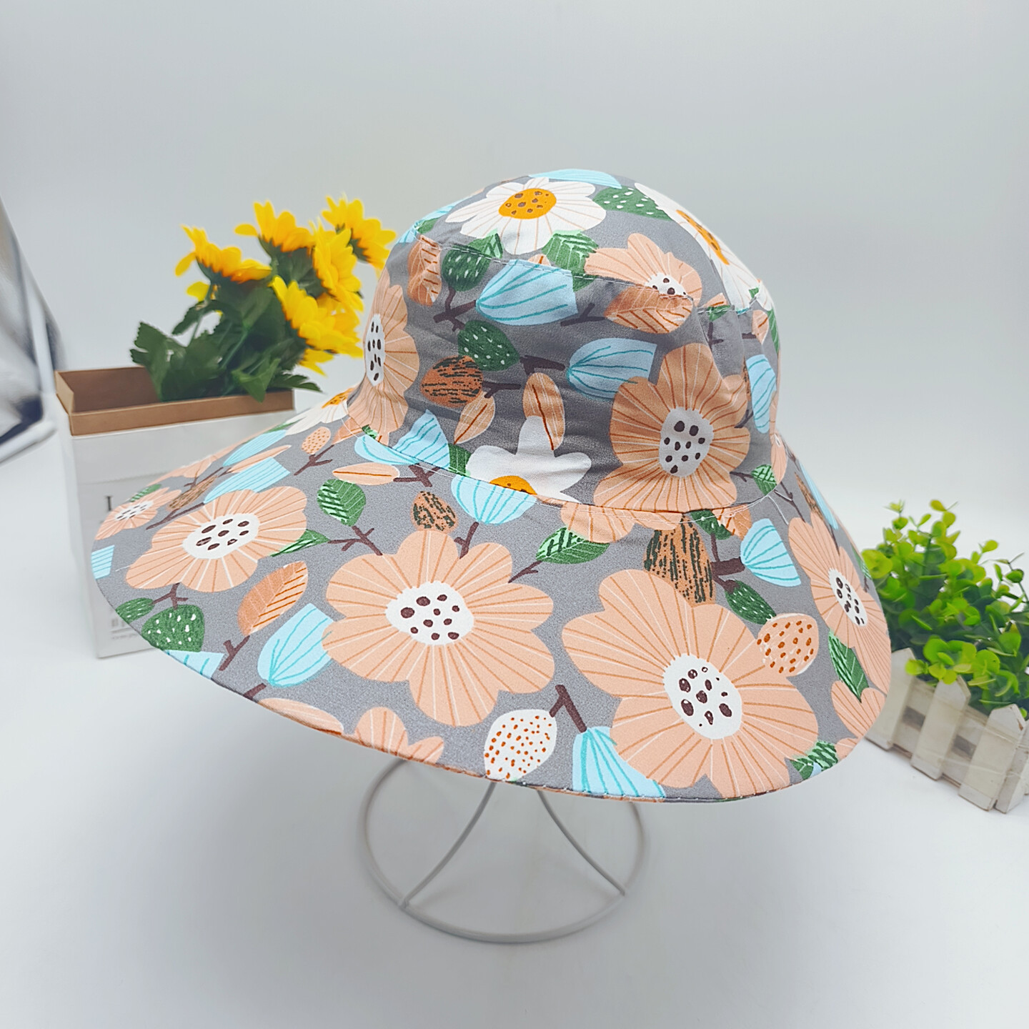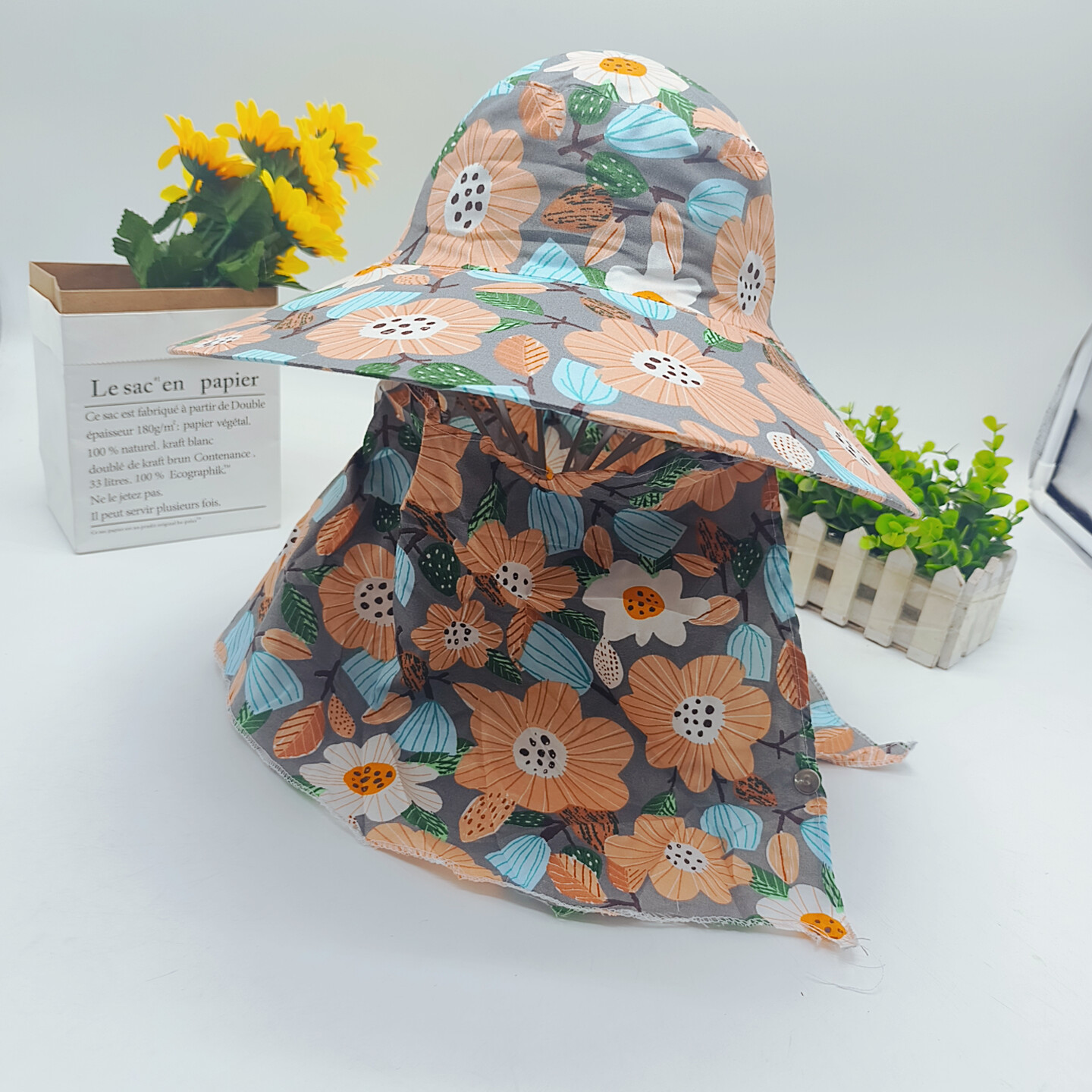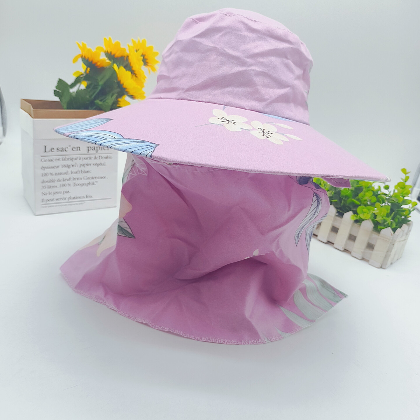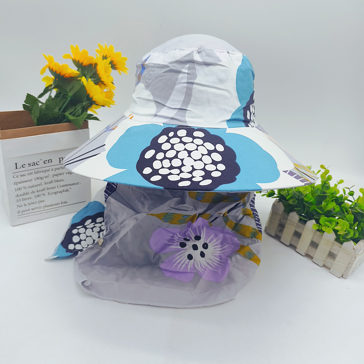 夏季新款女士采茶帽花朵防晒遮阳帽骑车下地务农防紫外线太阳帽子