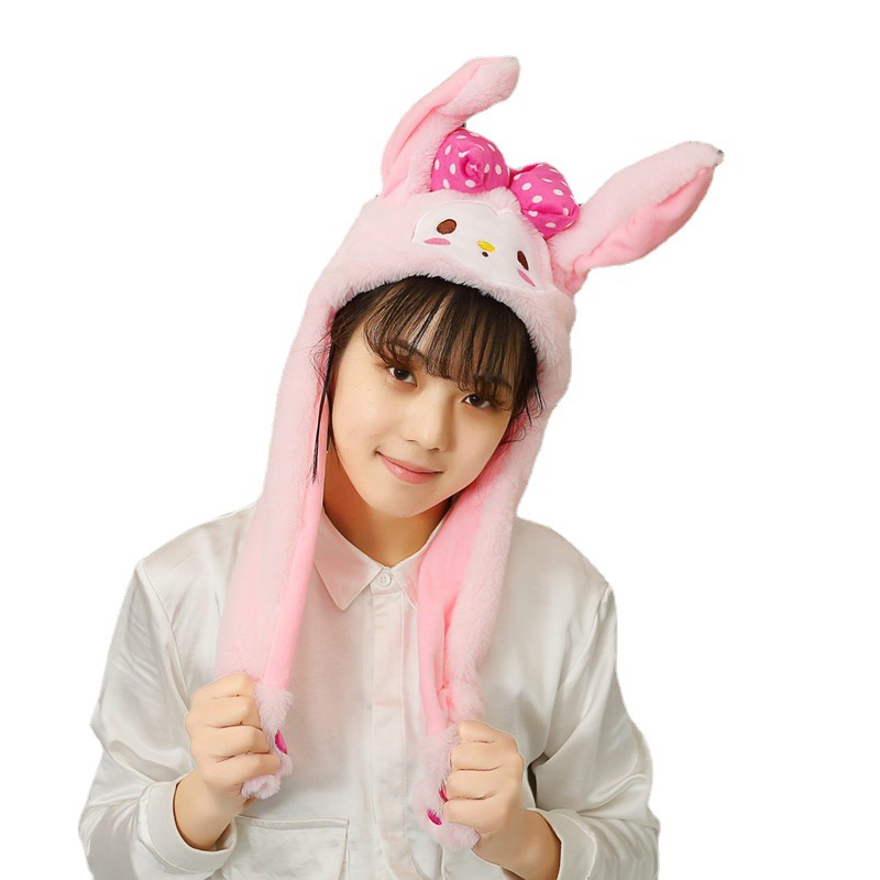 现货抖音同款一捏兔耳朵会动的帽子网红气囊帽多款厂家批发