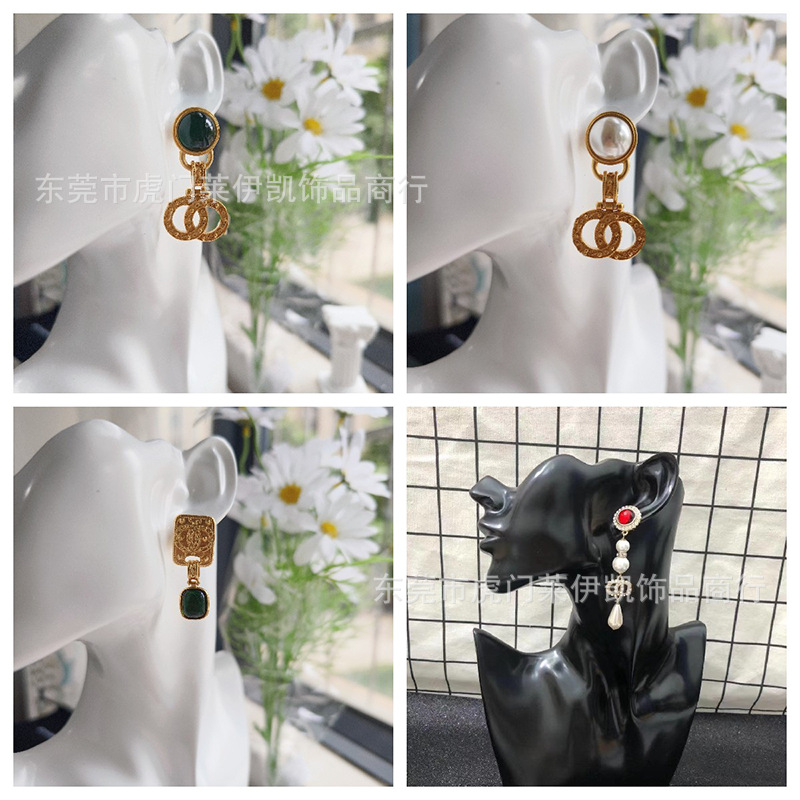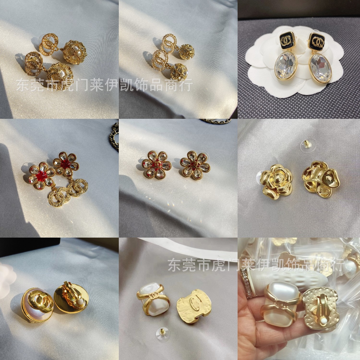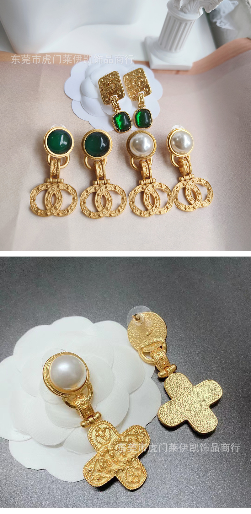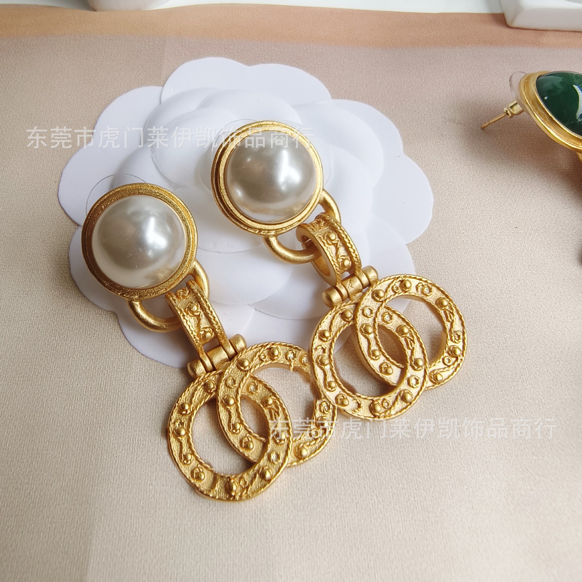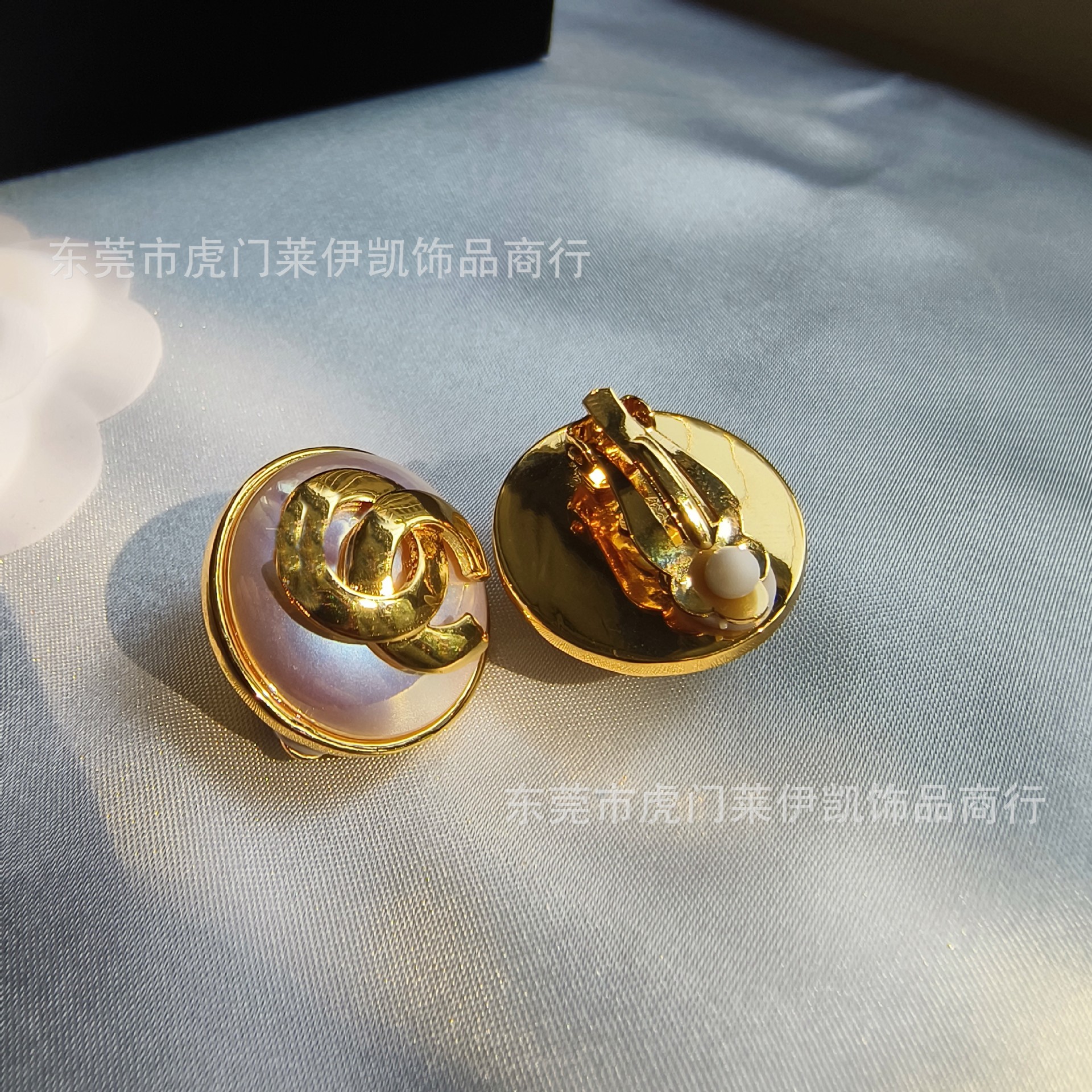中古Vintage耳饰经典复古c家耳环轻奢高级感夸张耳夹珍珠镶钻