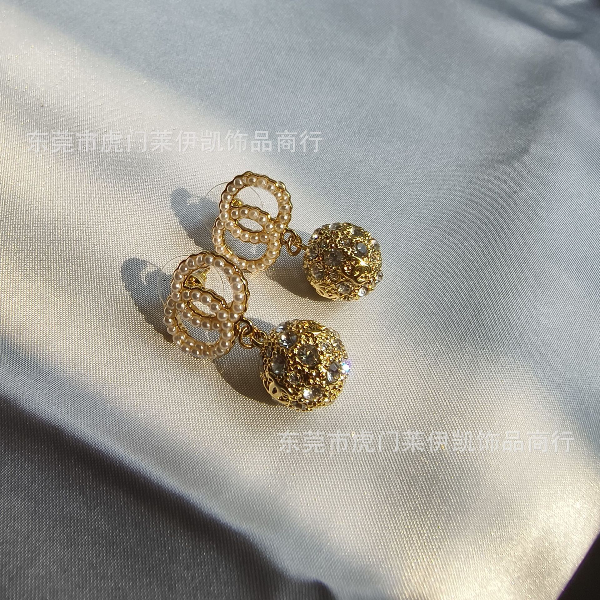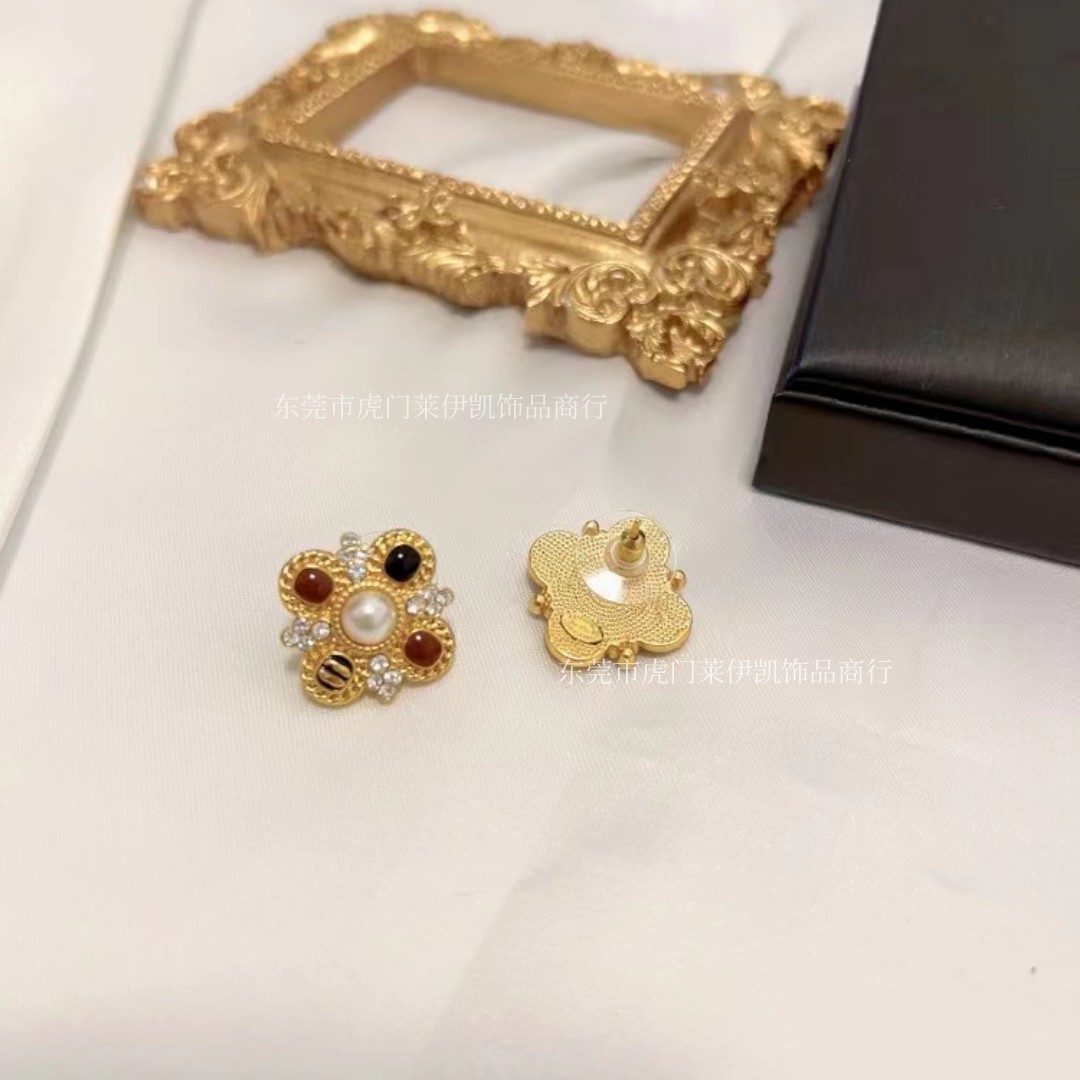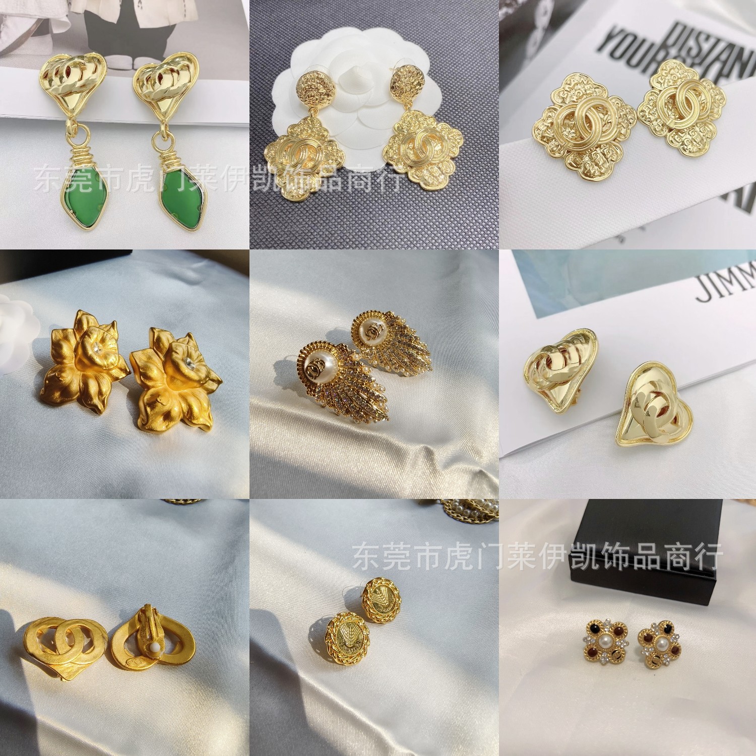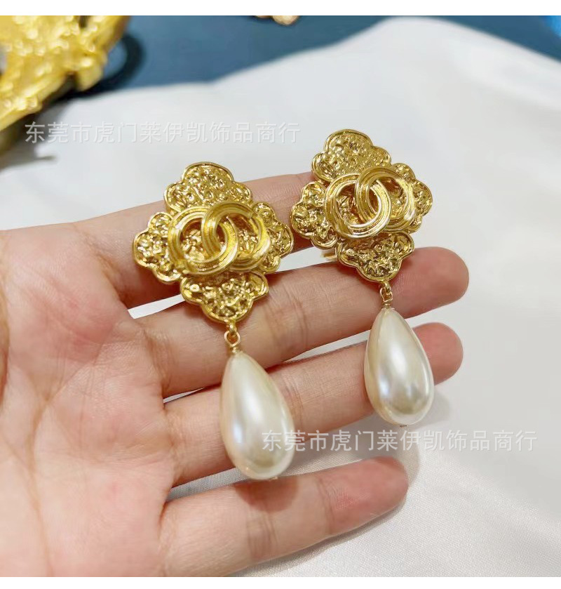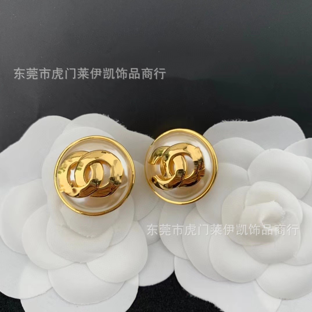 中古Vintage耳饰经典复古c家耳环轻奢高级感夸张耳夹珍珠镶钻
