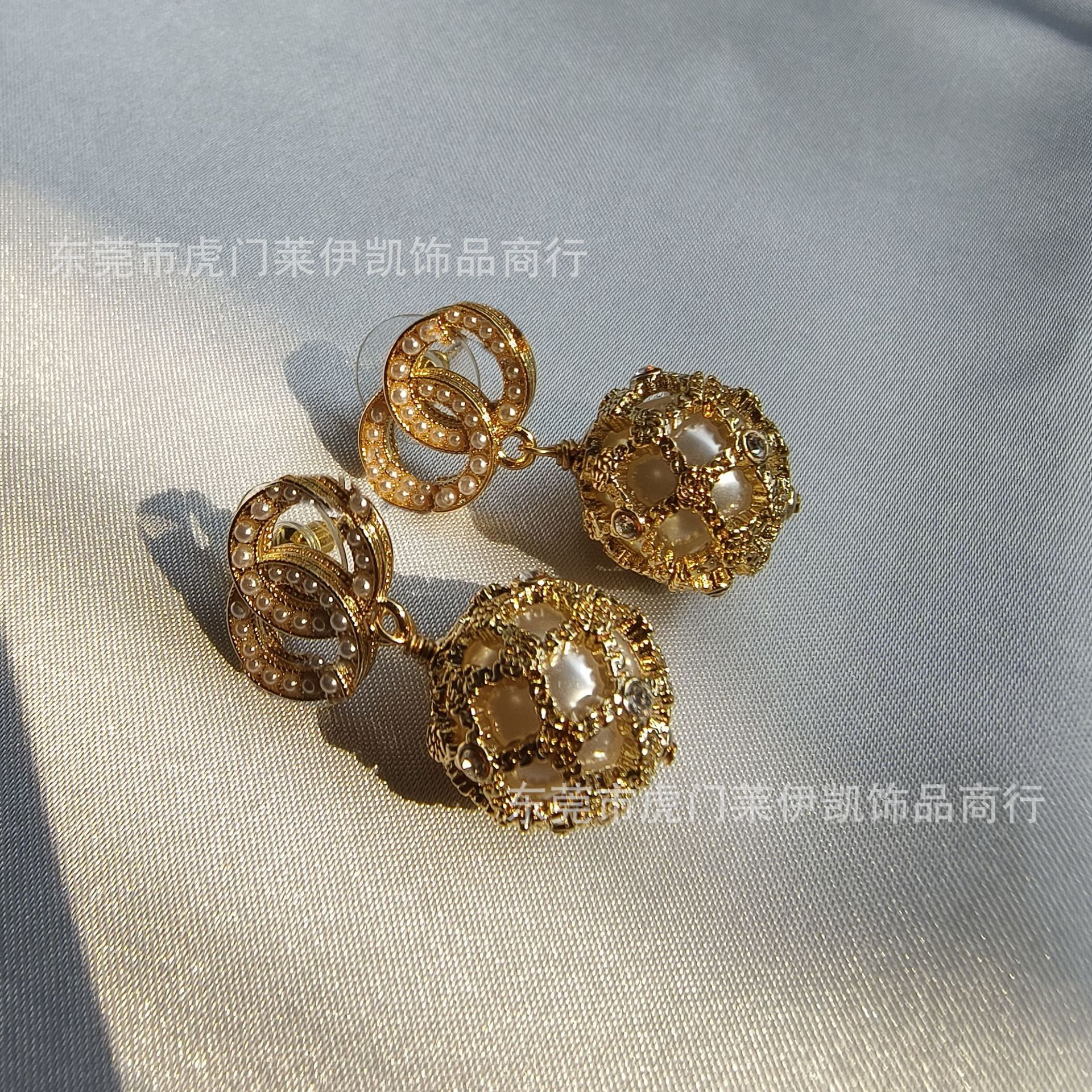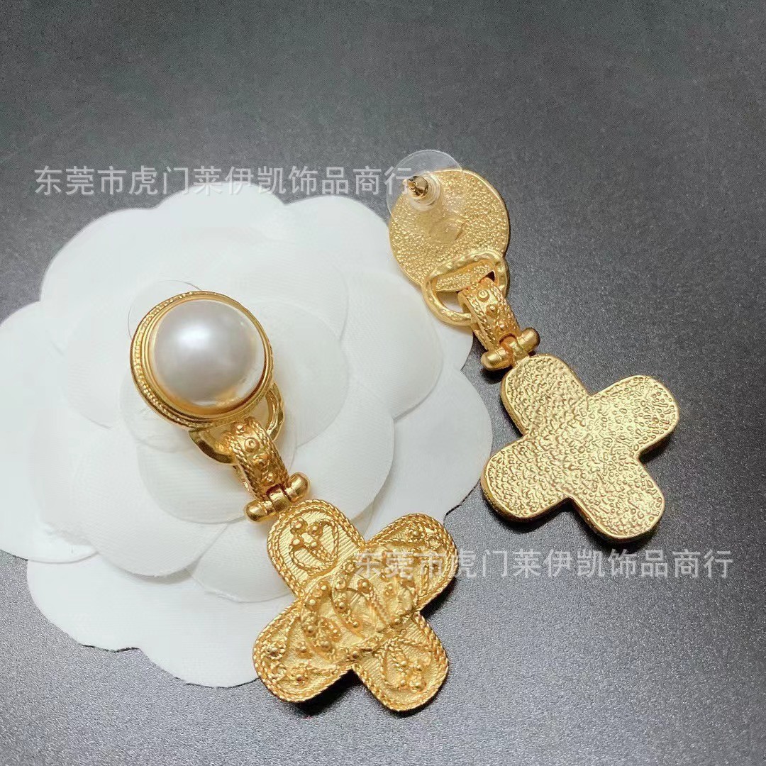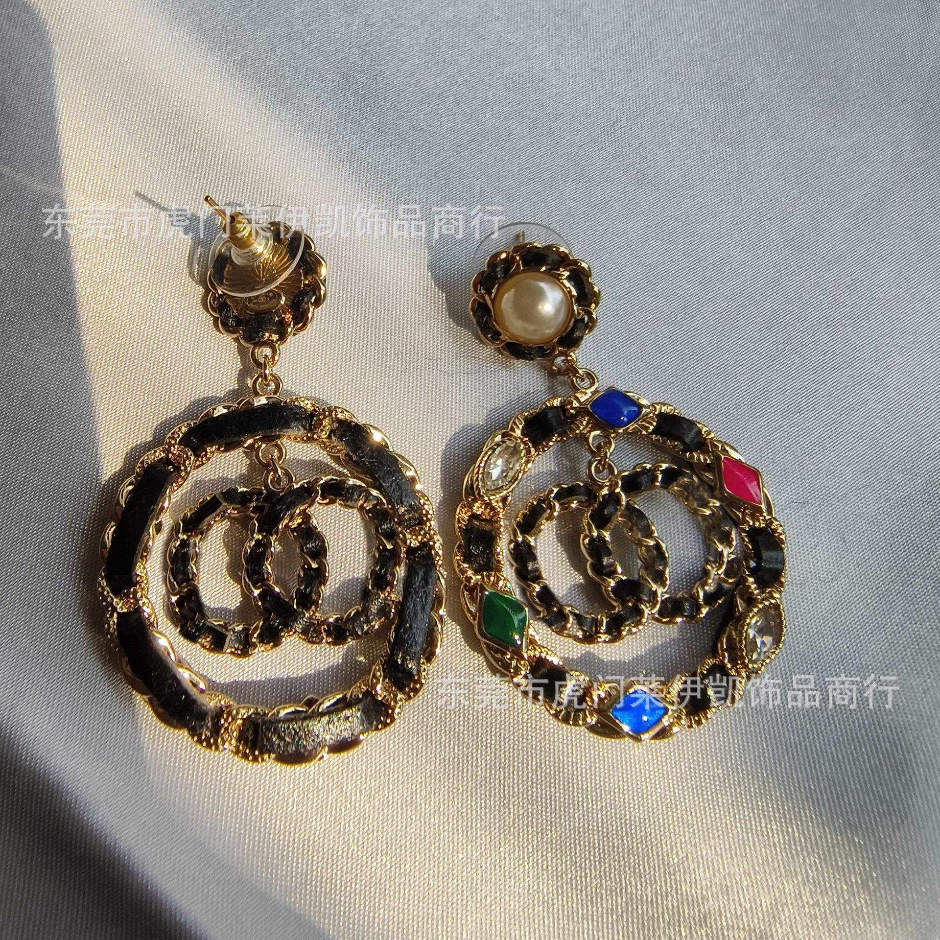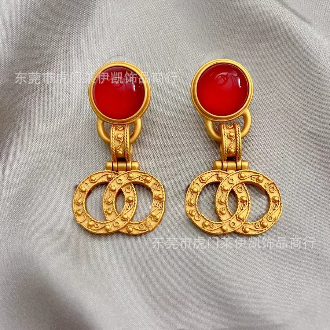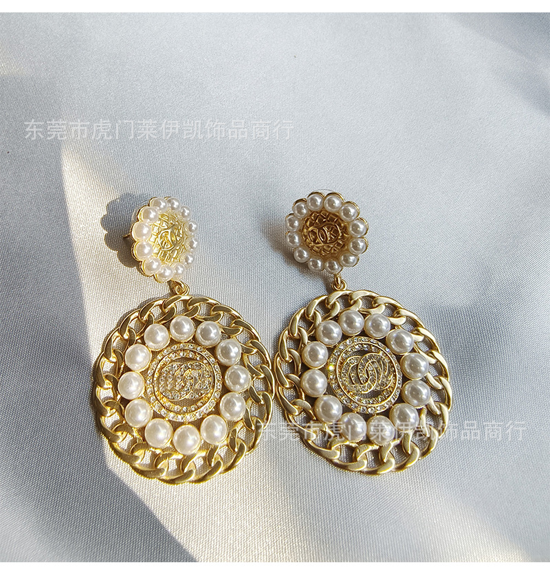 中古Vintage耳饰经典复古c家耳环轻奢高级感夸张耳夹珍珠镶钻