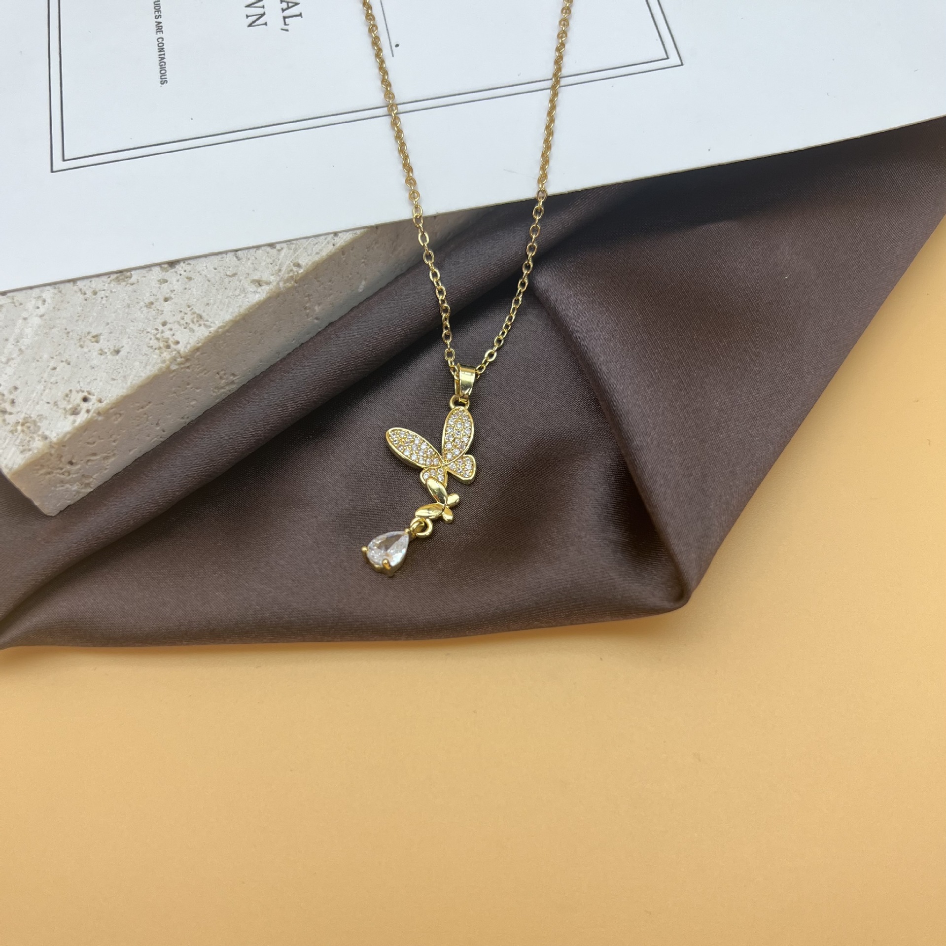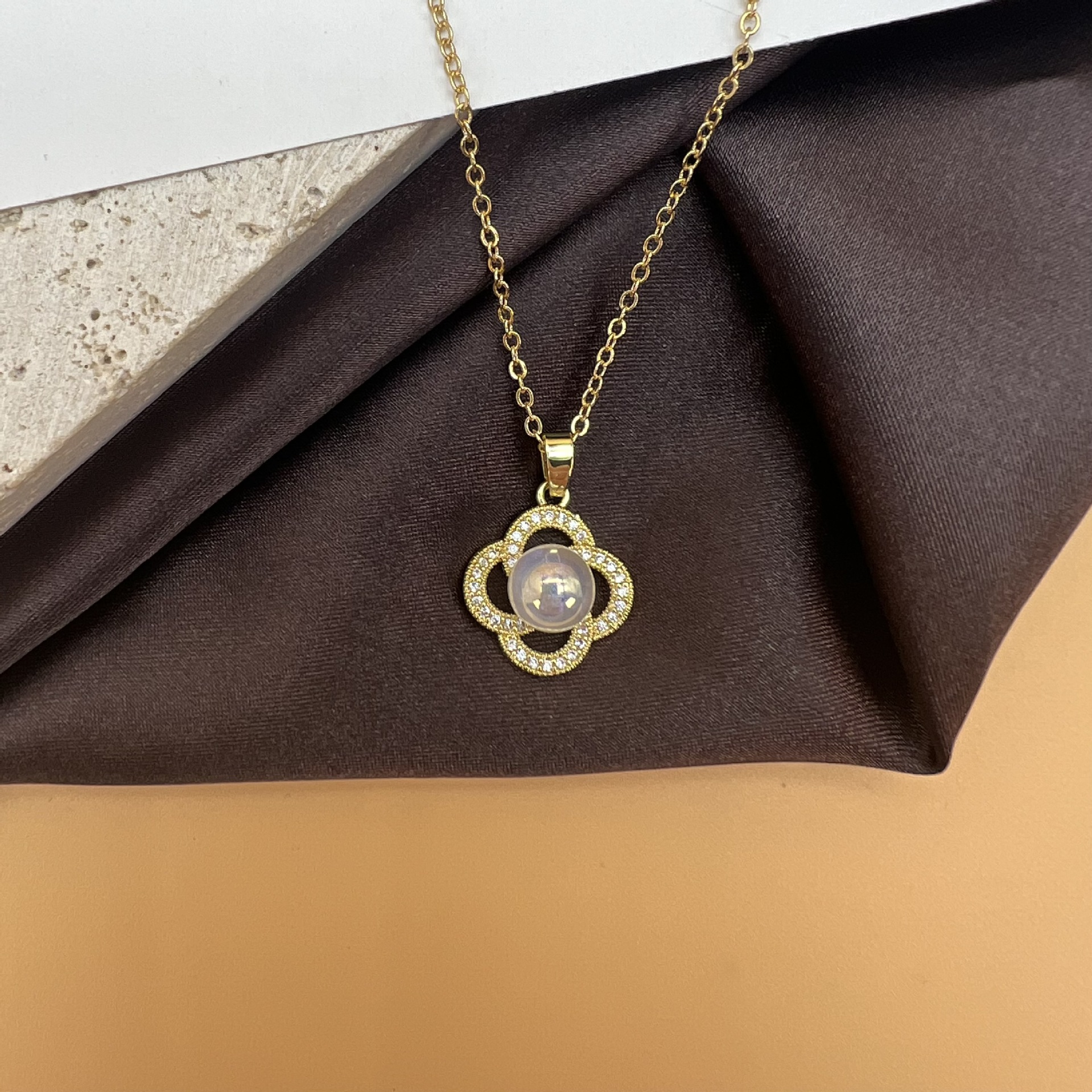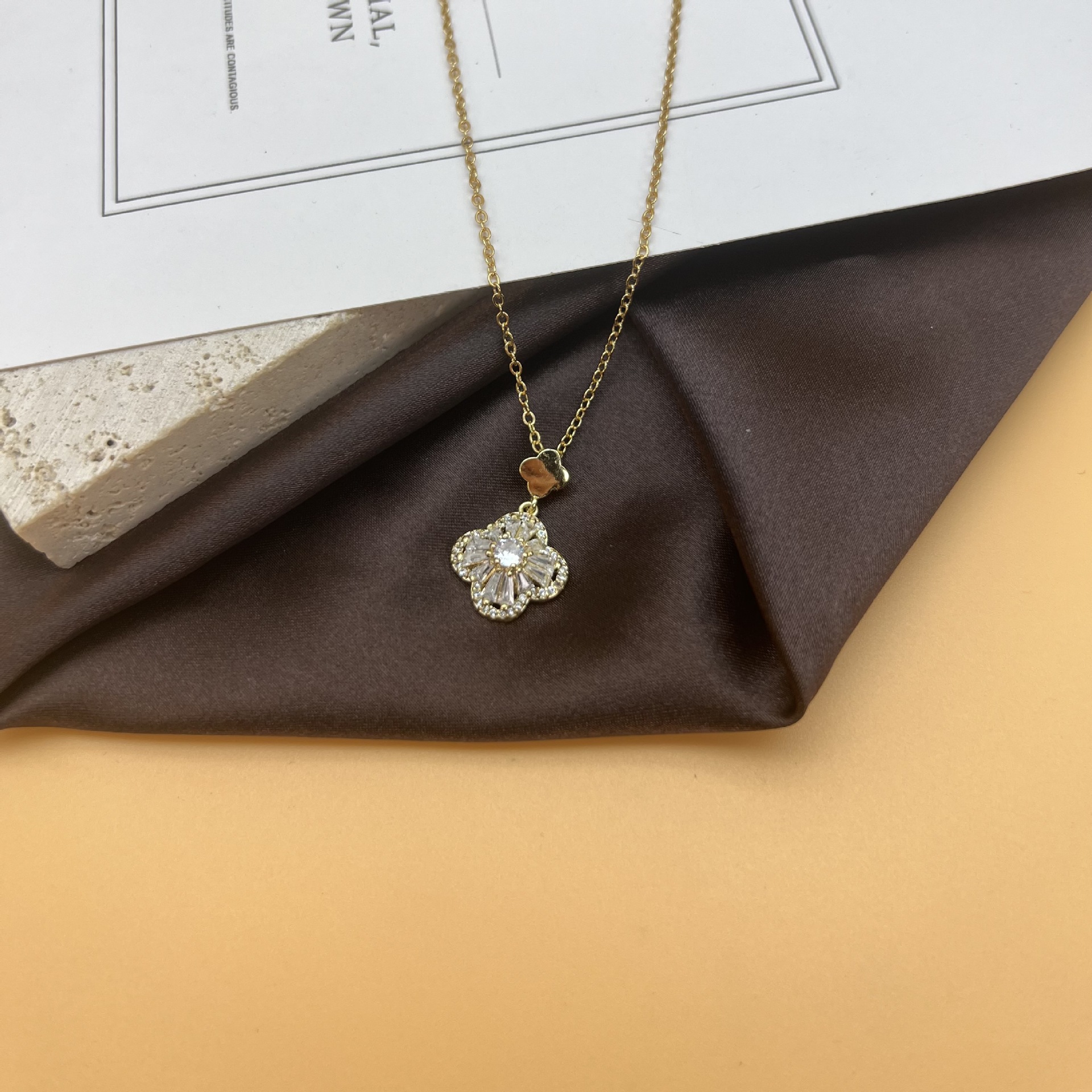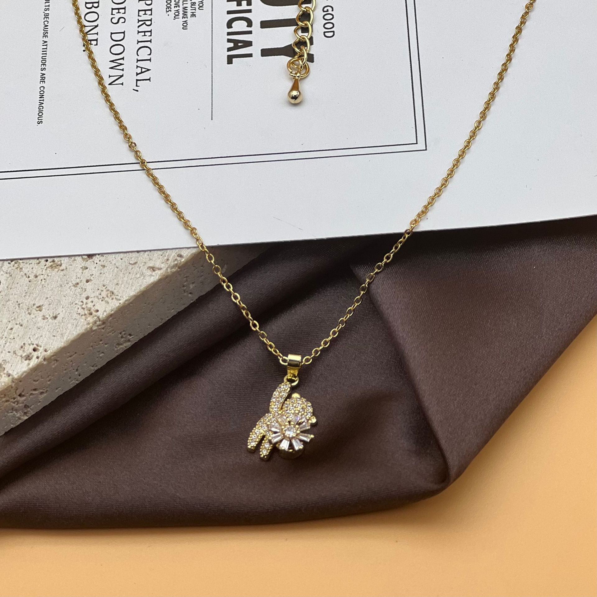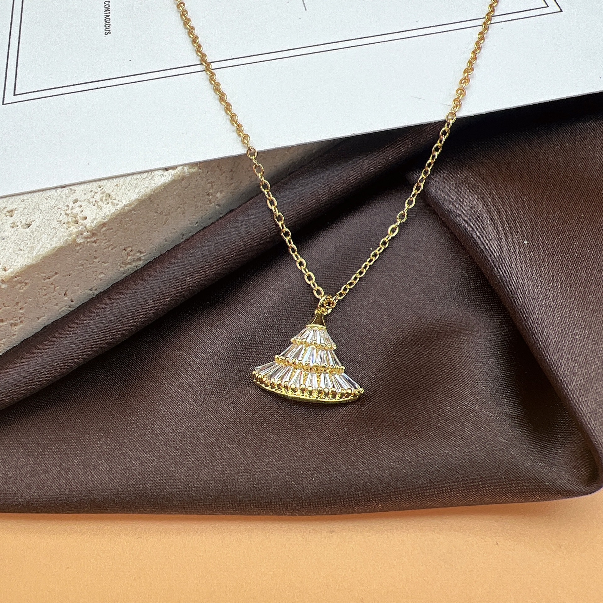 欧美时尚简约不锈钢链条网红气质设计不规则铜吊坠个性项链项饰女
