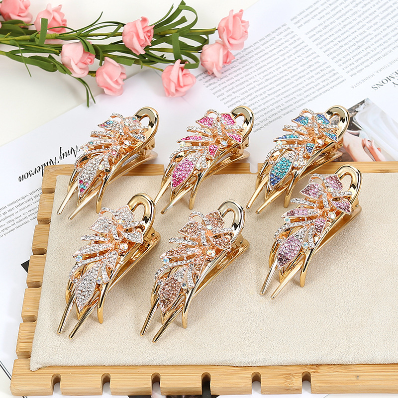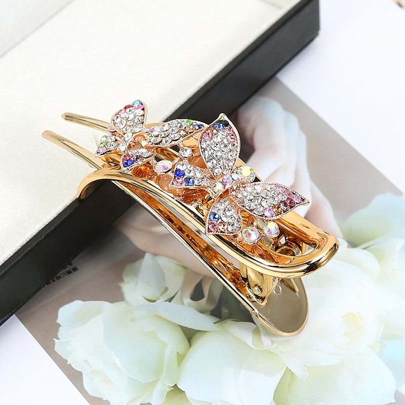 韩国发饰蝴蝶水钻发卡三齿夹盘发抓夹头饰一字鸭嘴成人发夹批发