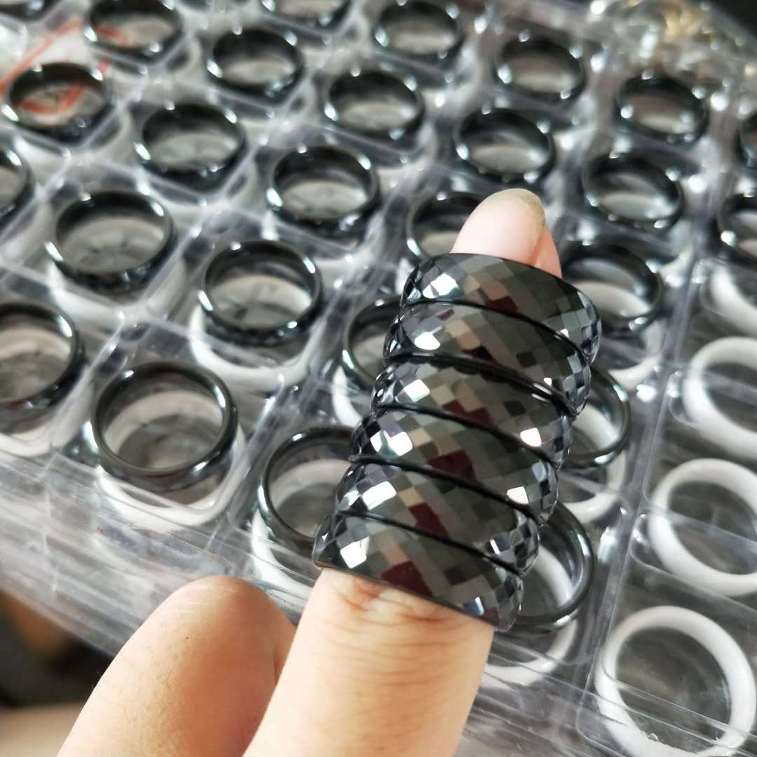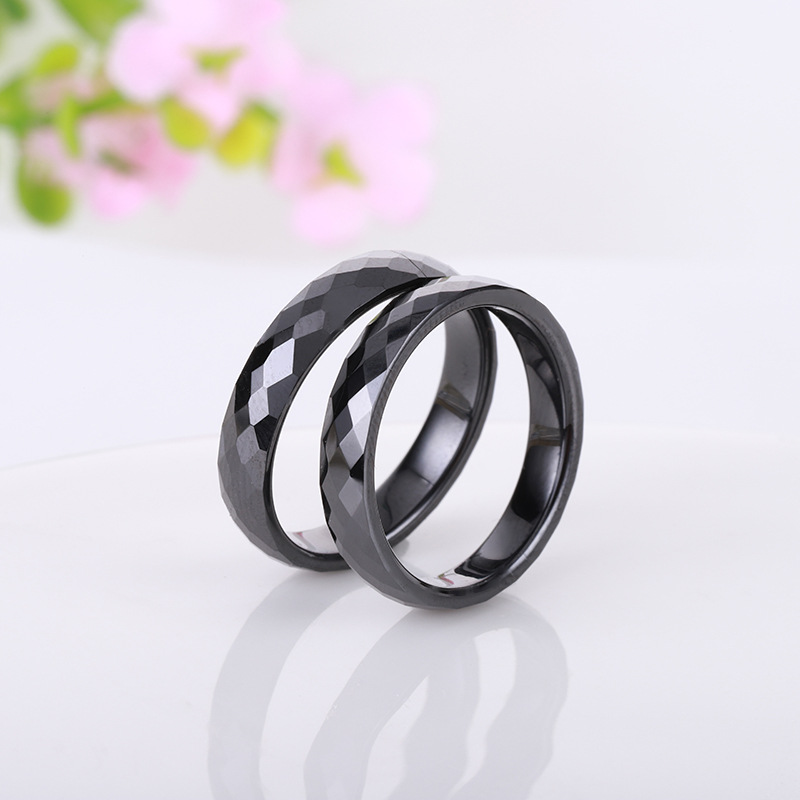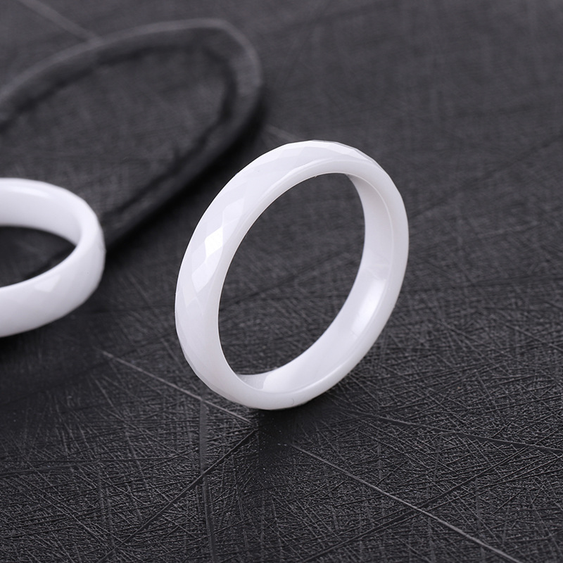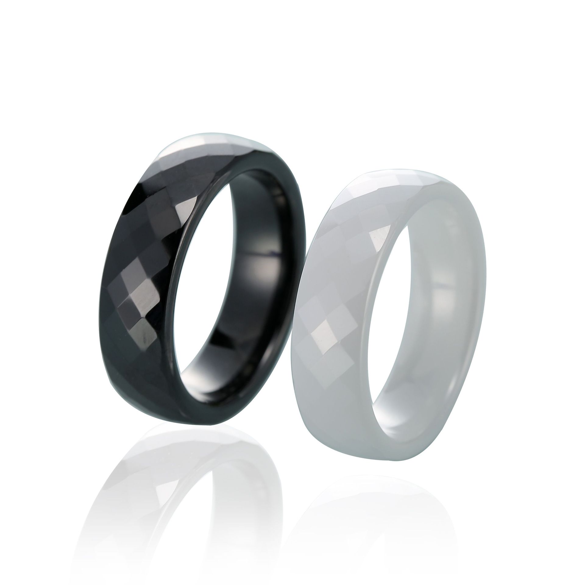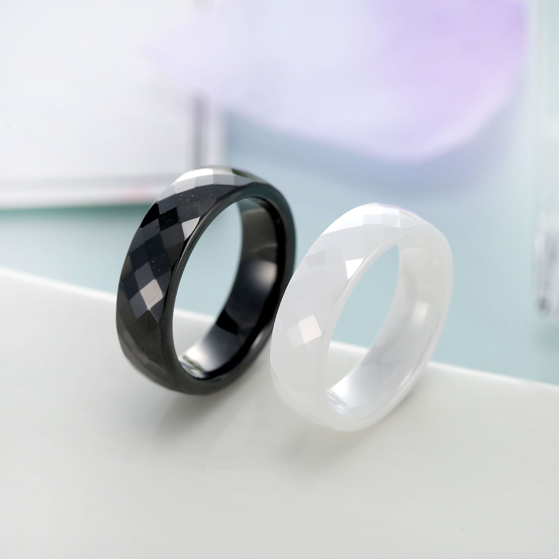 陶瓷戒指6mm4mm切面菱形陶瓷戒指黑白二氧化锆指环现货批发