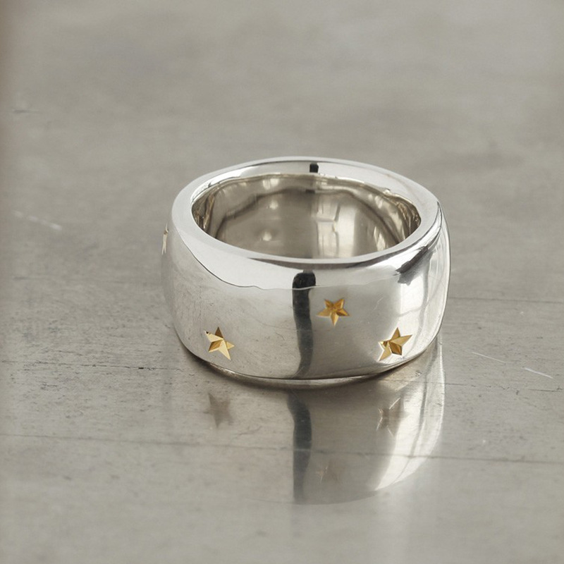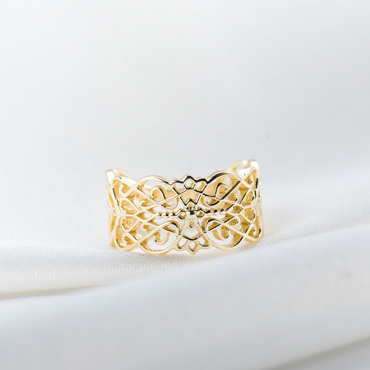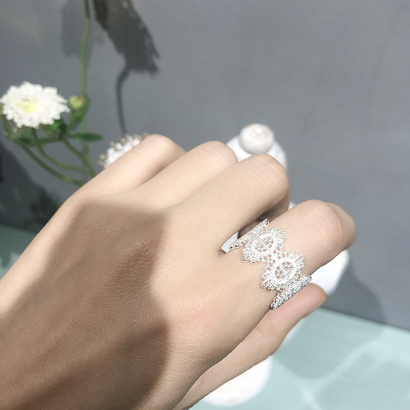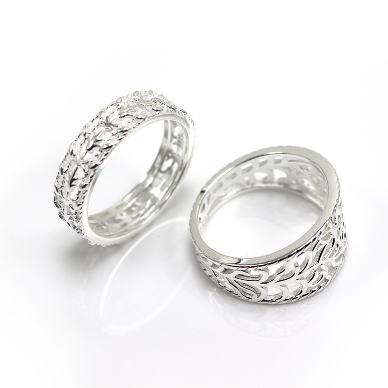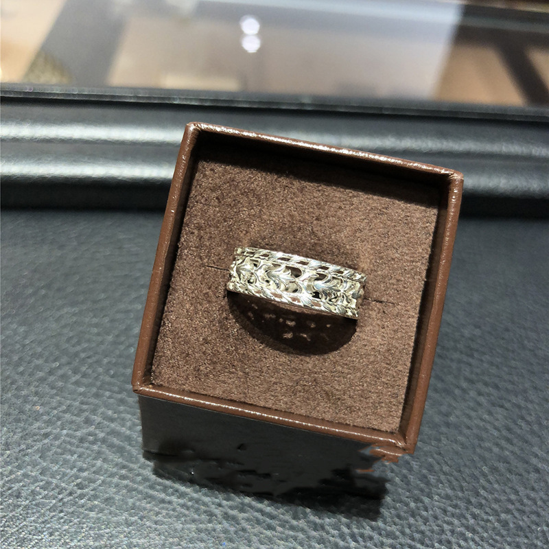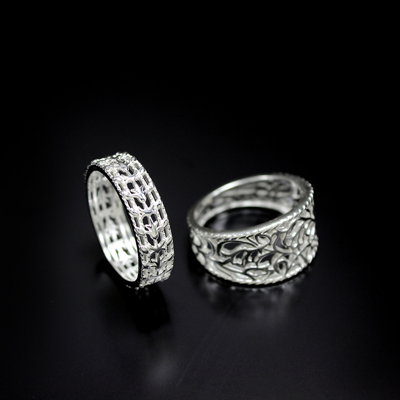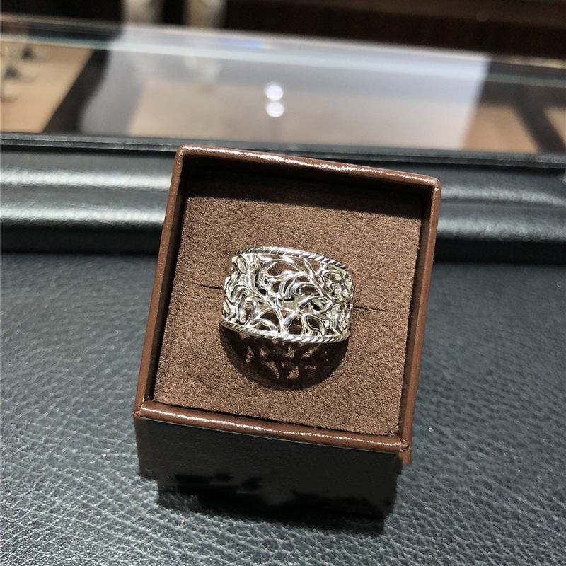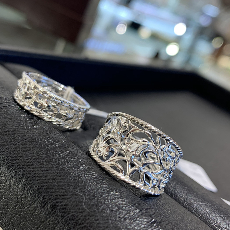日式 宽面 镂空 复古 戒指s925银素银 郁金香花纹 镂空雕花银戒指