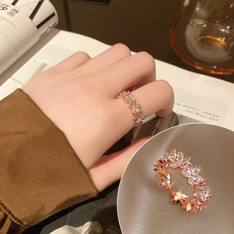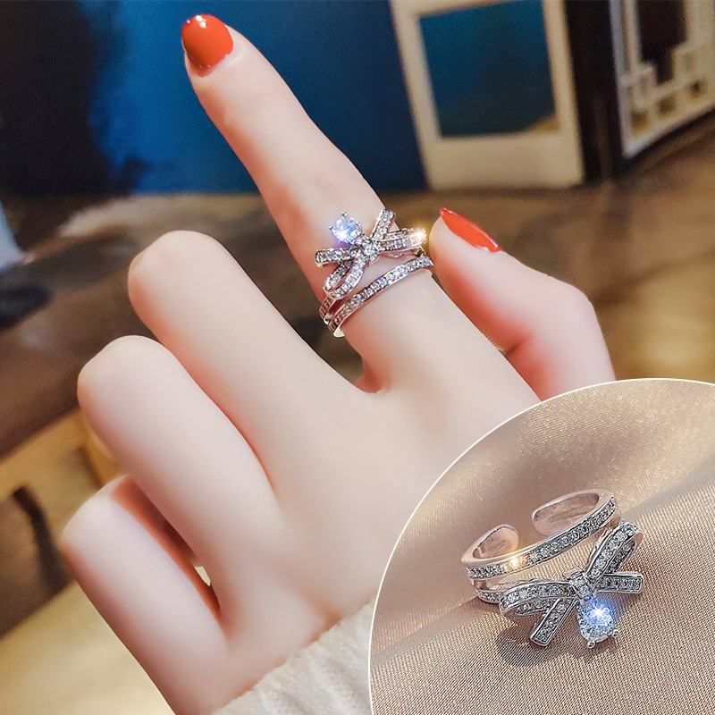 网红时尚戒指女麻花蝴蝶珍珠指环ins冷淡风小众设计夸张个性素圈