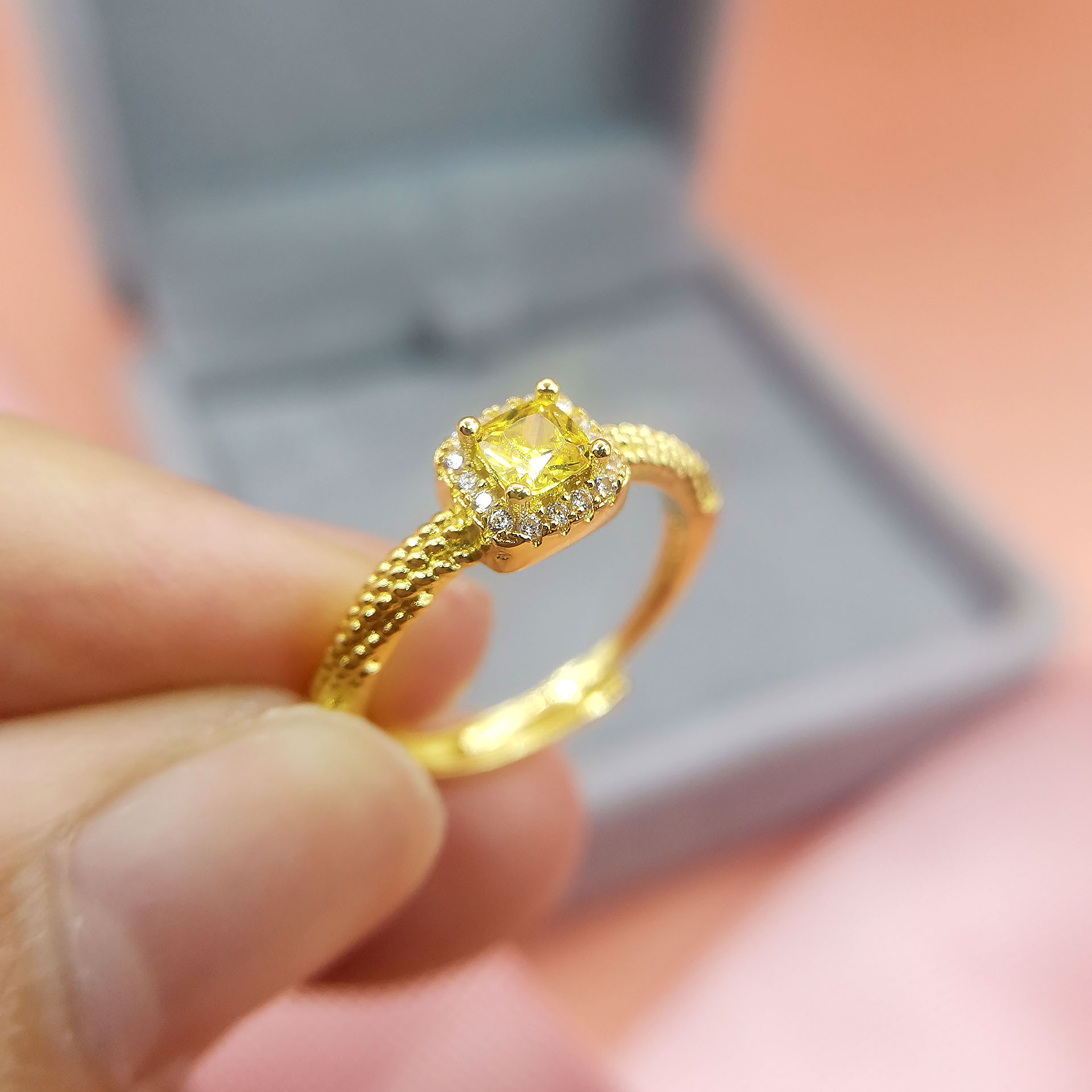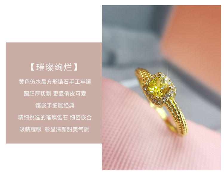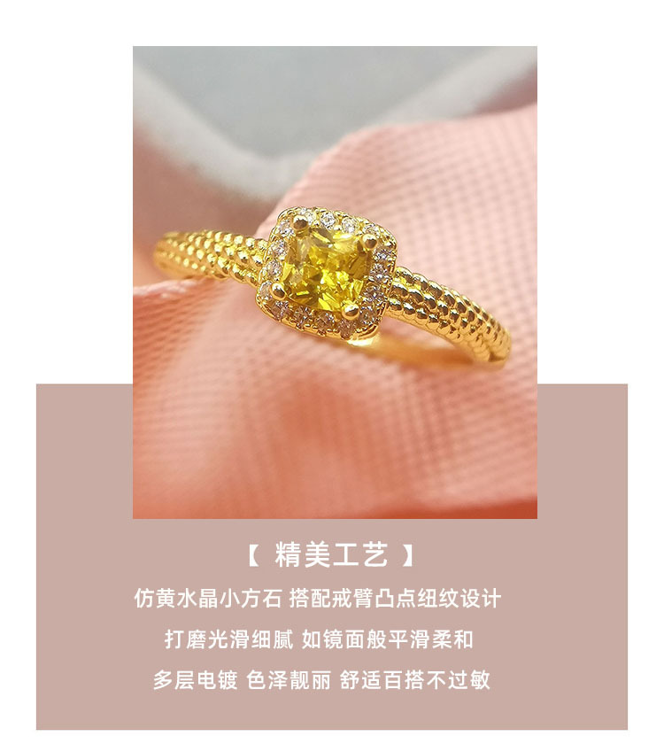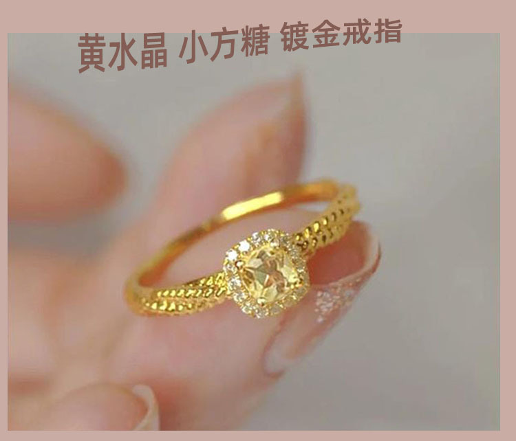 小红书爆款小方糖黄水晶钻戒指女小众设计感ins风指环18k饰品批发
