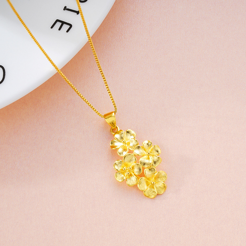 越南沙金女士花朵戒指 黄铜镀金花朵项链手链三件套装 结婚饰品