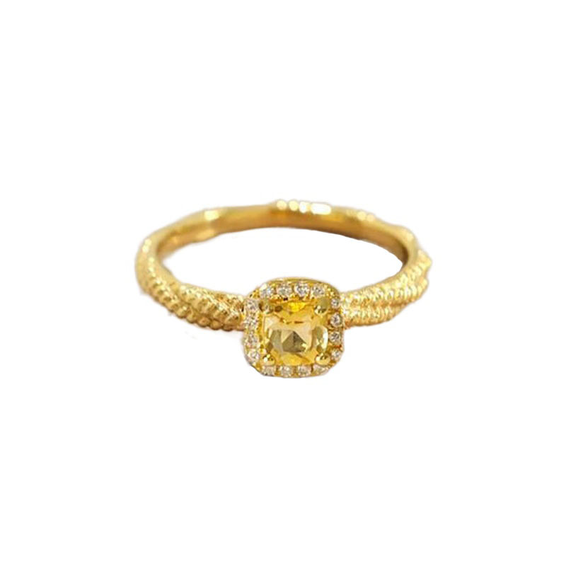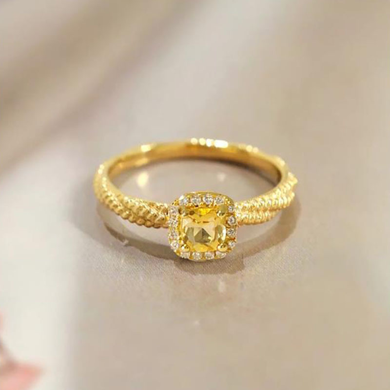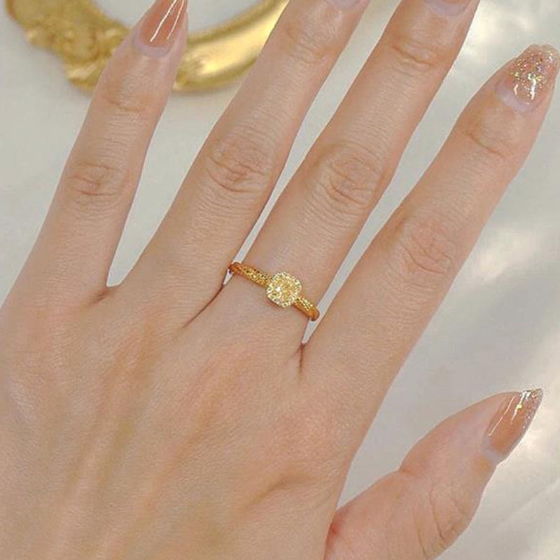 小众气质方糖黄水晶钻戒指女2022新款ins设计高级感轻奢