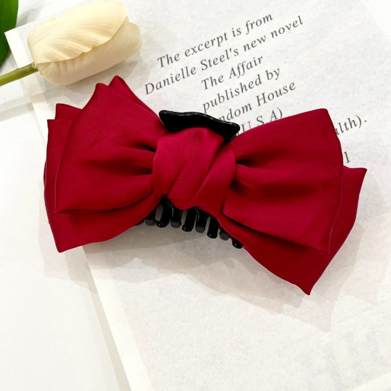 法式温柔头饰缎面蝴蝶结发夹弹簧夹盘发抓夹后脑勺大号马尾发饰