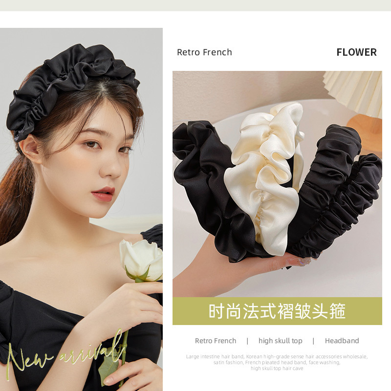 大肠发箍韩国高级感发饰批发缎面时尚法式褶皱头箍洗脸高颅顶发窟