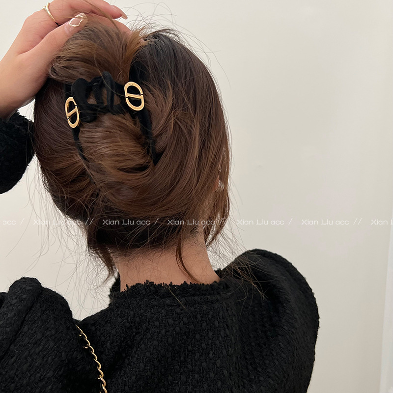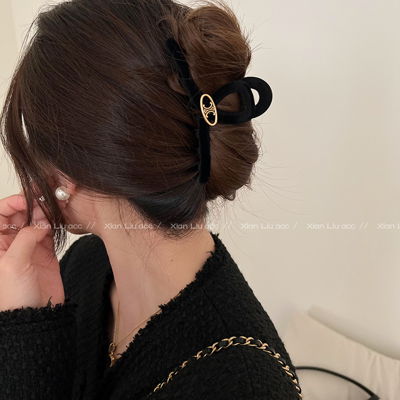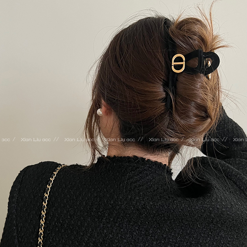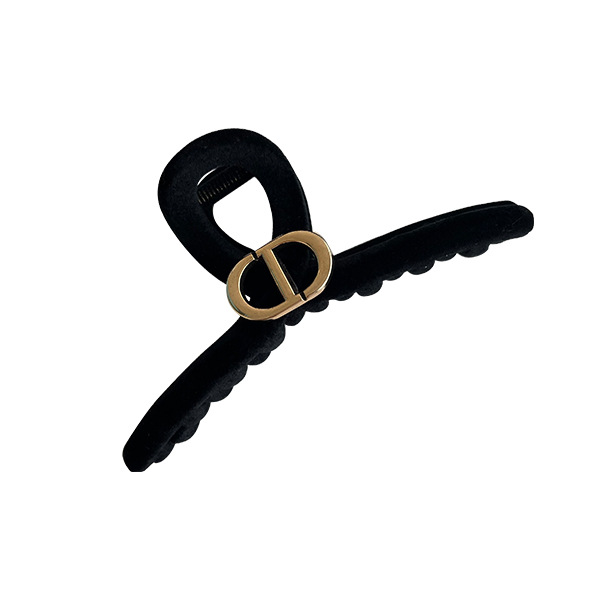 黑色丝绒大号字母夹子头饰发夹女后脑勺鲨鱼夹马尾高抓夹2023新款