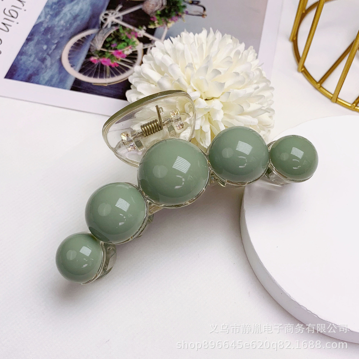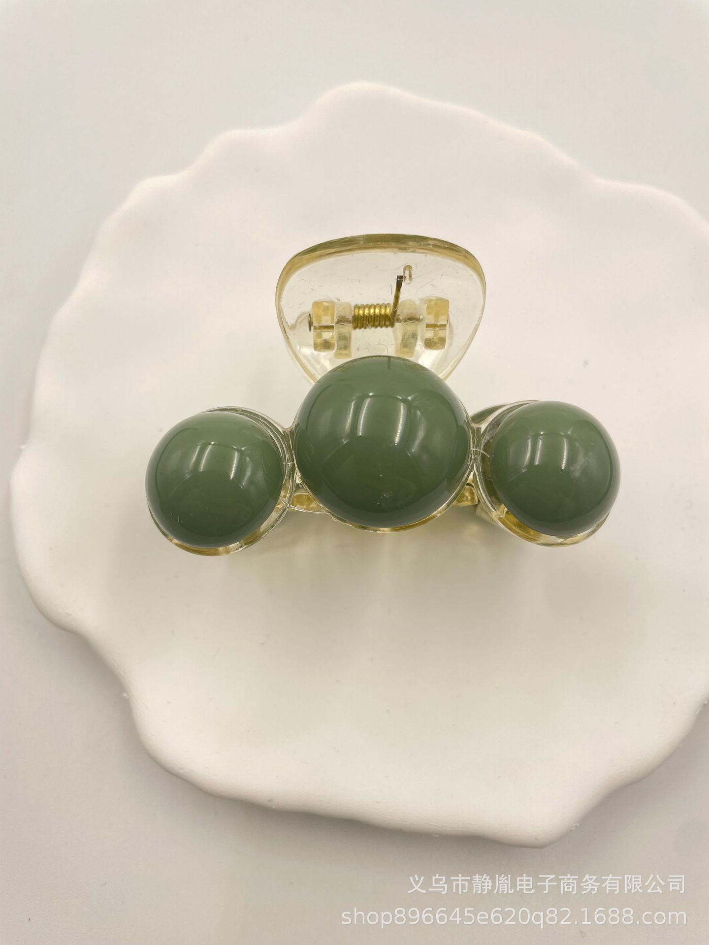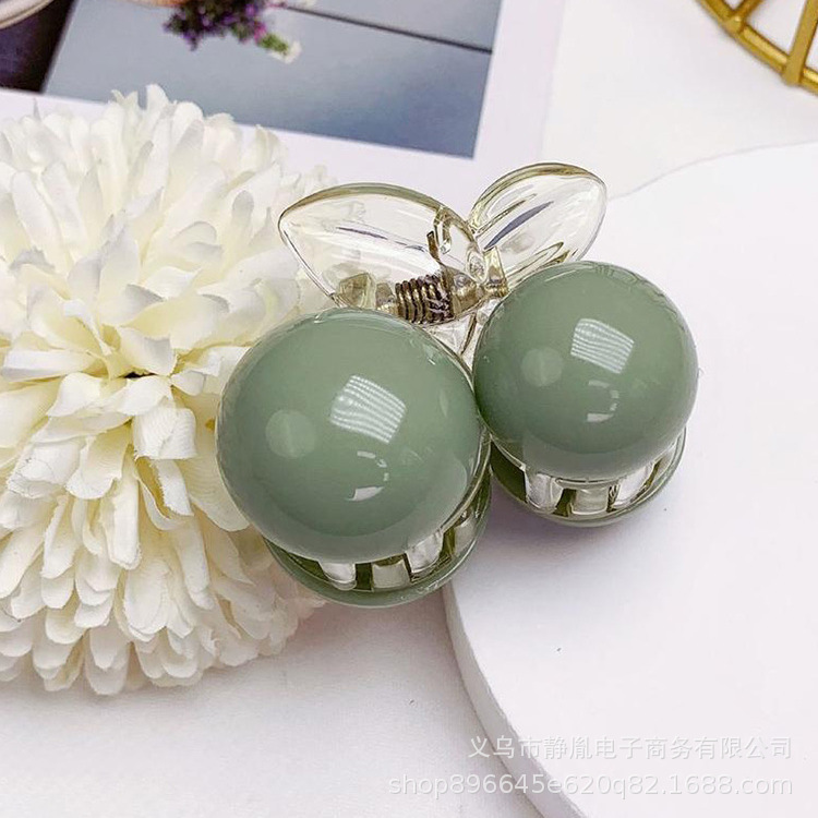 雾霾绿气质抓夹亚克力珍珠抓夹大号中号小号低丸子后脑勺发饰